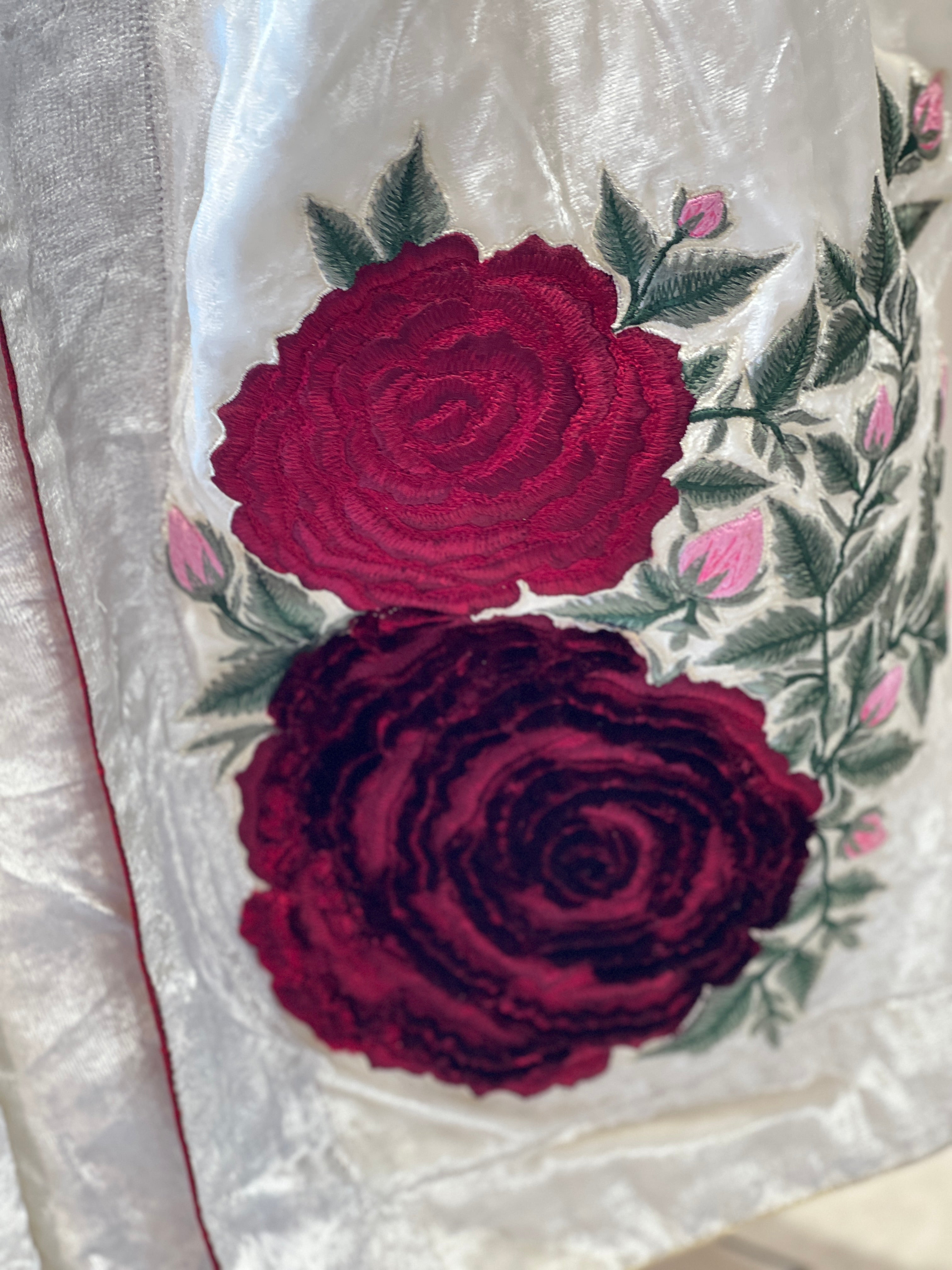 - Style: Floral Applique Detailing, Hand And Machine Embroidery, Flat Facing Edges