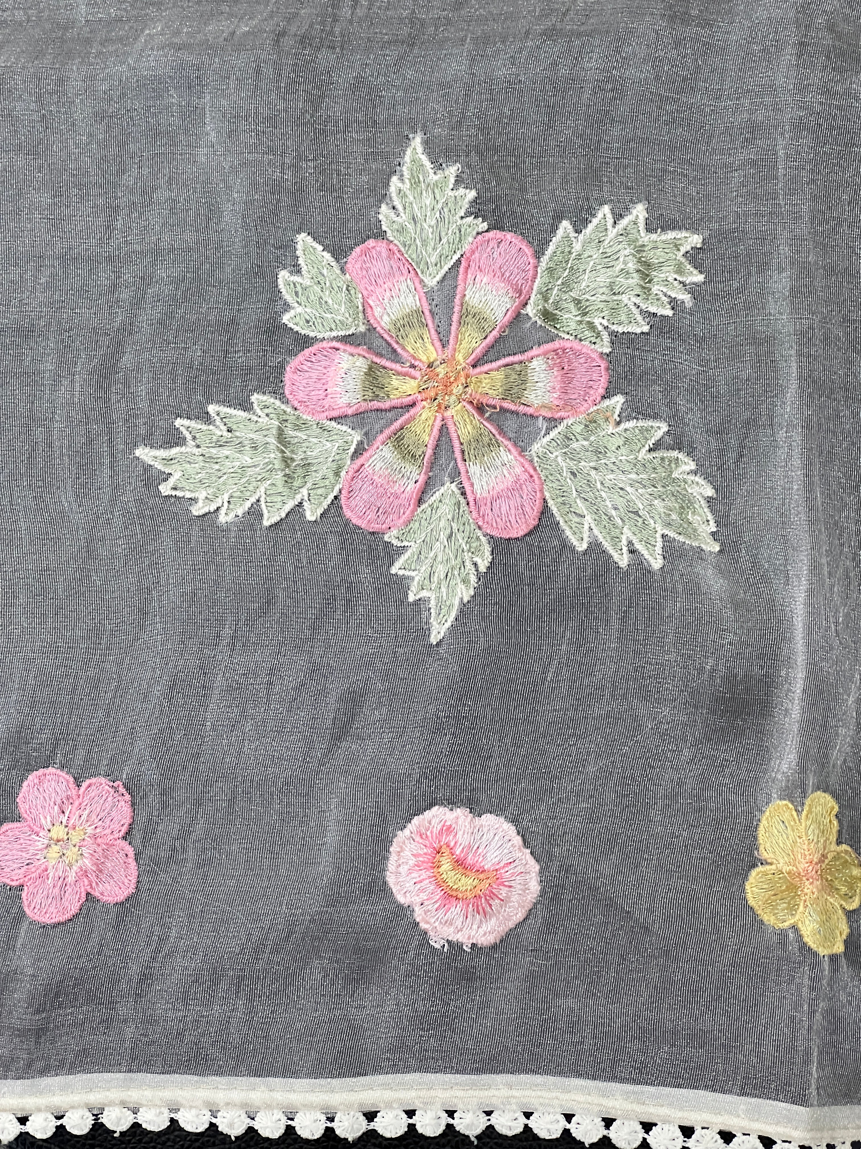 • Floral Applique & Embroidery Detailed Shimmer Organza Saree | BLD1698
