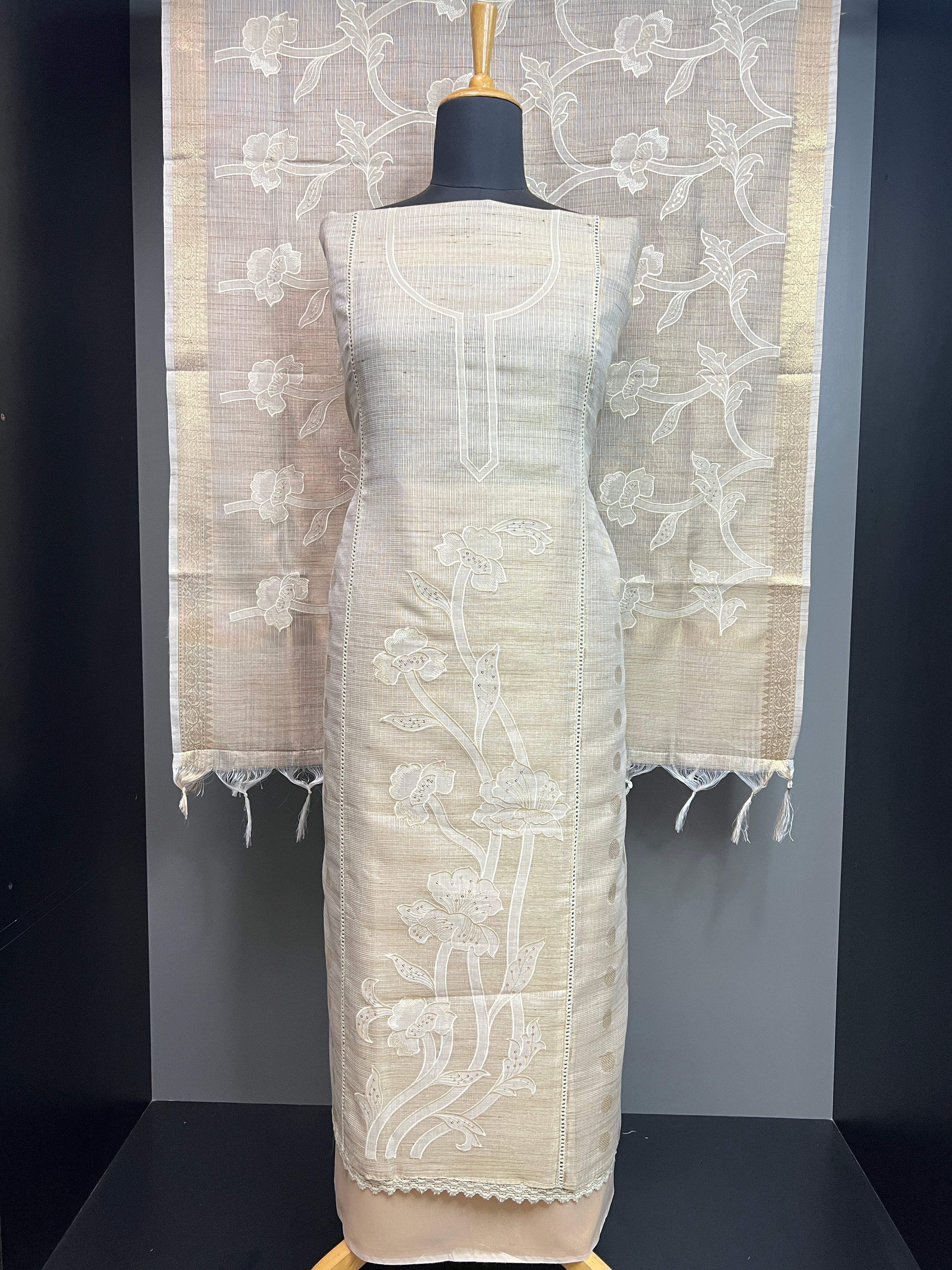 - Style: Floral Applique Pattern, Zari Border Detailing, Tassels Attached
