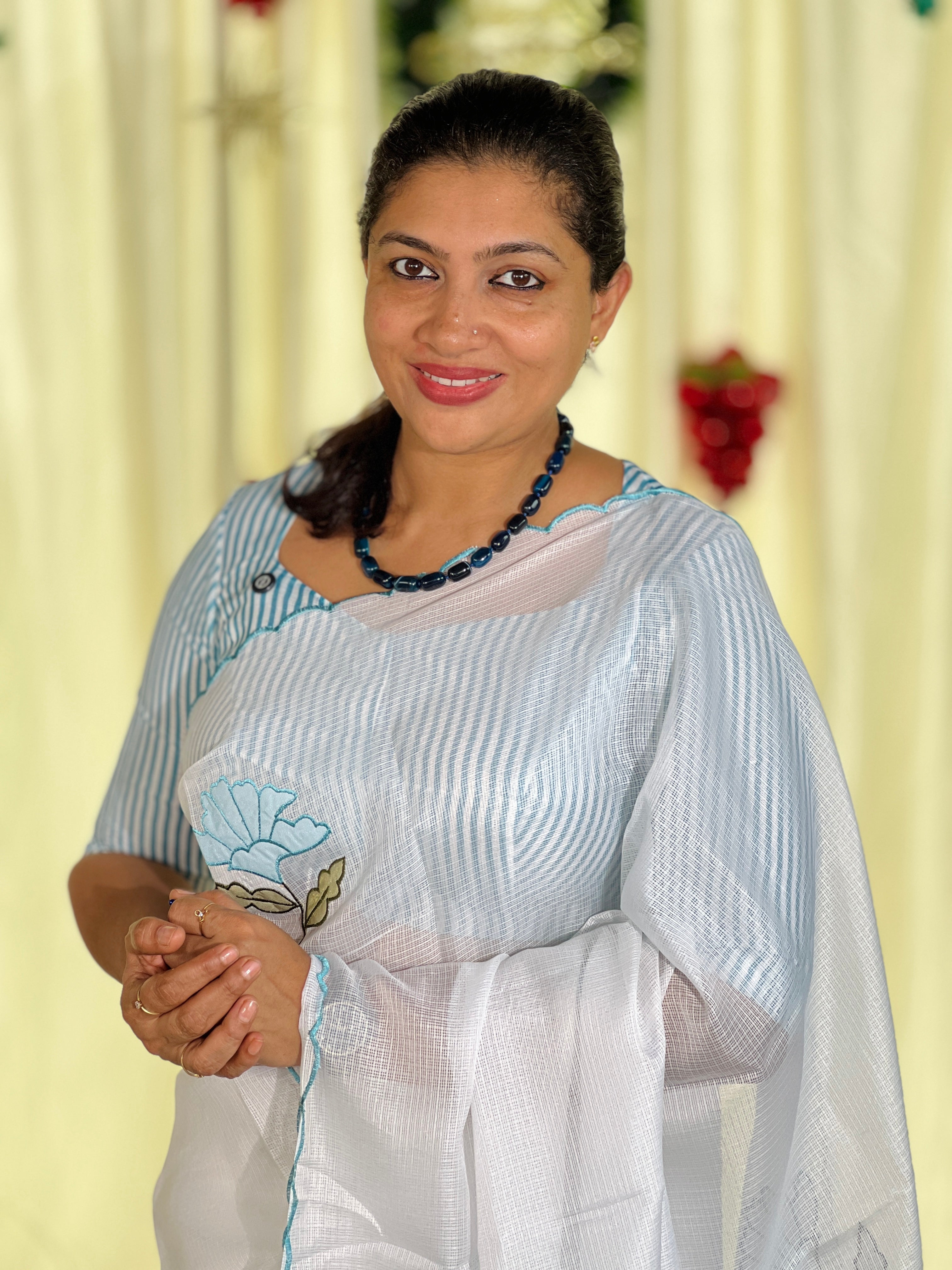 - Style: Scattered Floral Applique Work Detailing, Scallop Edges