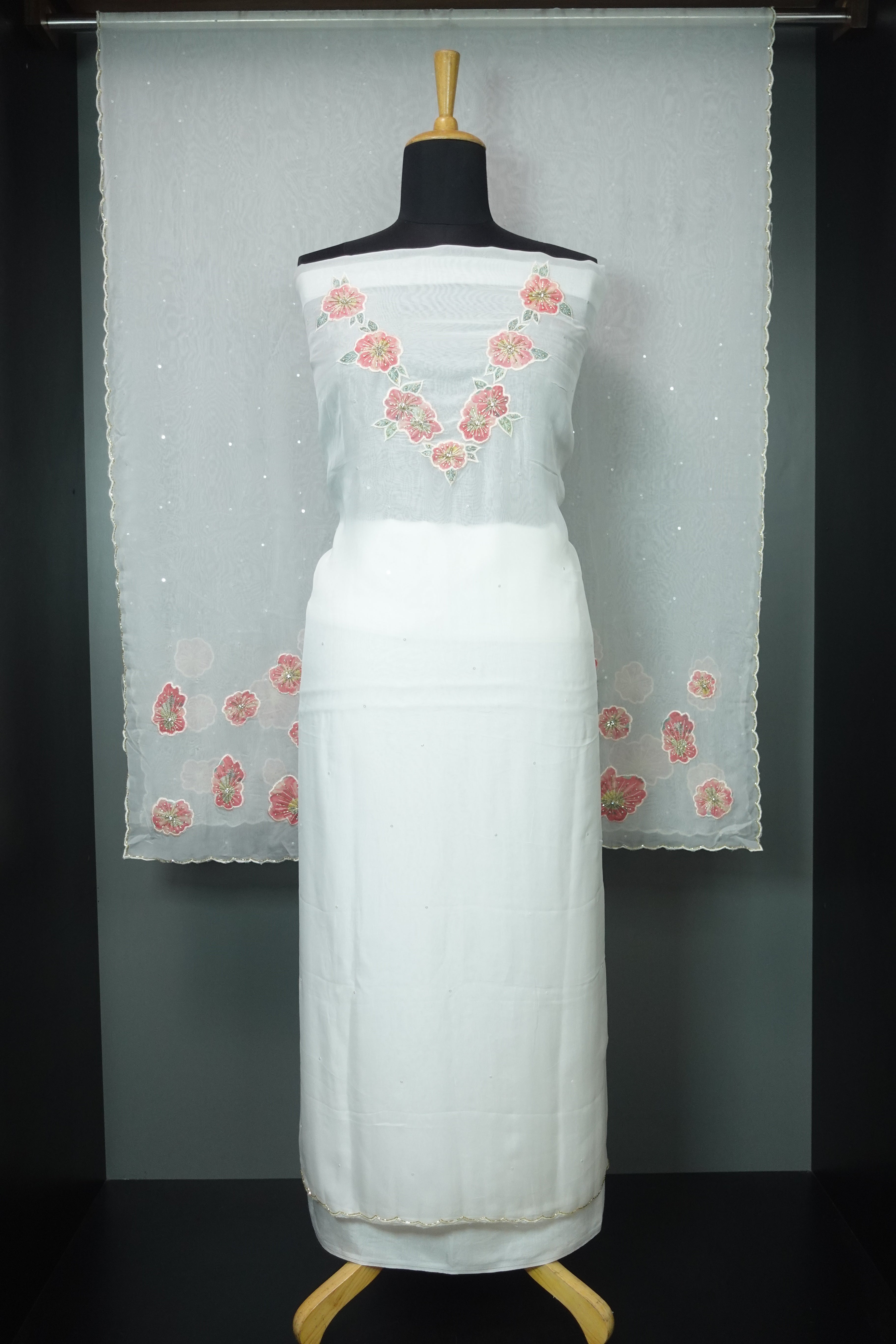 - Style: Printed Floral Applique With Hand Embroidery Highlight, Sticking Sequence Work