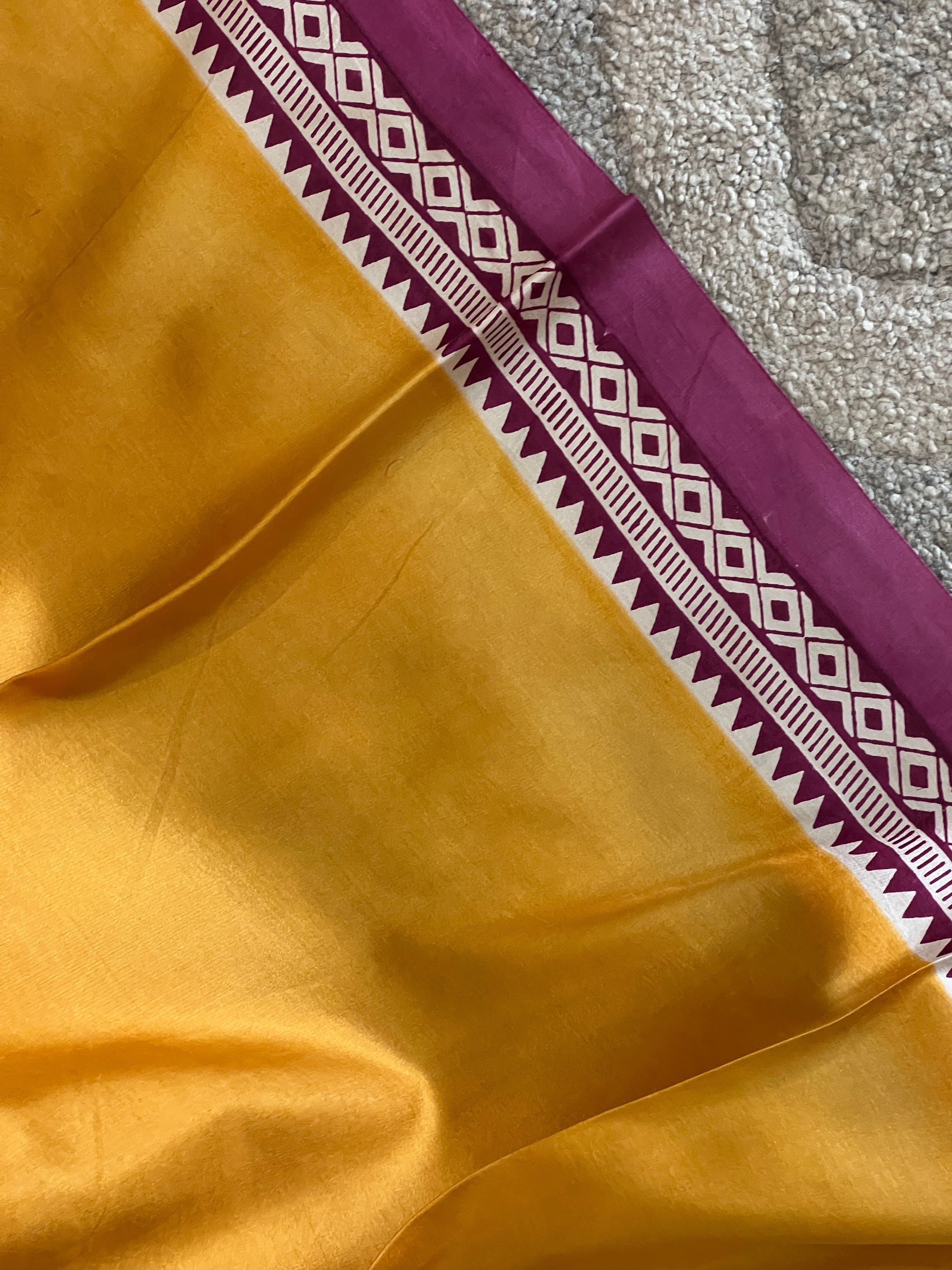 - Style: Block Printed, Floral Pattern, Double Shaded Pallu, Contrast Borders