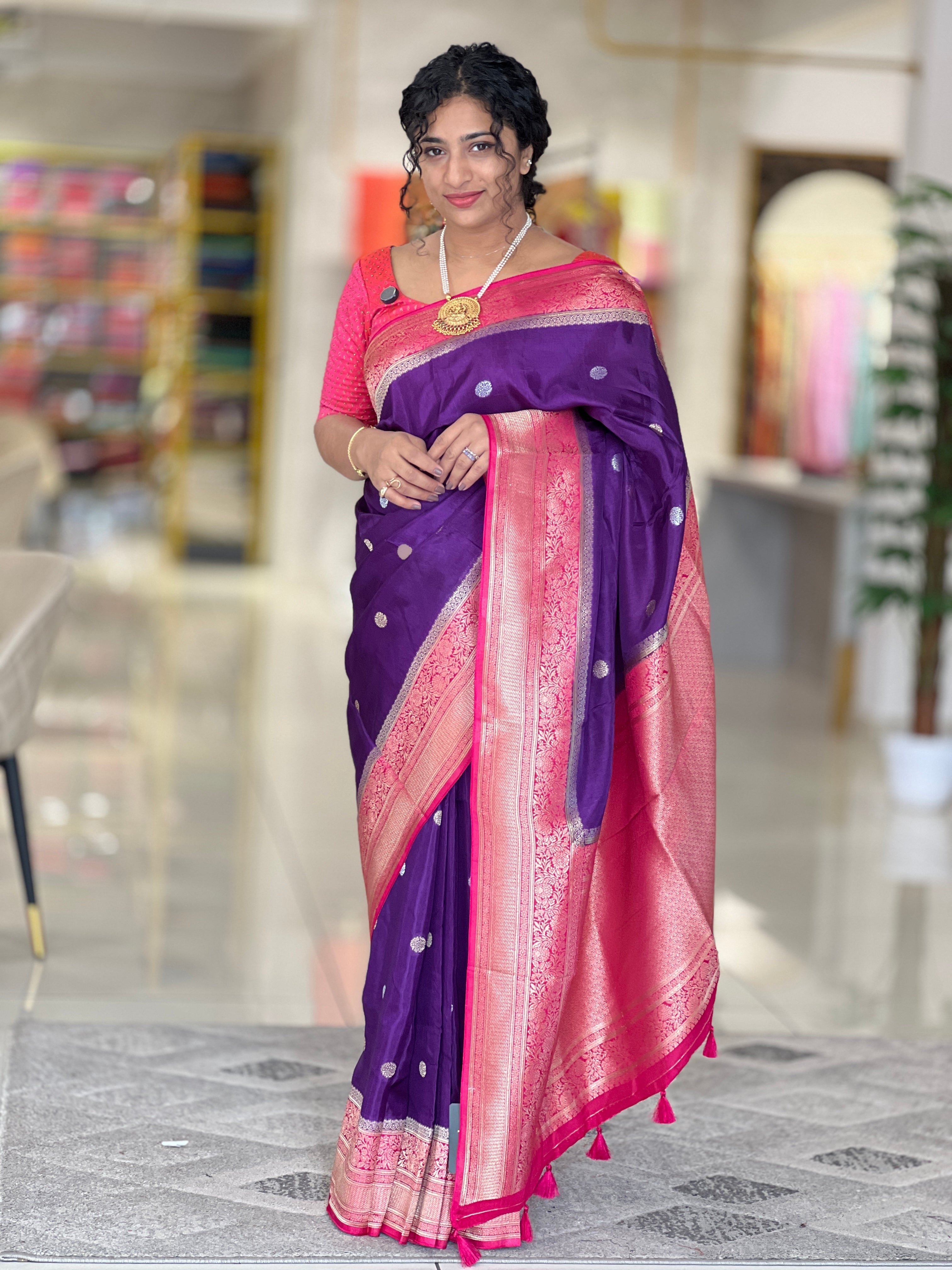 - Style:Buta Weaving Design, Banarasi Border Pattern, Butas, Zari Weaved