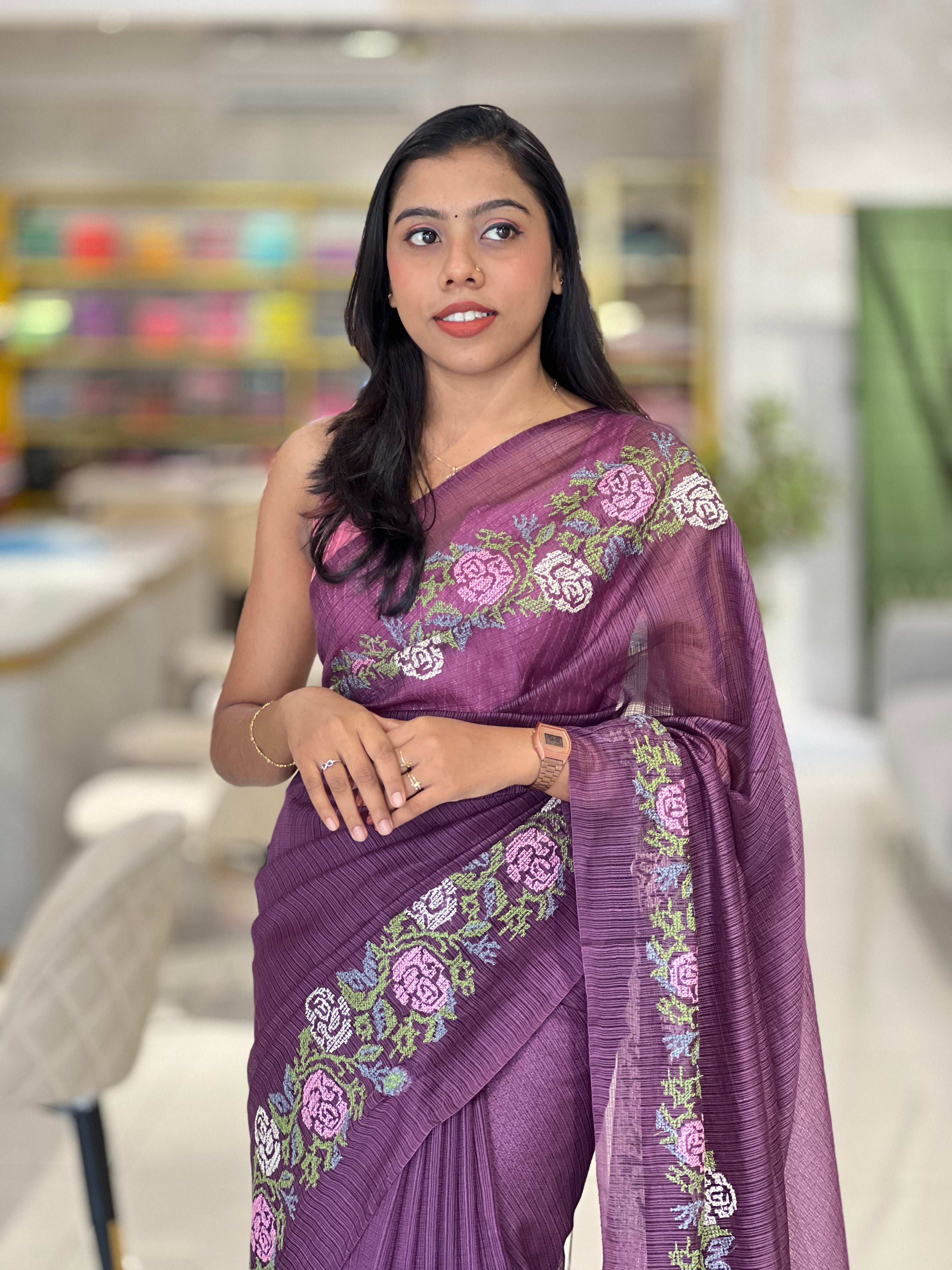 Floral Cross Stitch Embroidered Silky Kota Saree | NHH466