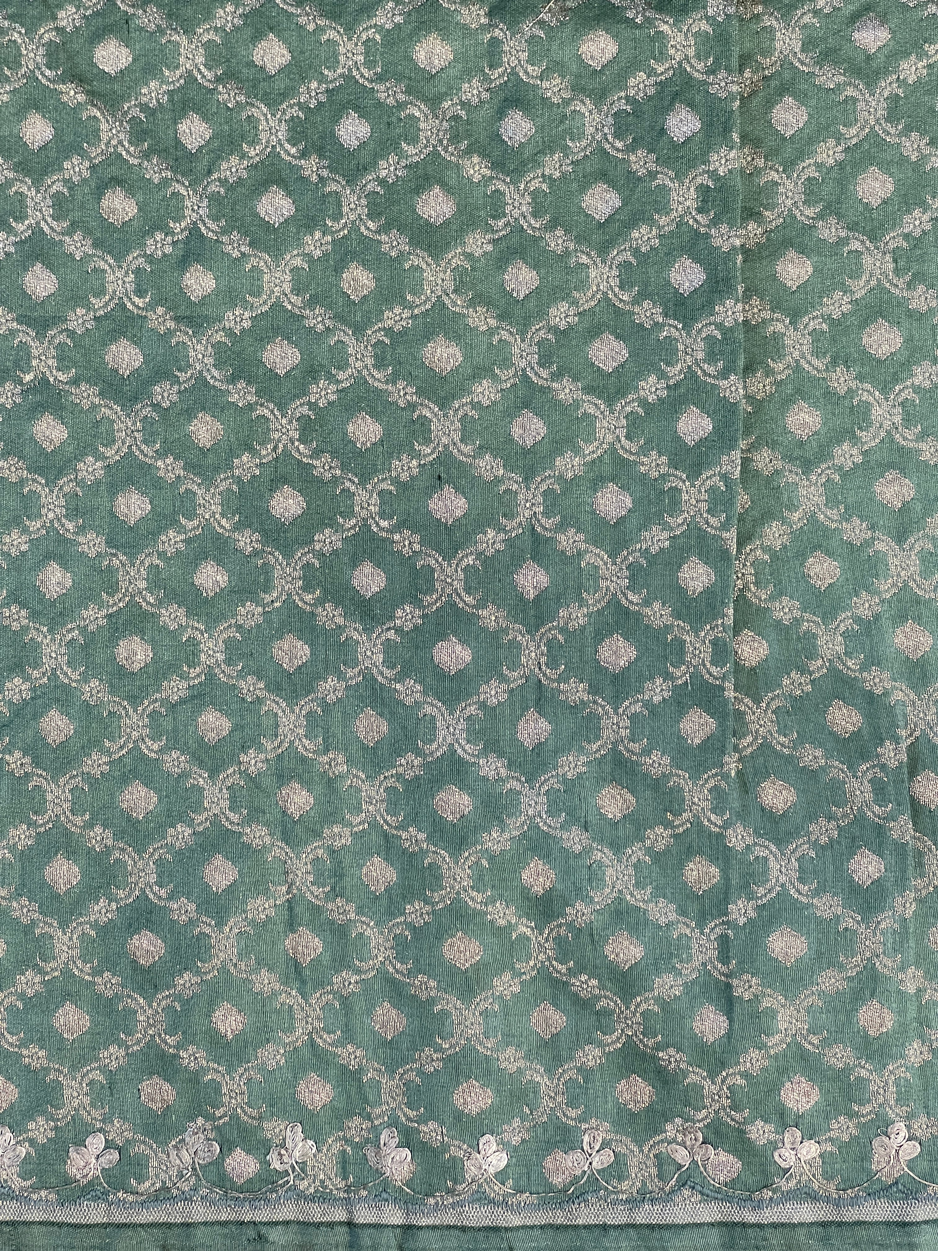 - Style: Floral Cross Stitch Embroidery, Stripes Pattern, Pita Work Detailing, Pallu Detailing, Scallop Finish