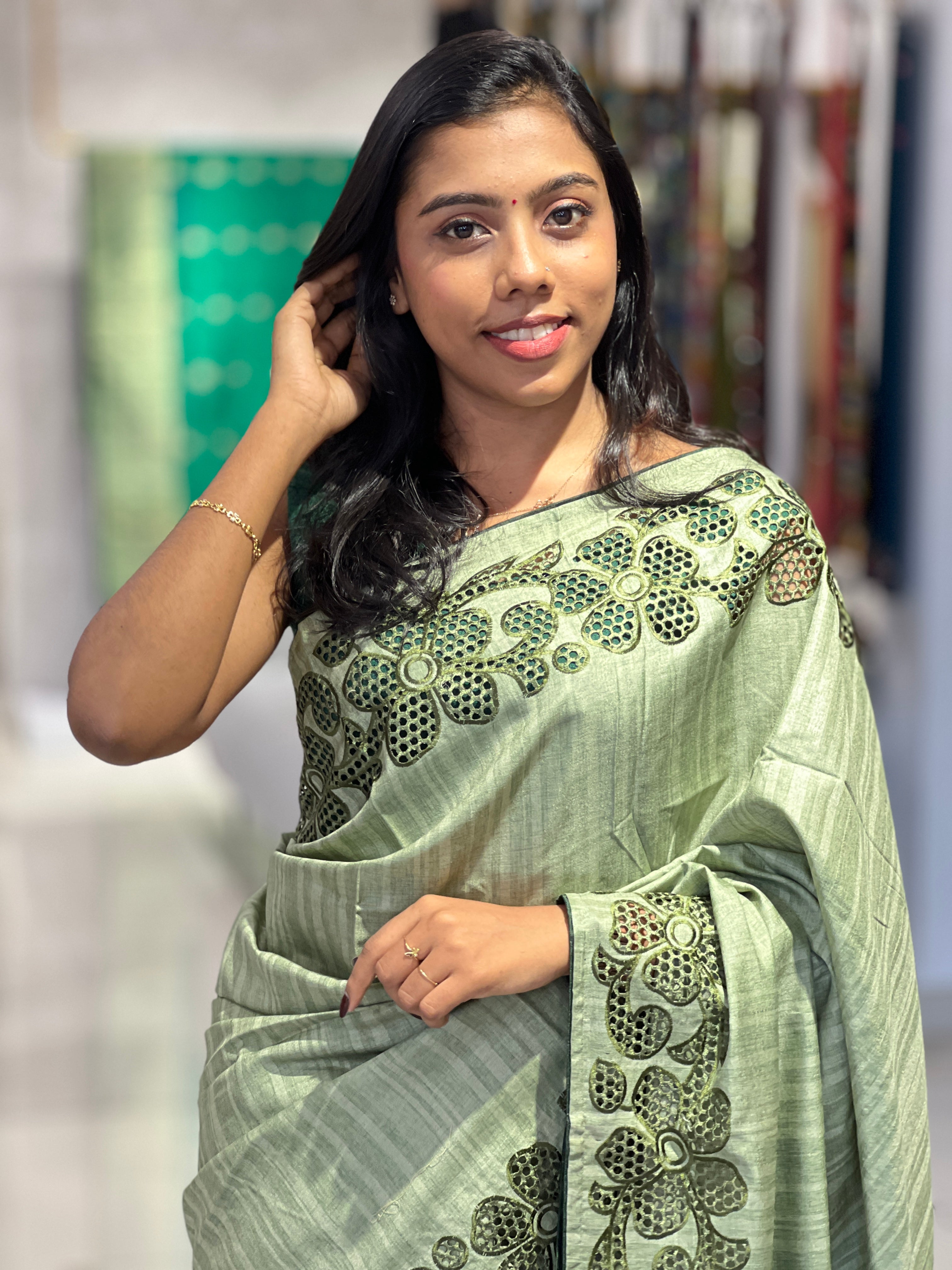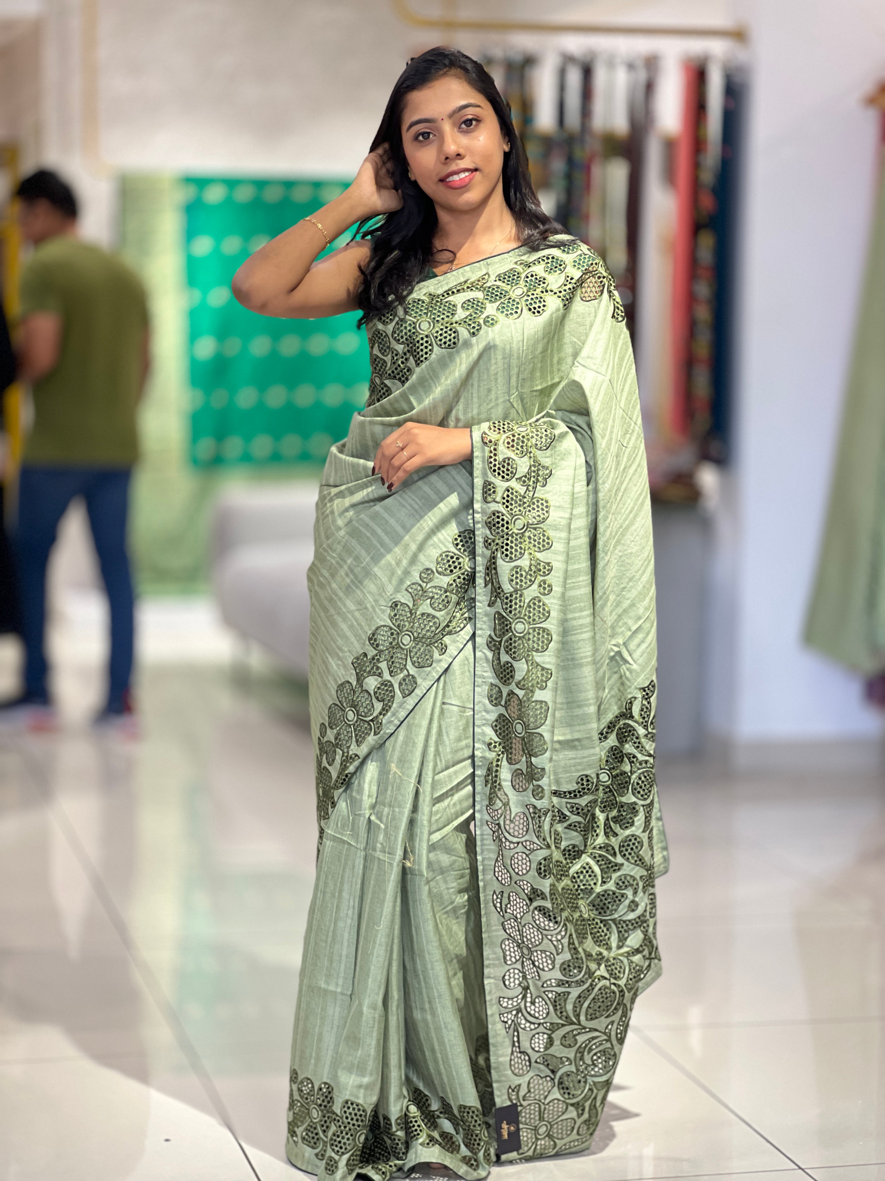 Floral Cut-Work Embroidery Semi Tussar Saree | SUN327