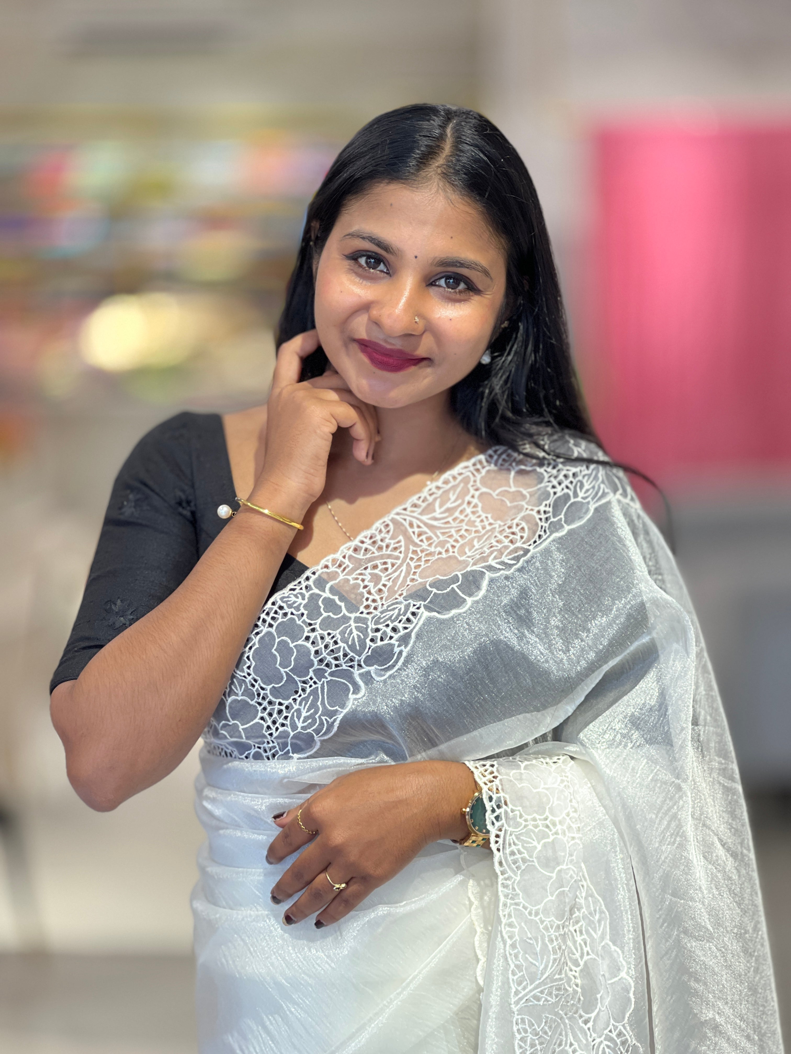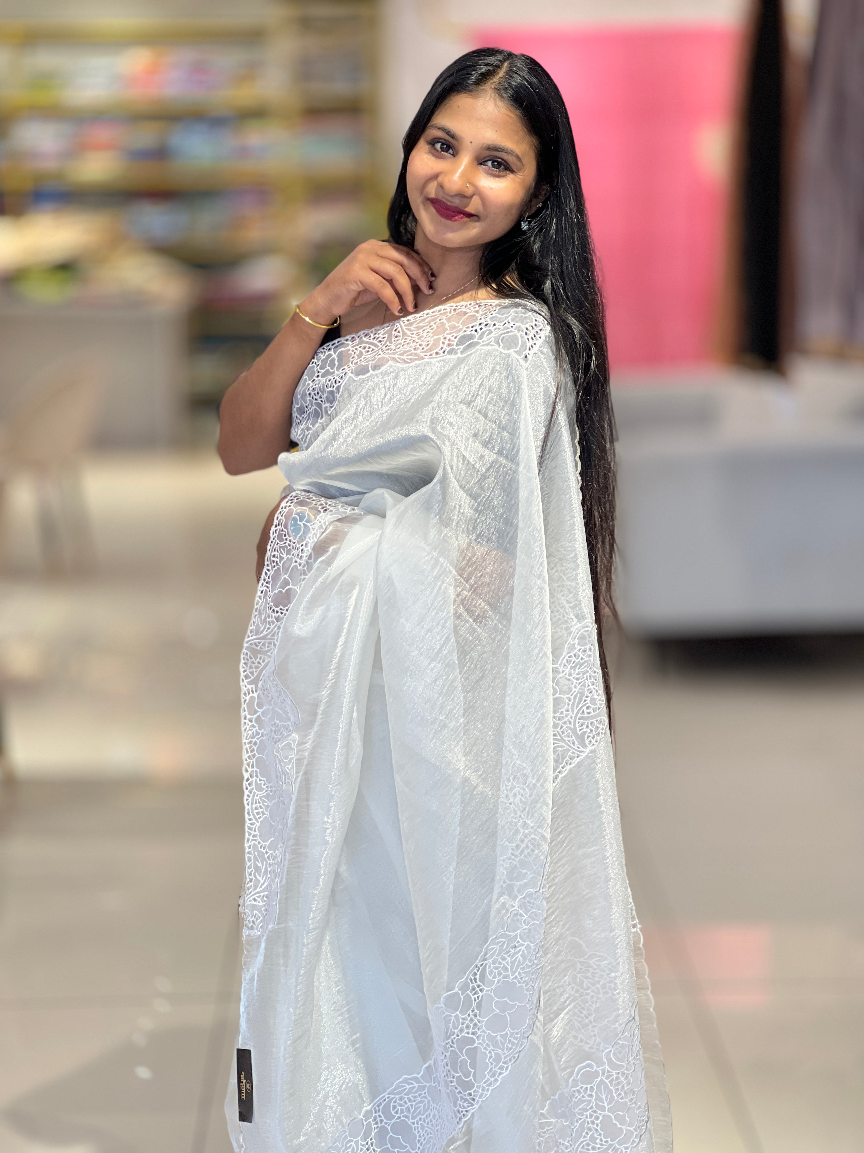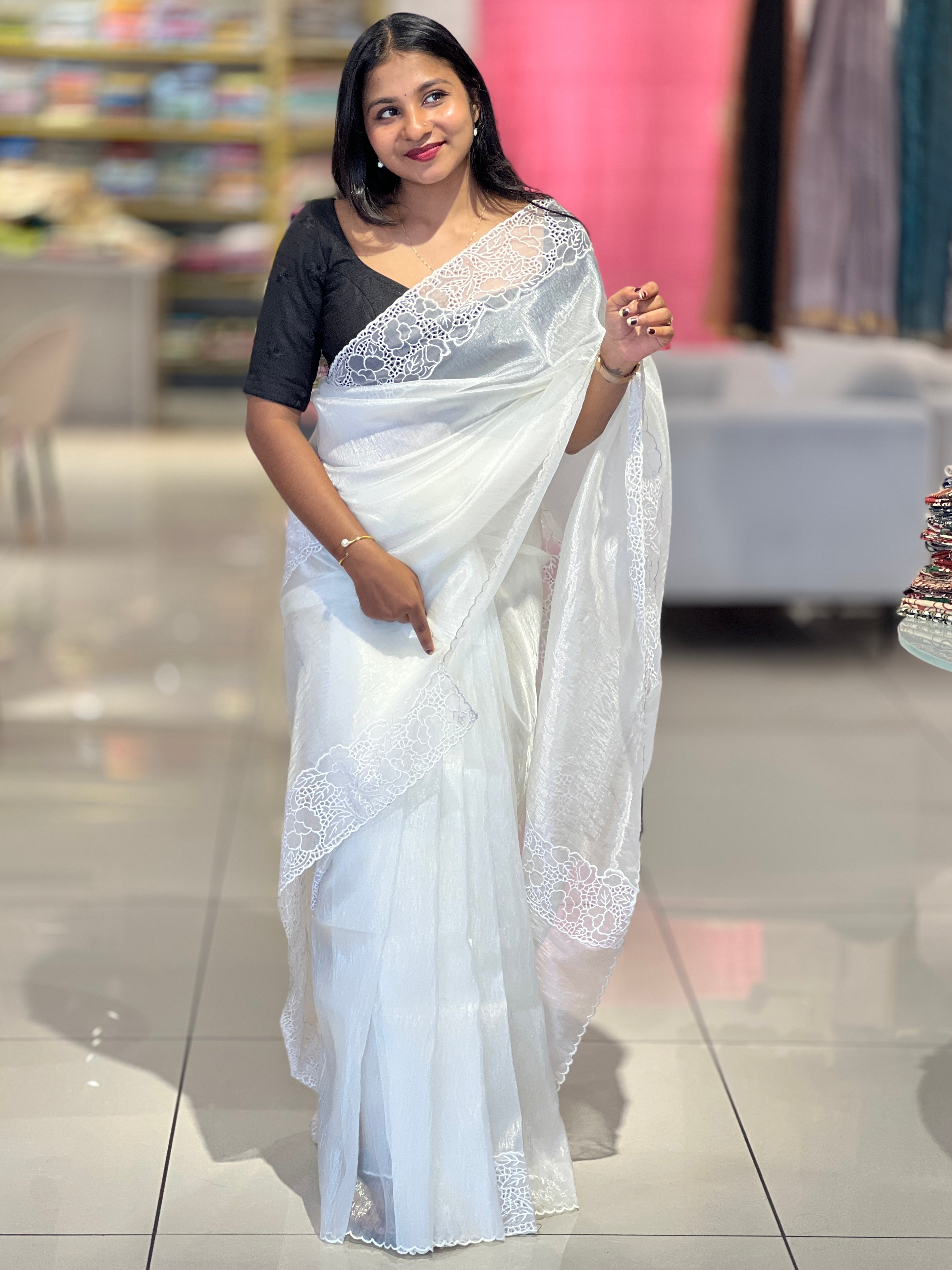 - Style: Machine Cutwork Floral Embroidery Border Detailing, Scallop Edges
