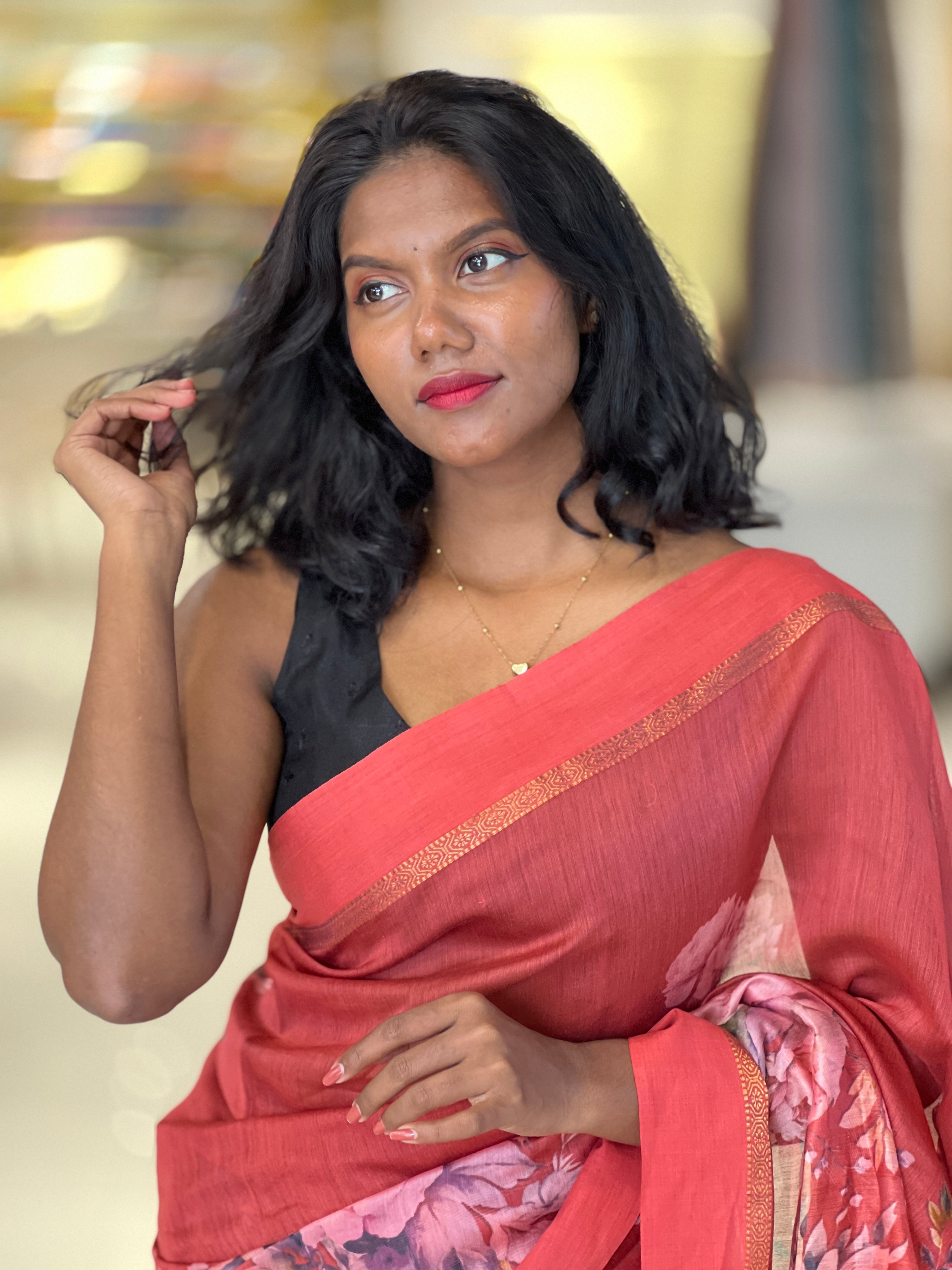 Floral Digital Print Detailed Chanderi Saree | RGD414