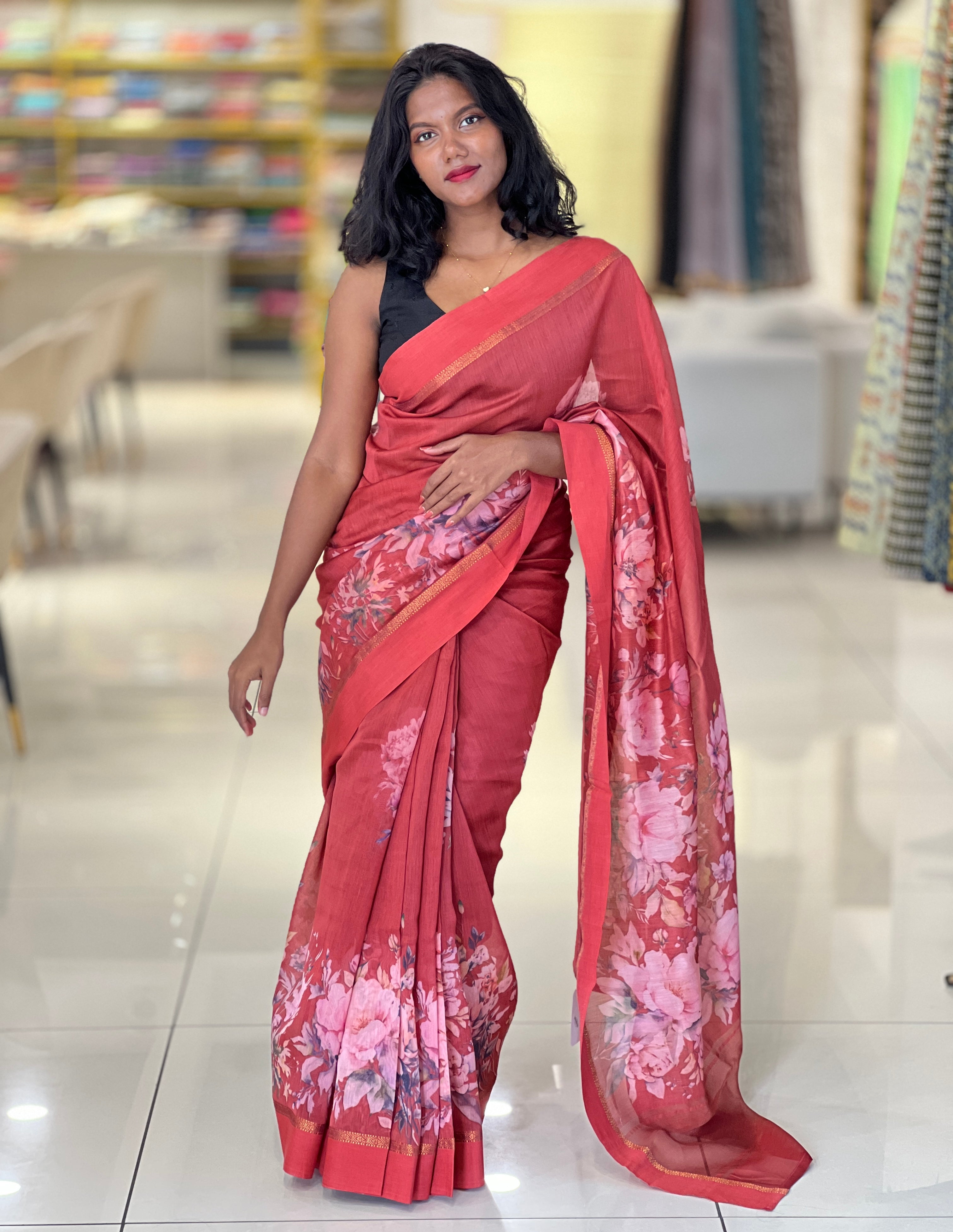 Floral Digital Print Detailed Chanderi Saree | RGD414 Floral Digital Print Detailed Chanderi Saree | RGD414 Floral Digital Print Detailed Chanderi Saree | RGD414