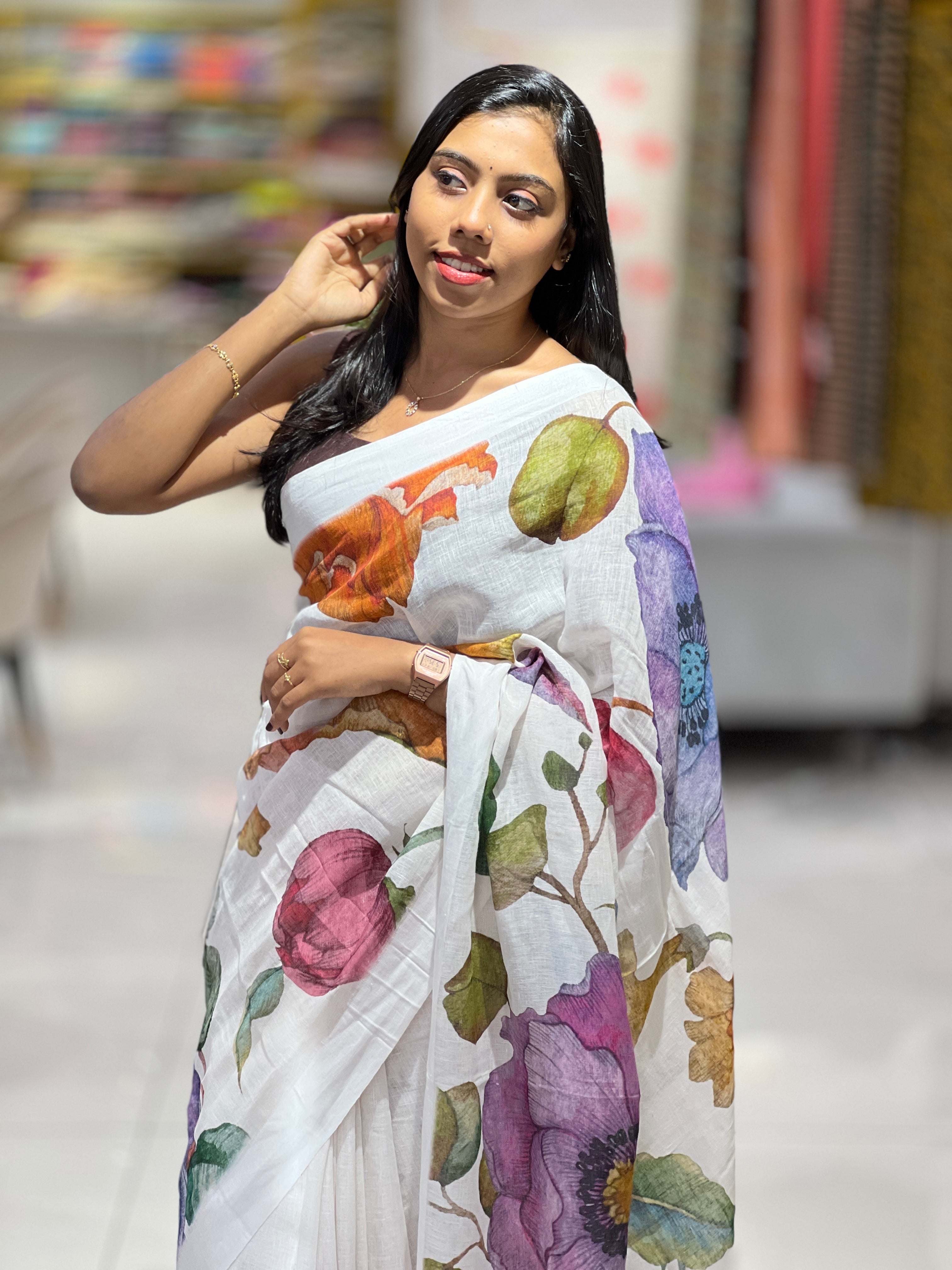 - Style: Digital Print Floral Pattern, Powerloom