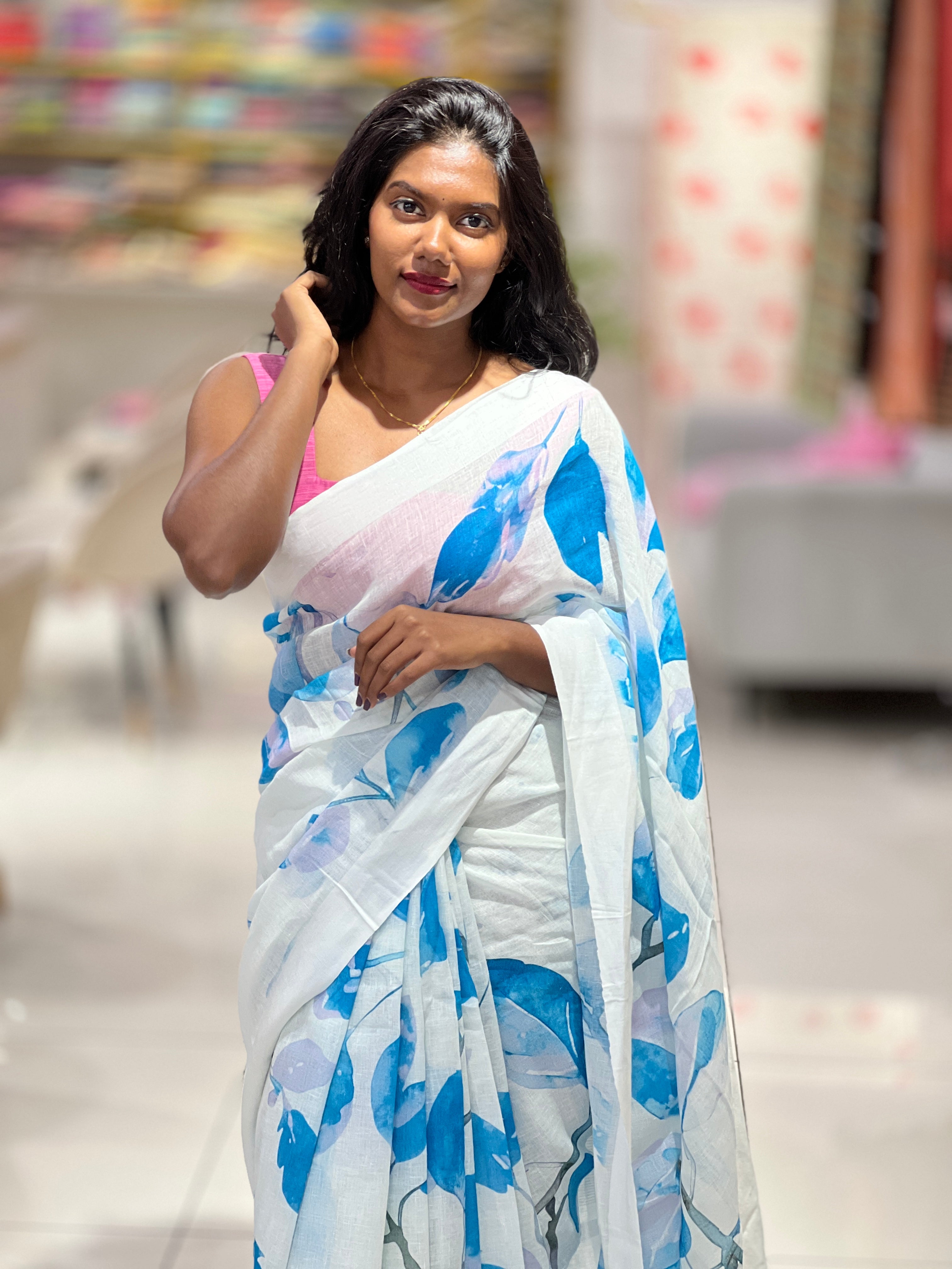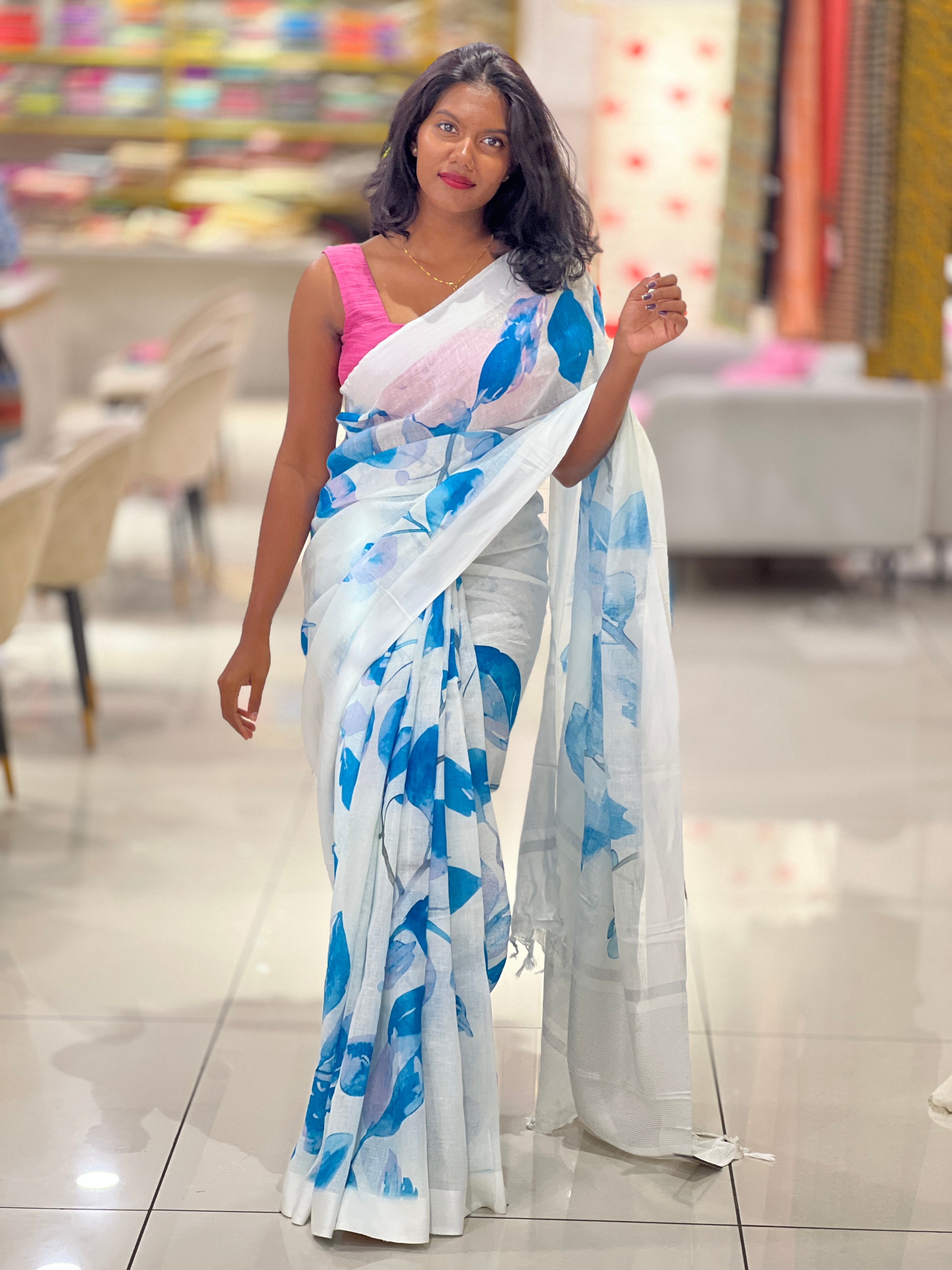 Floral Digital Print Detailed Linen Saree | MR400 Floral Digital Print Detailed Linen Saree | MR400 Floral Digital Print Detailed Linen Saree | MR400