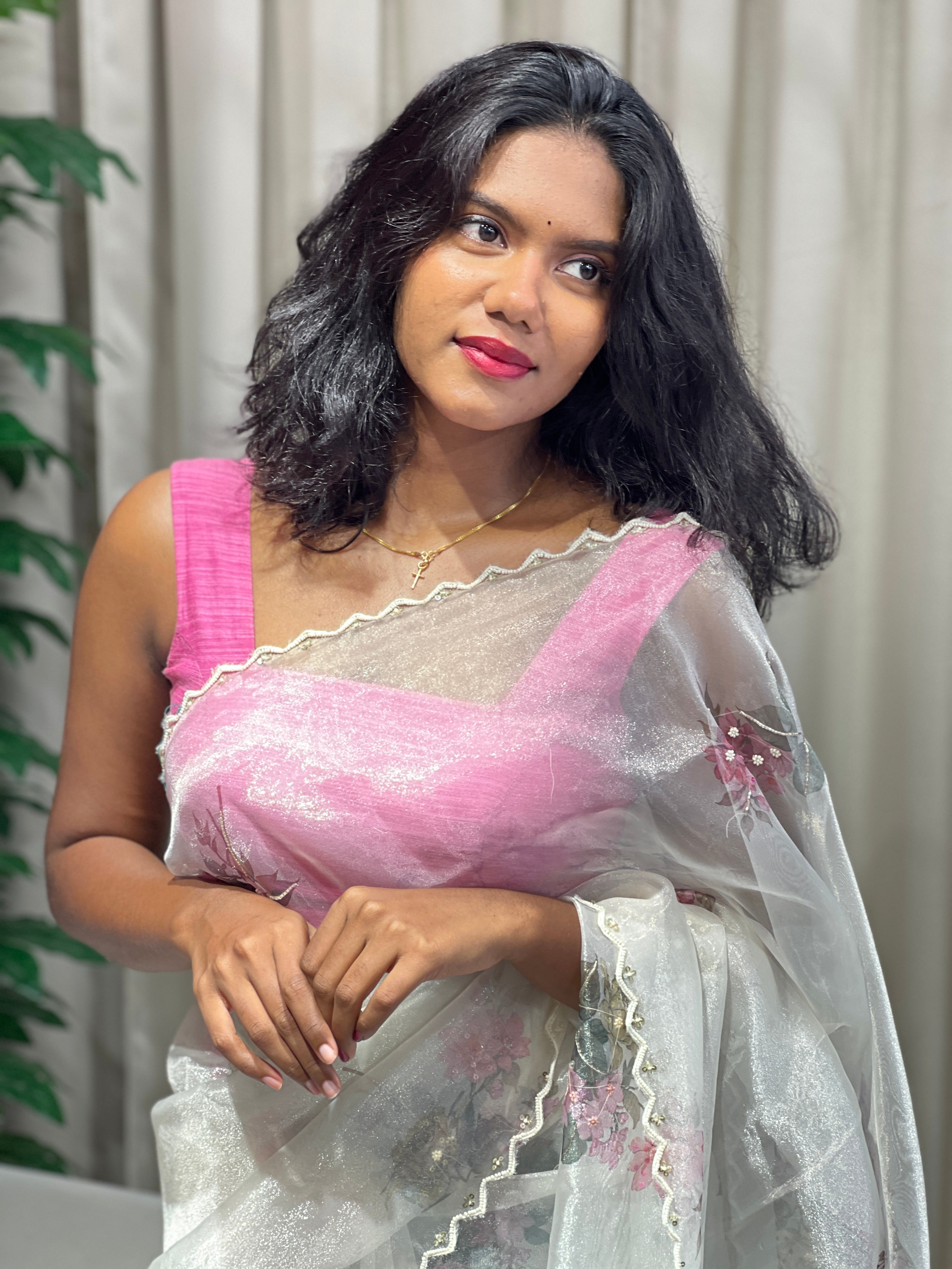 - Style: Floral Digital Printed With Cut Beads, Sugar Beads & Sequins Highlight, Zigzag Patterned Scallop Edges With Sequins & Sugar Beads Detailing