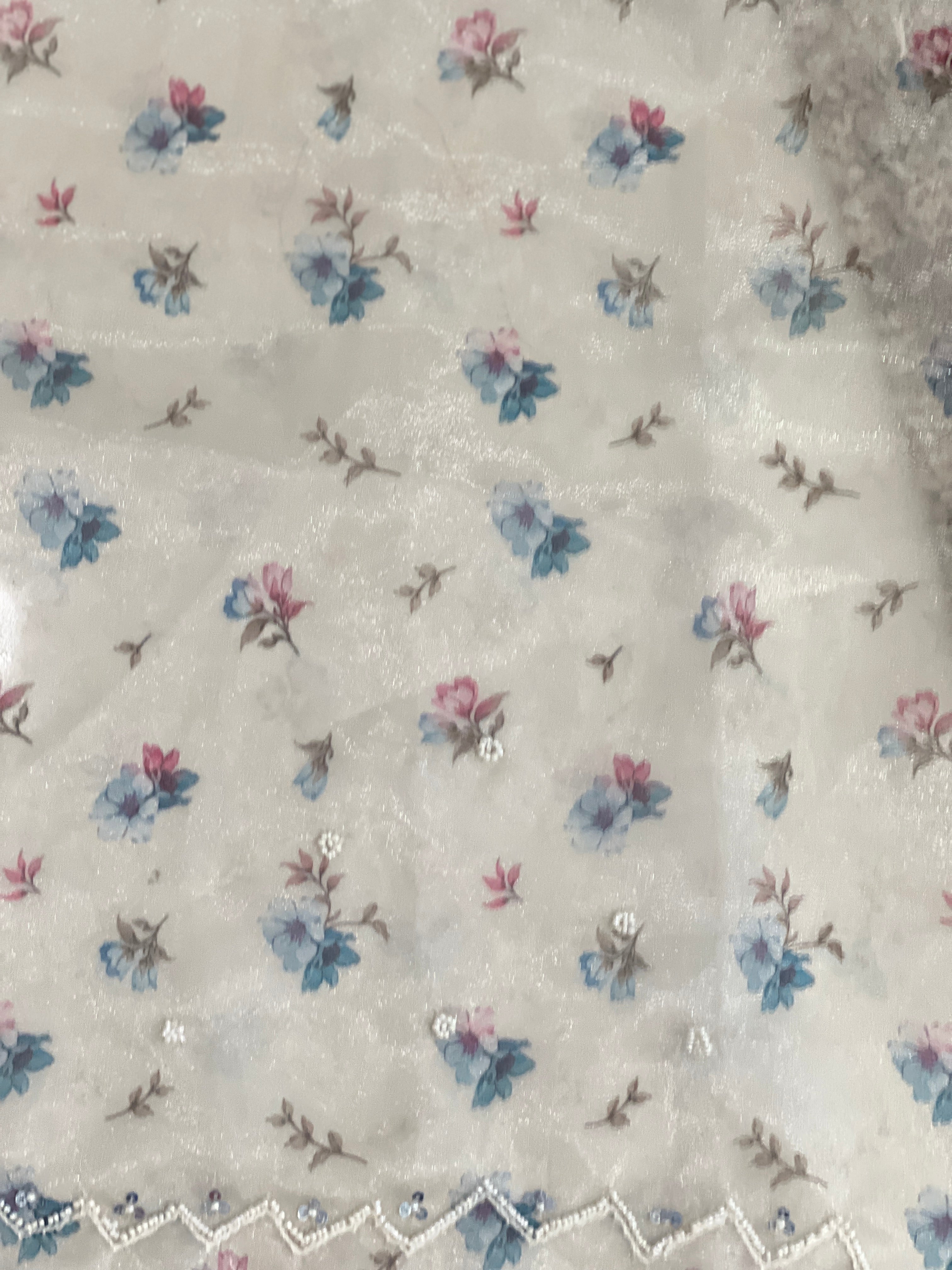 Floral Digital Print With Beads Highlighted Glass Organza Saree | BLD1773