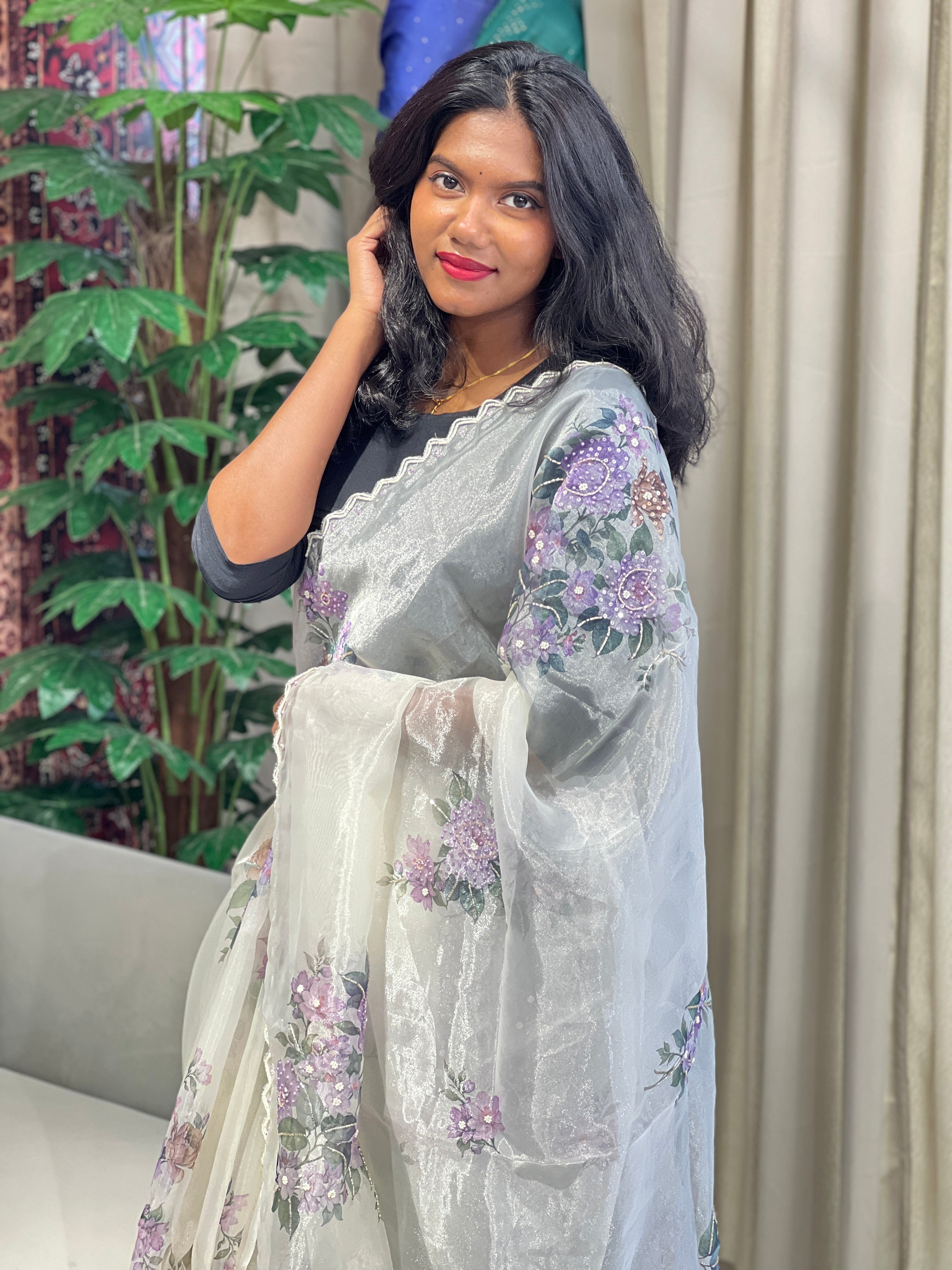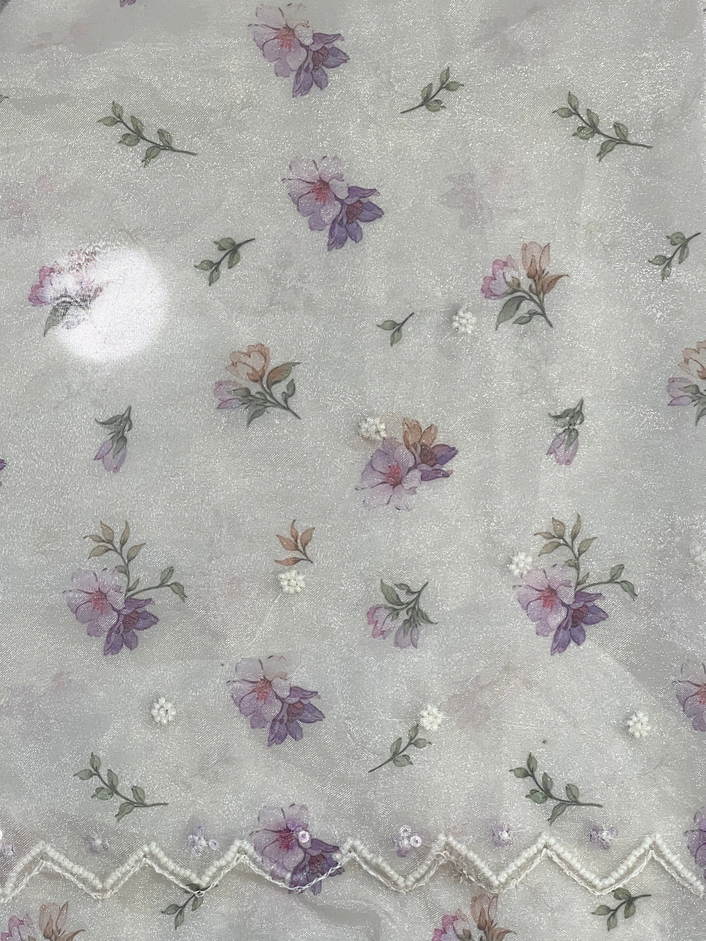 - Style: Floral Digital Printed With Cut Beads, Sugar Beads & Sequins Highlight, Zigzag Patterned Scallop Edges With Sequins & Sugar Beads Detailing