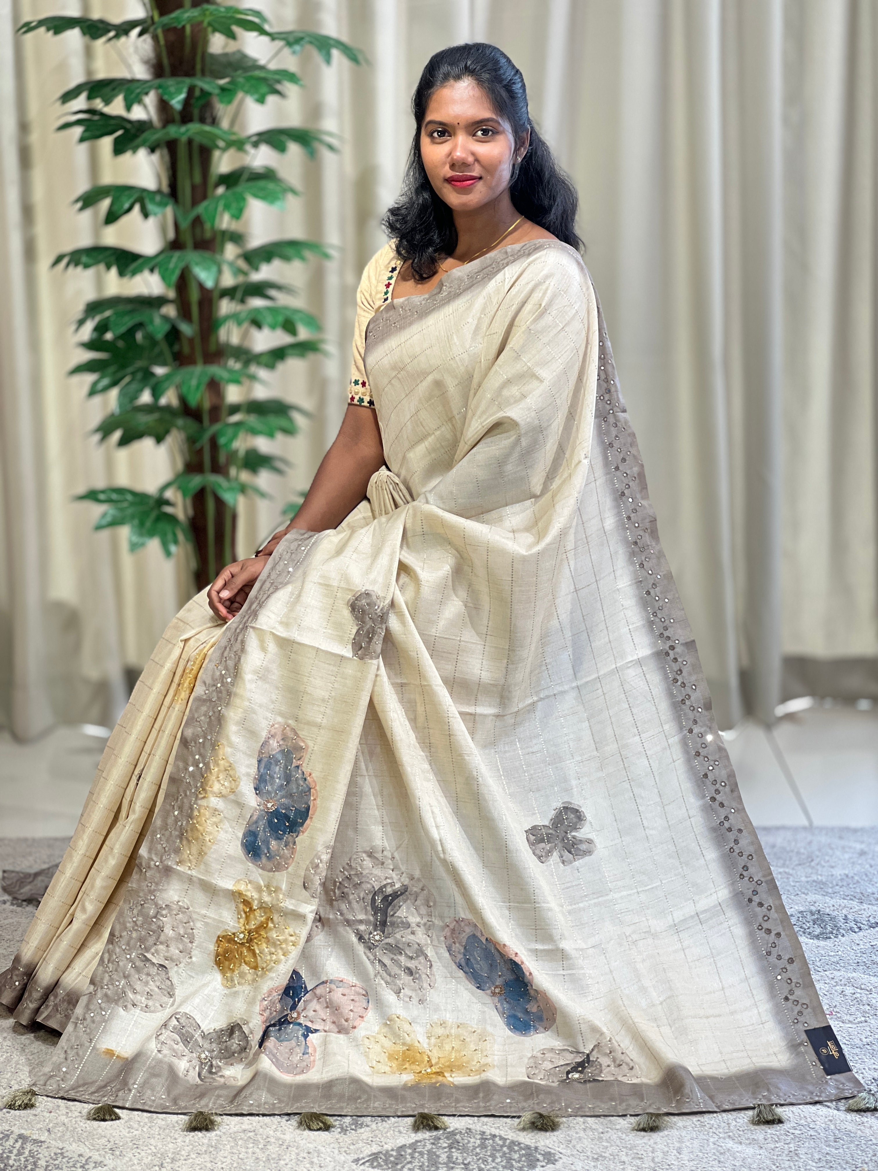 • Floral Digital Print With Sequence Highlighted Semi Tussar Finish Saree | BLD1270