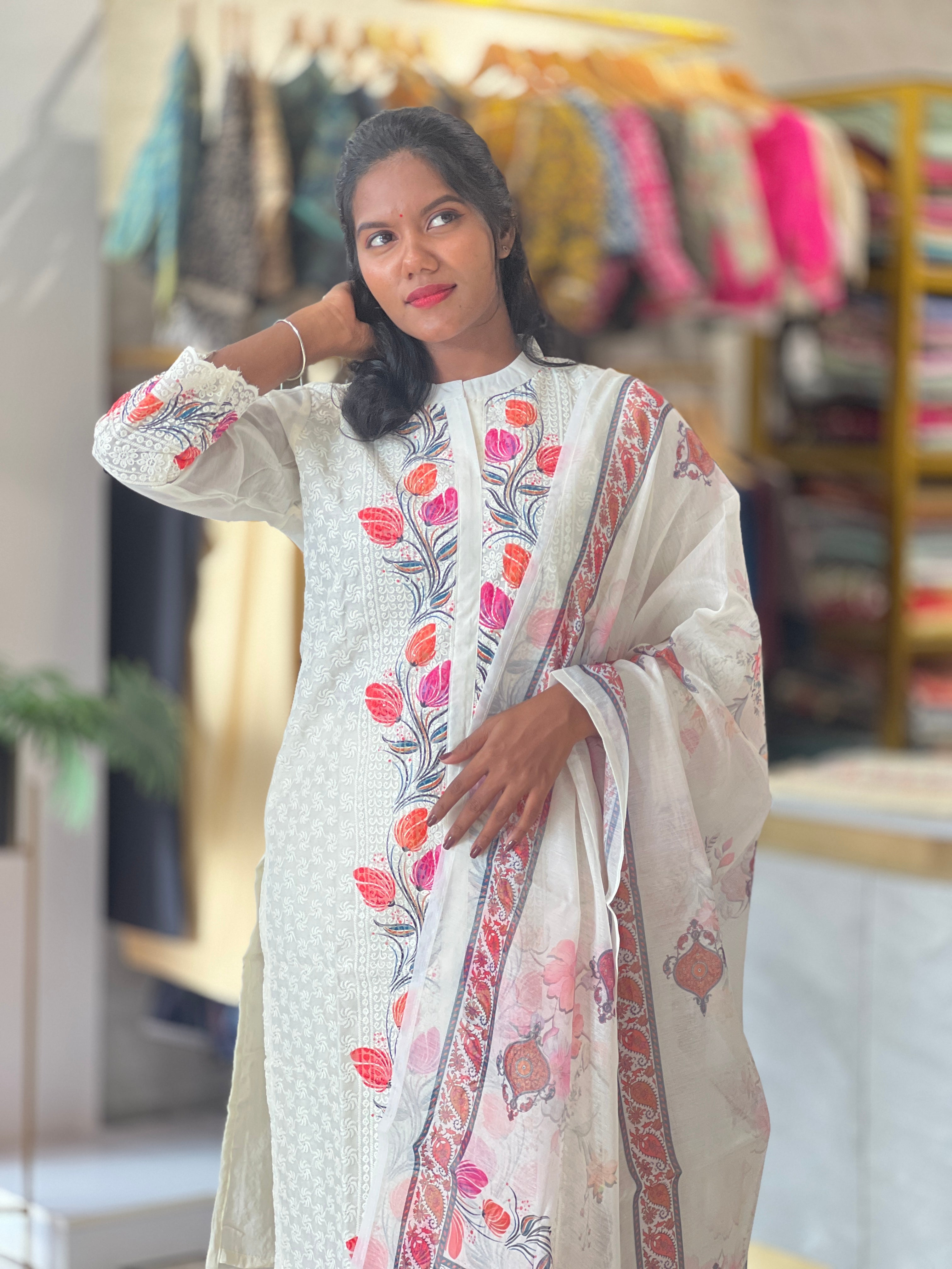 - Style:Floral Digital Printed, Machine Embroidery Highlighted WIth Sequence, Embroidered Sleeves with Digital Print