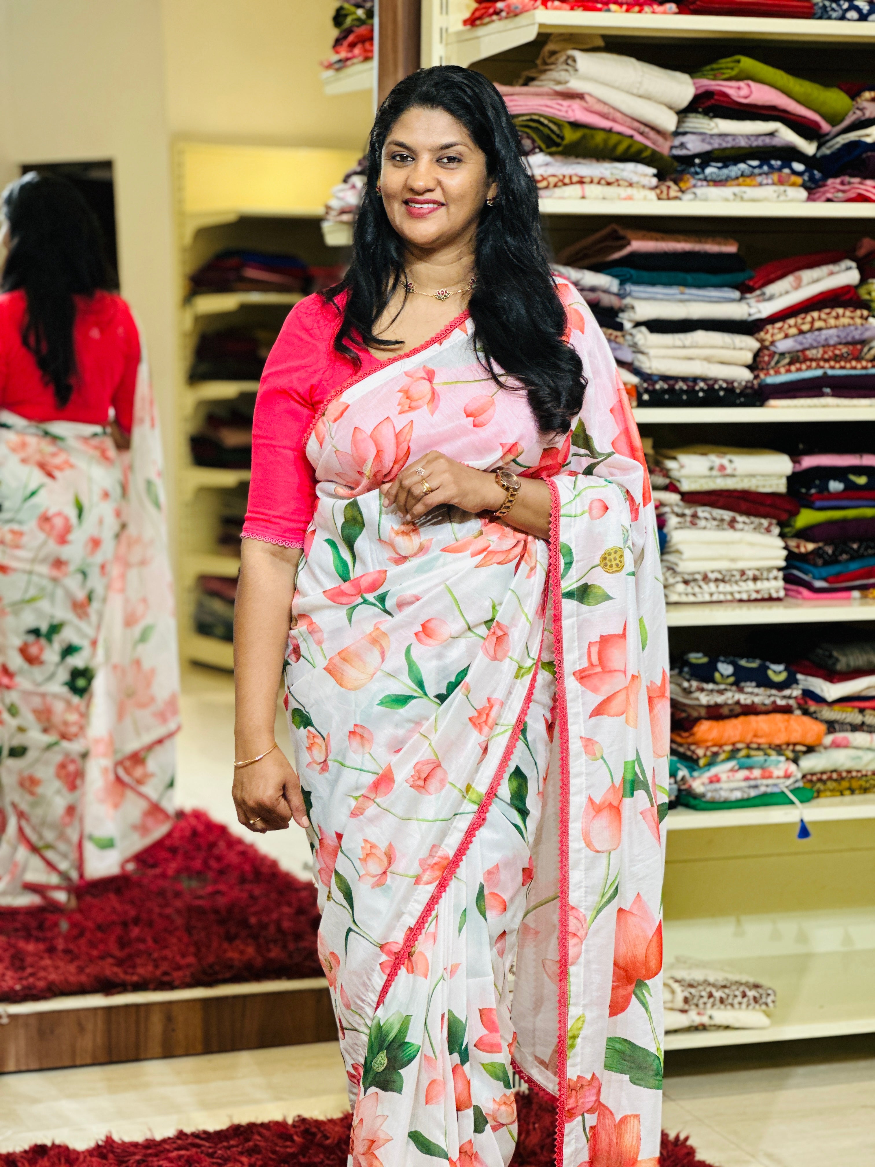 - Style: Floral Digital Print Lotus Pattern, Crochet Lace Finished Edges