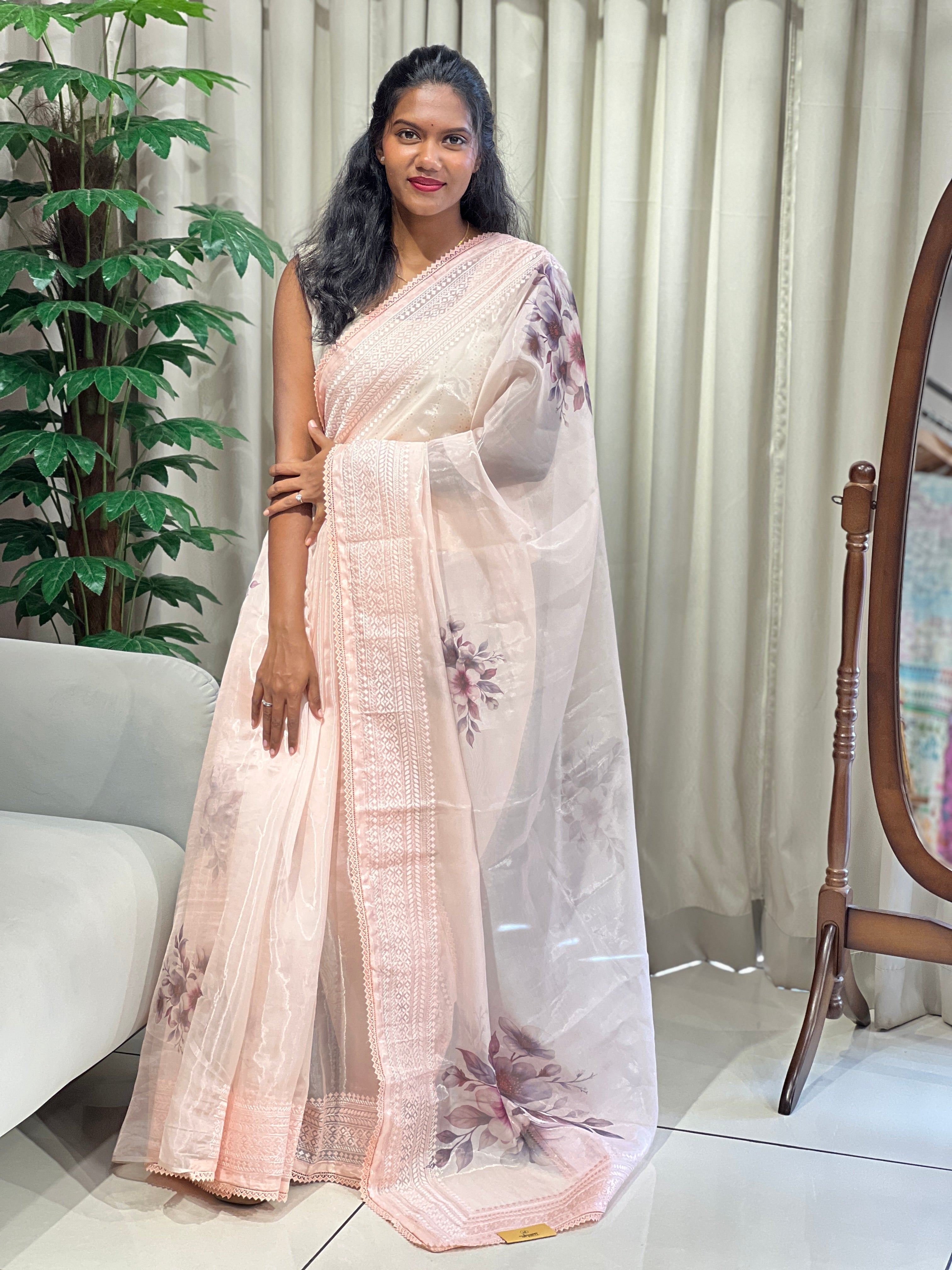 - Style: Floral Digital Printed, Embroidered Border, Lace Detailing