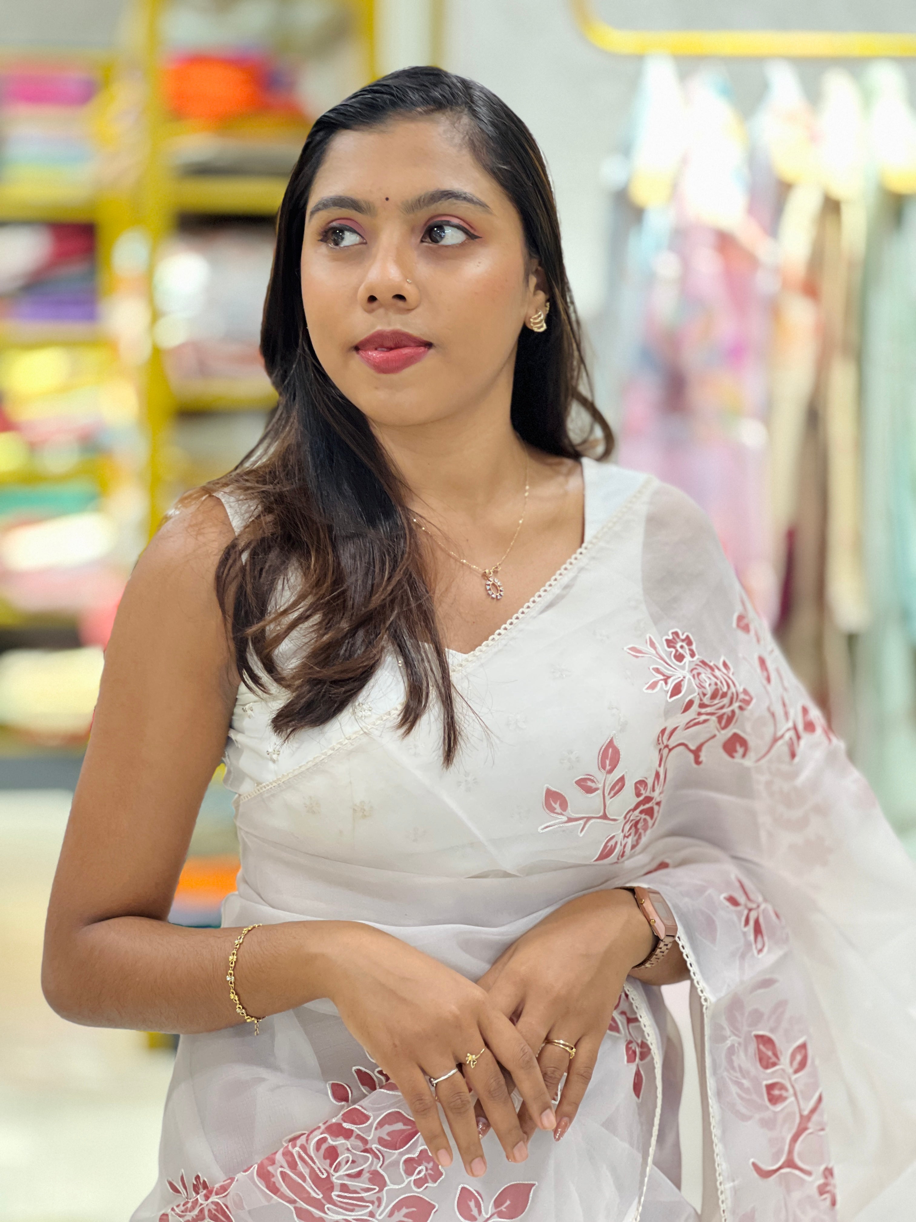 - Style: Floral Digital Print With Chain Stitch Outline Detailing, Lace Finished edges