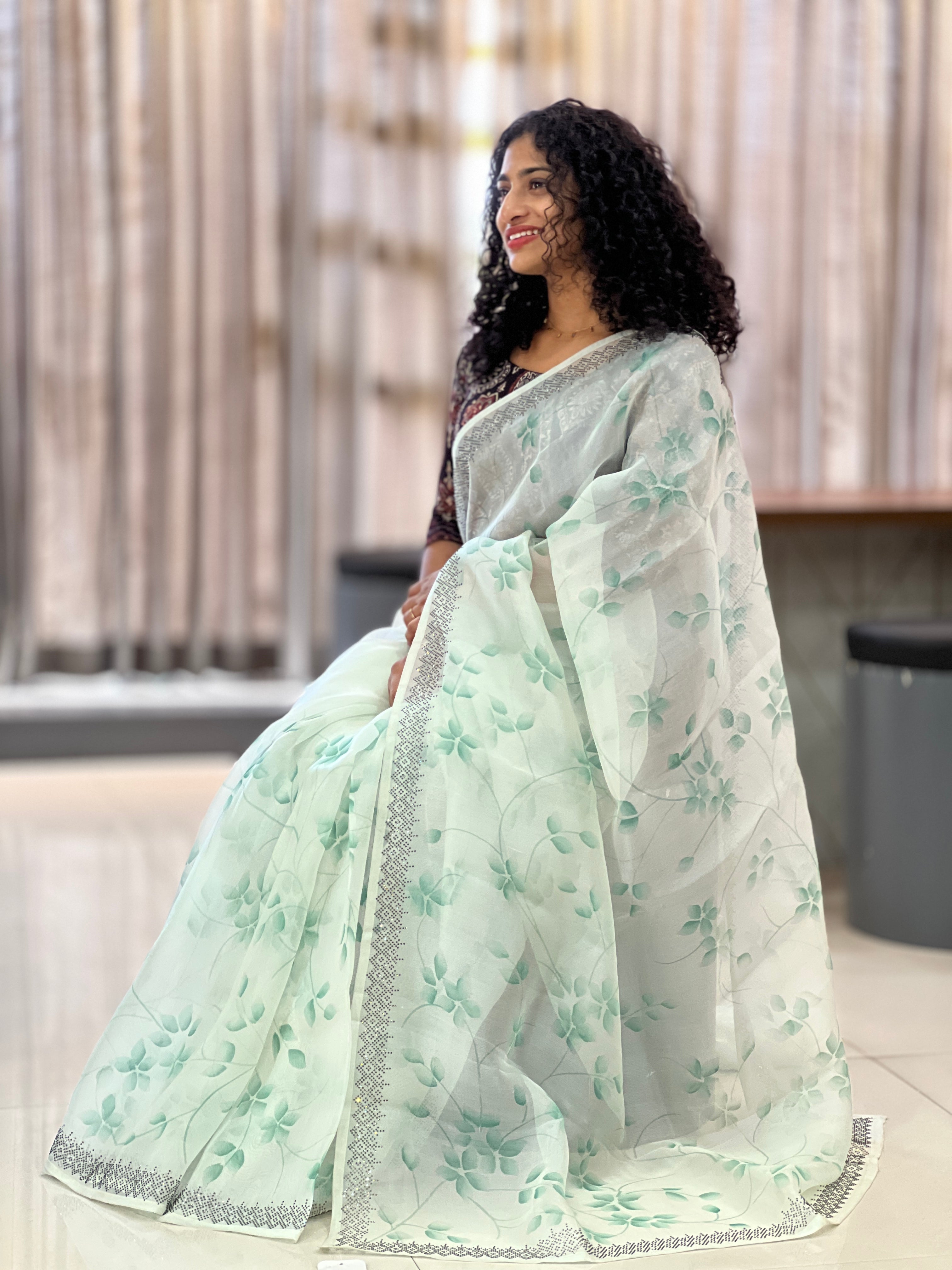 - Style: Floral Digital Printed, Small Stone Embroidery Border
