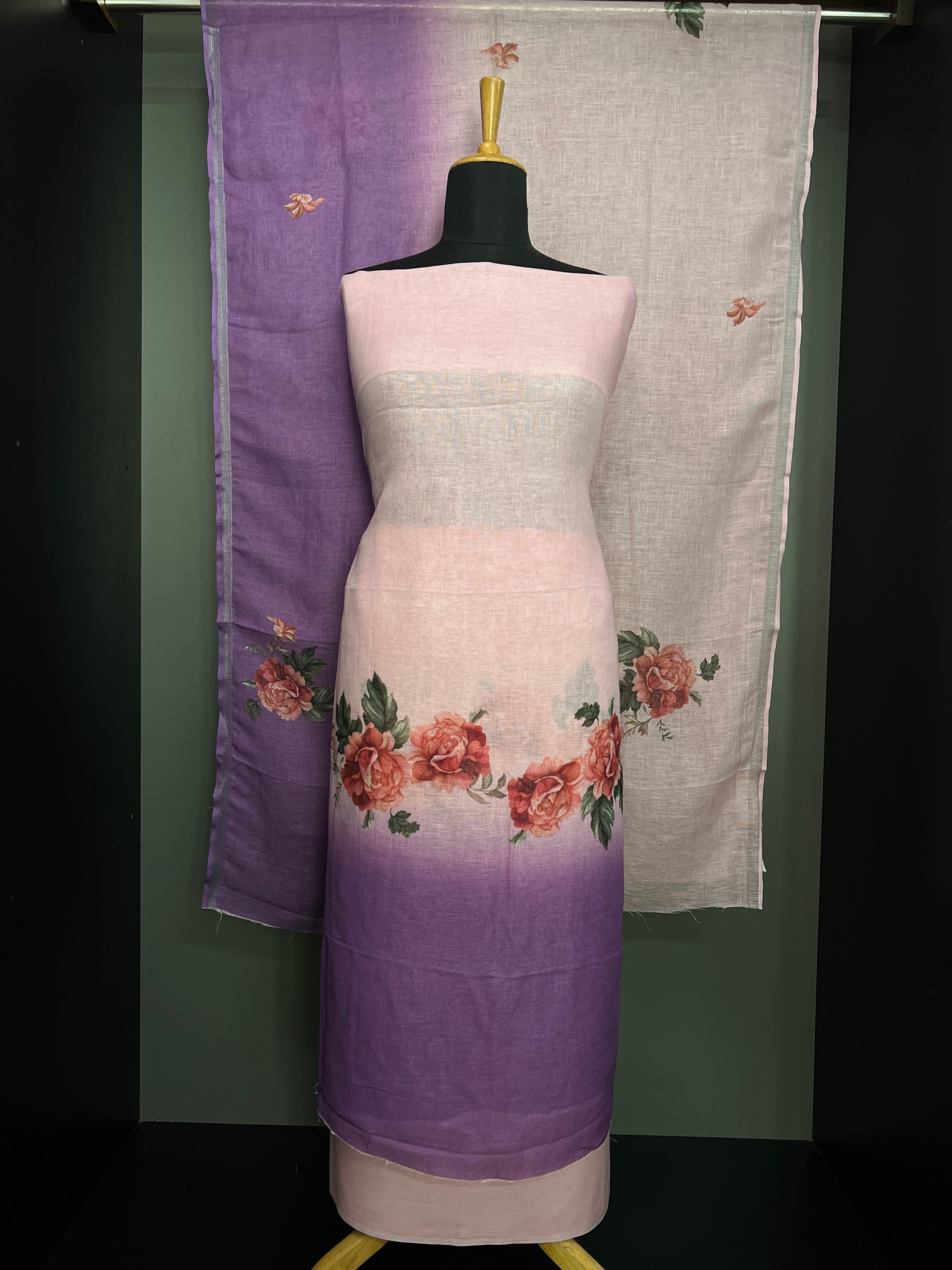 • Floral Digital Printed Pure Linen Salwar Set | HE136