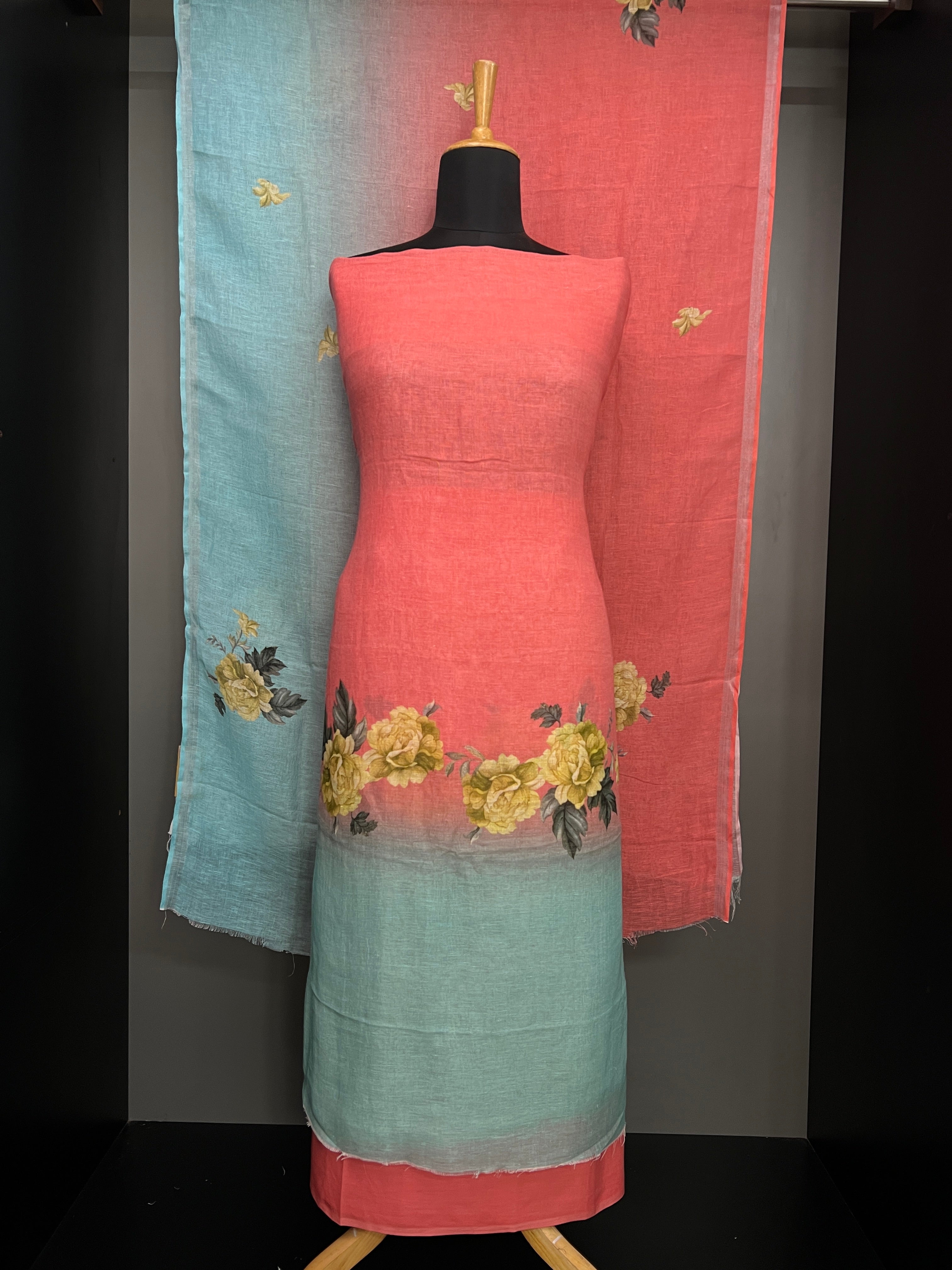 • Floral Digital Printed Pure Linen Salwar Set | HE137