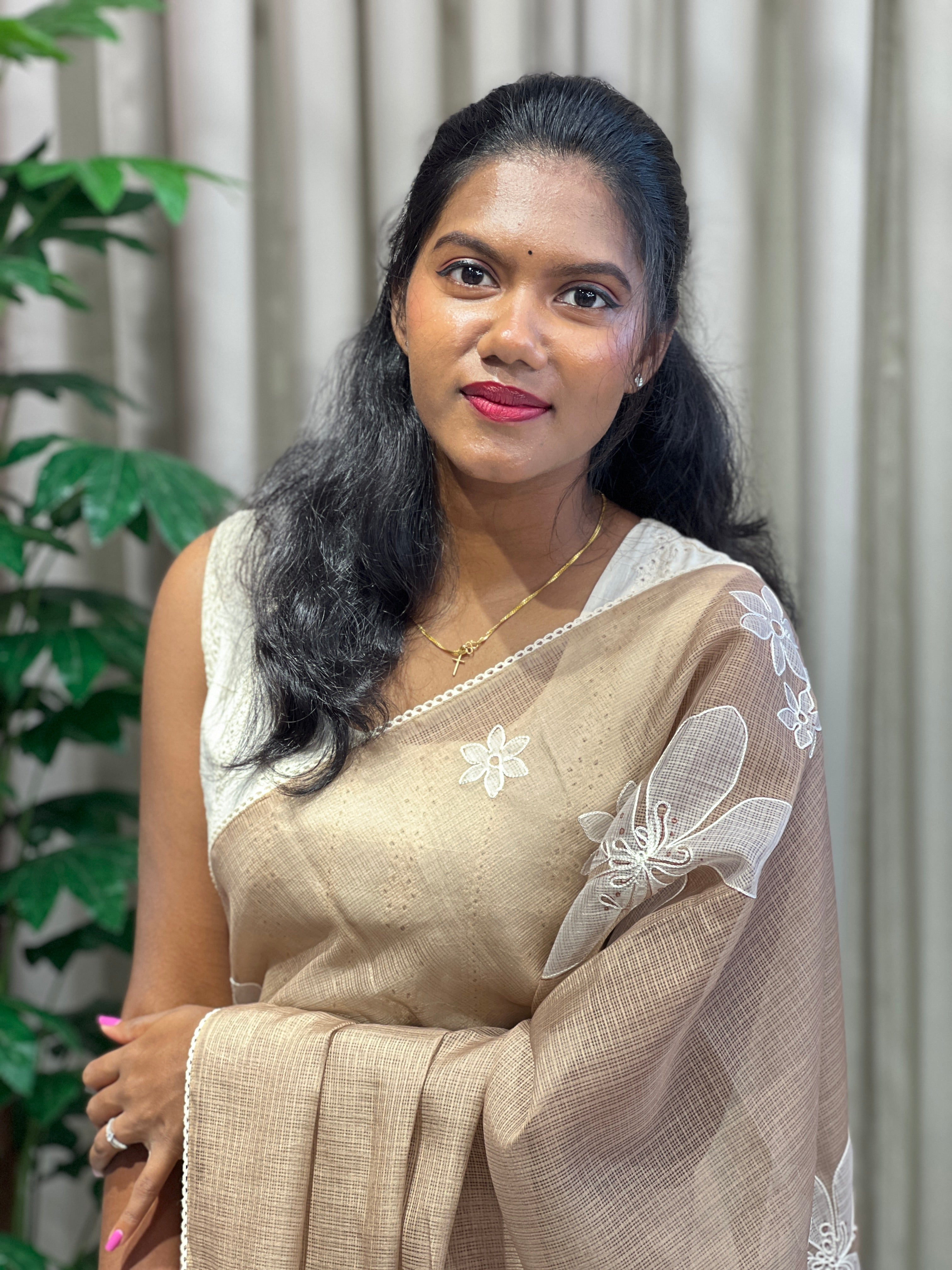 - Style: Floral Digital Print With Machine Embroidery Highlight, Crochet Lace Finished Edges