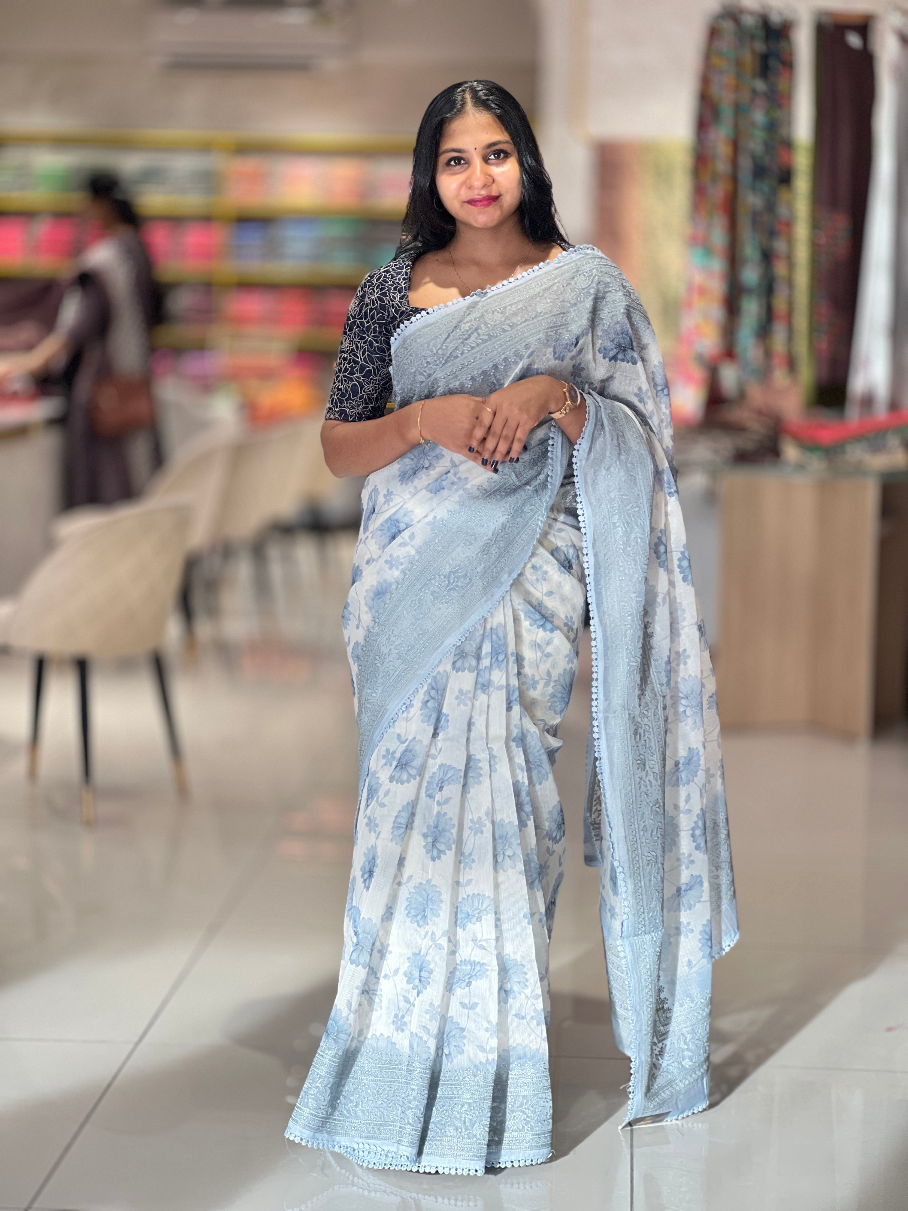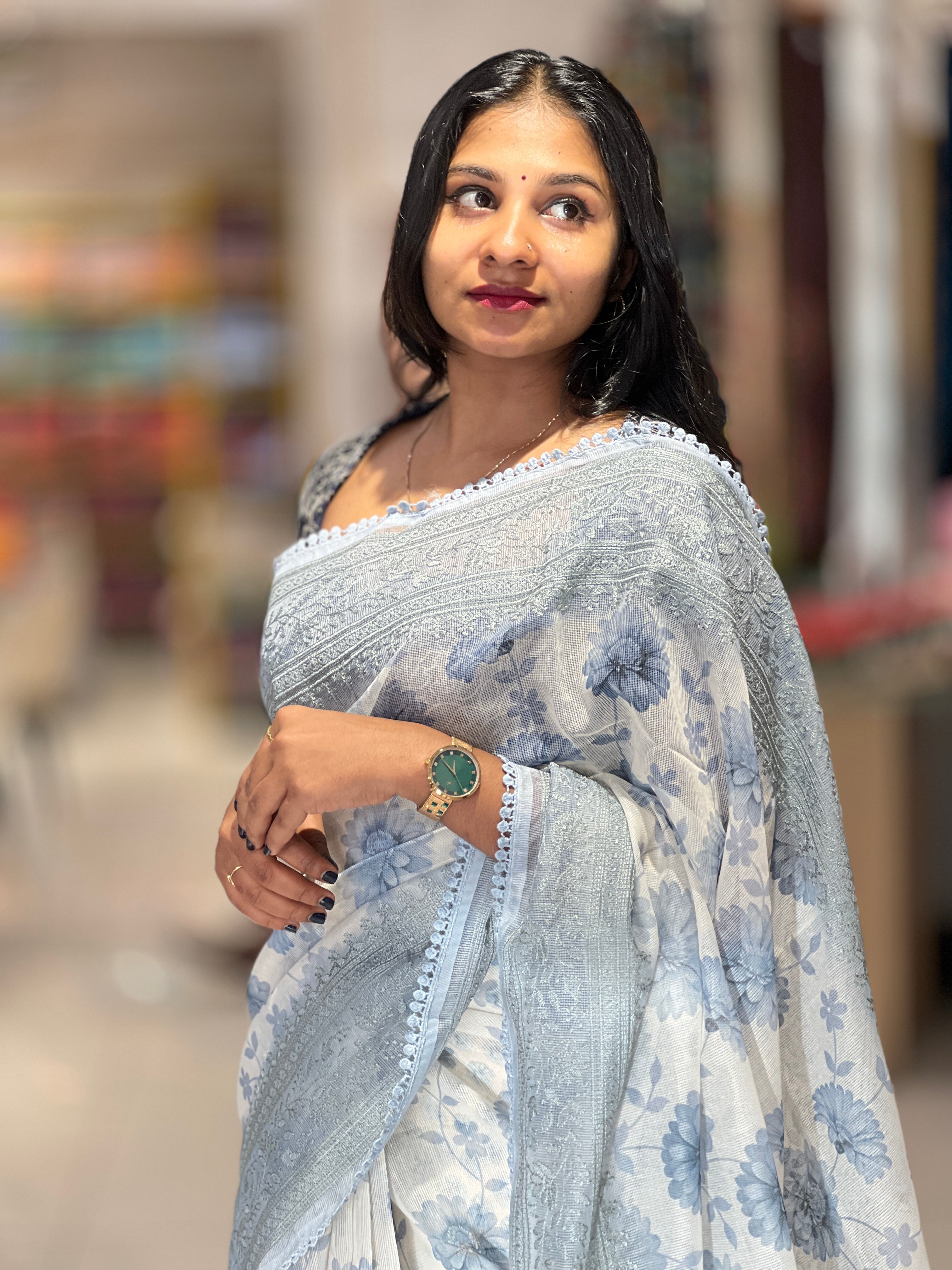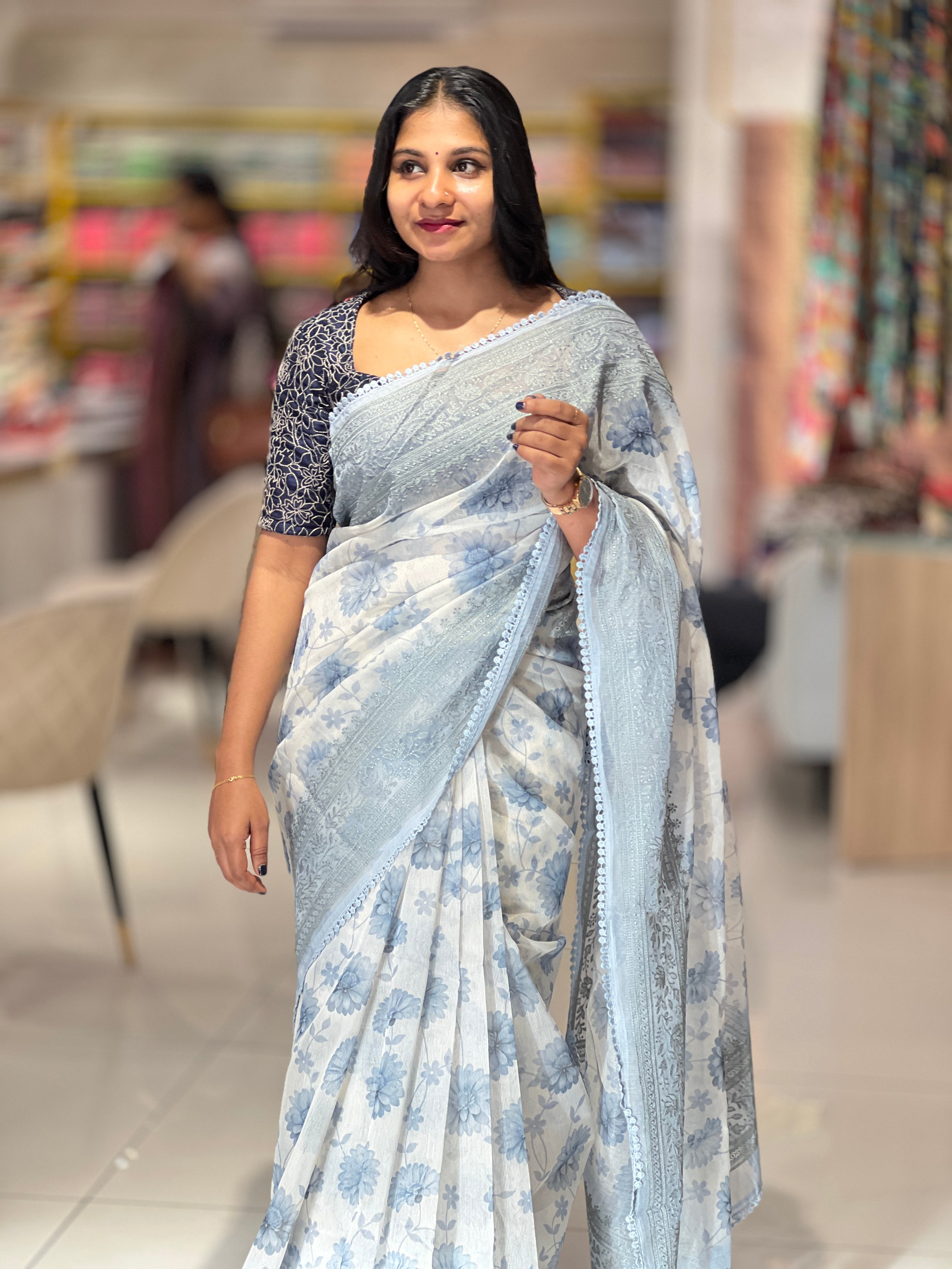 - Style: Floral Digital Print ,Lucknowi Inspired Embroidery Pattern , Lace Finished Edges