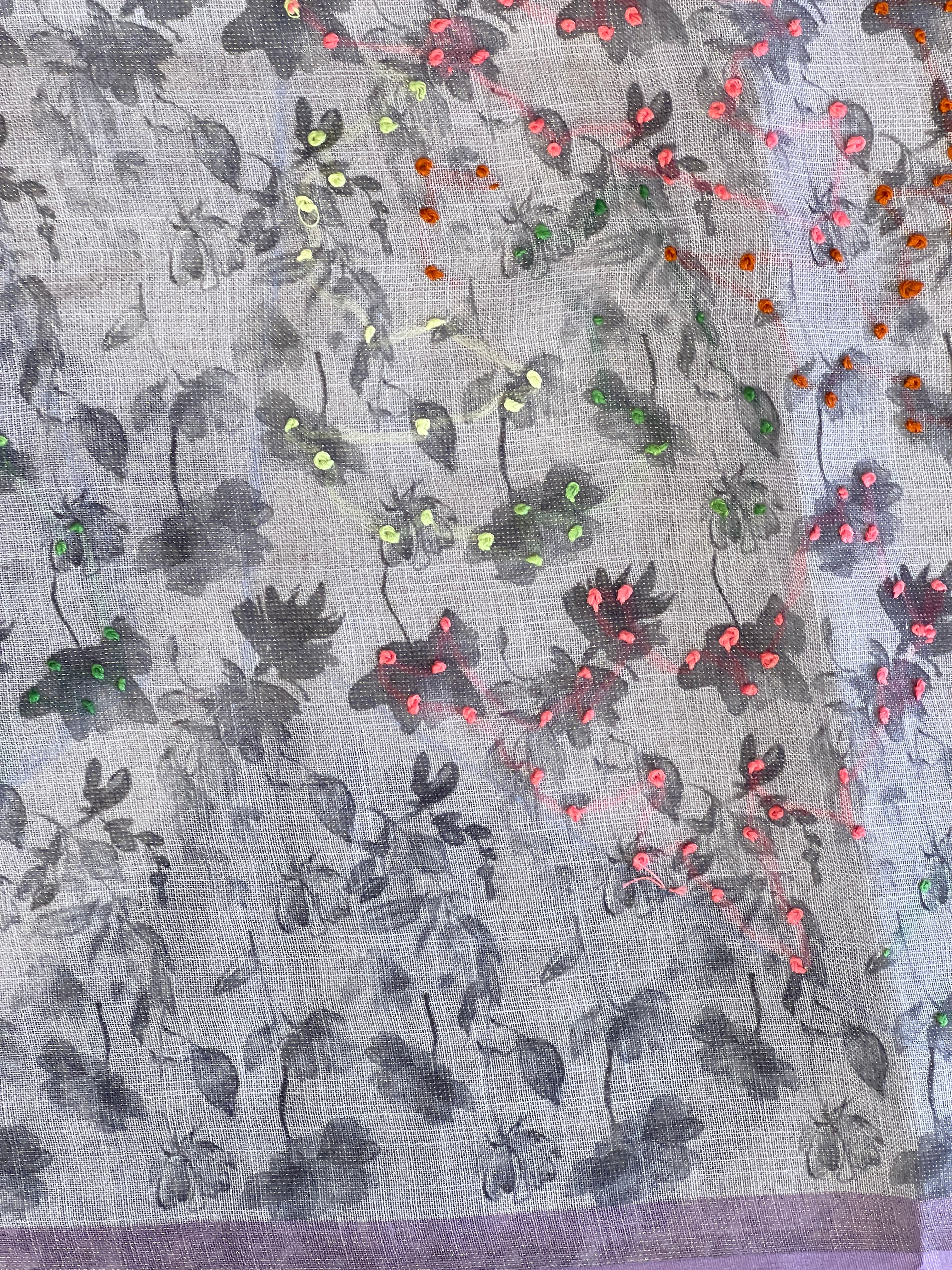 Floral Digital Printed Tissue Linen Saree | BLD1896