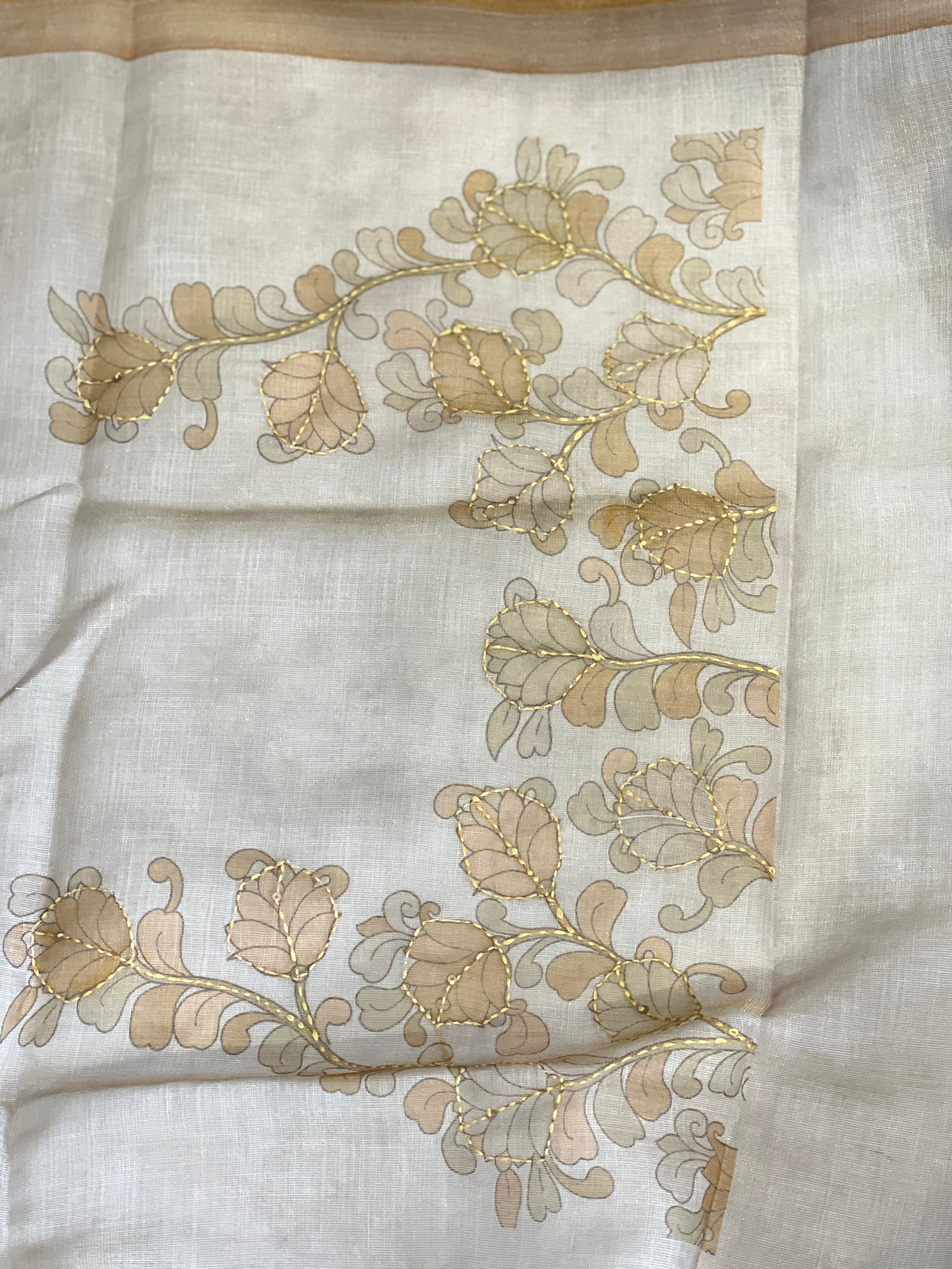 - Style: Floral Digital Printed , Kantha Weaving Pattern With Sequence Highlighted, Tassels Attached