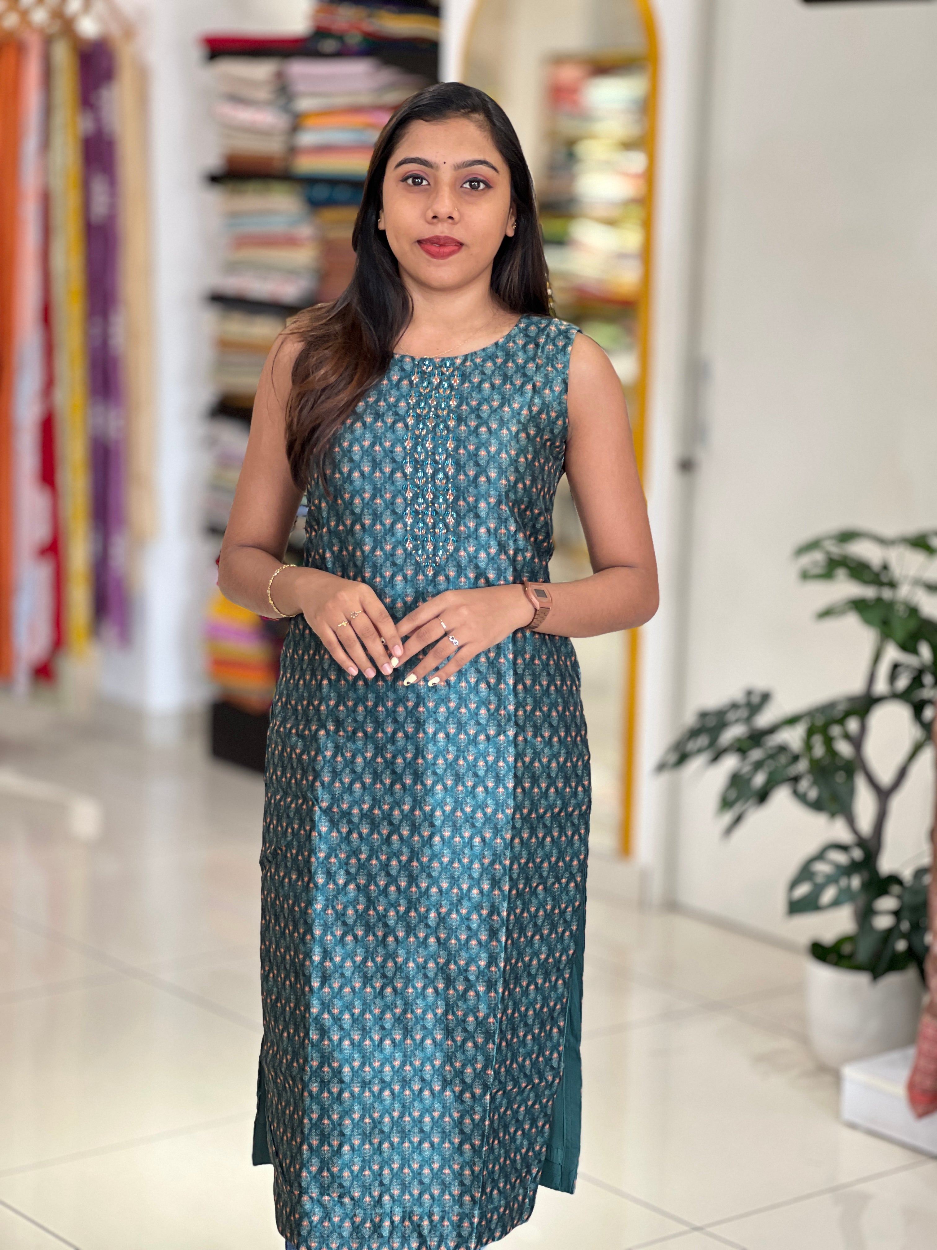 - Style: Digital Printed Floral Pattern, Hand Work Detailed Yoke Portion, Side Slit Pattern, With Lining