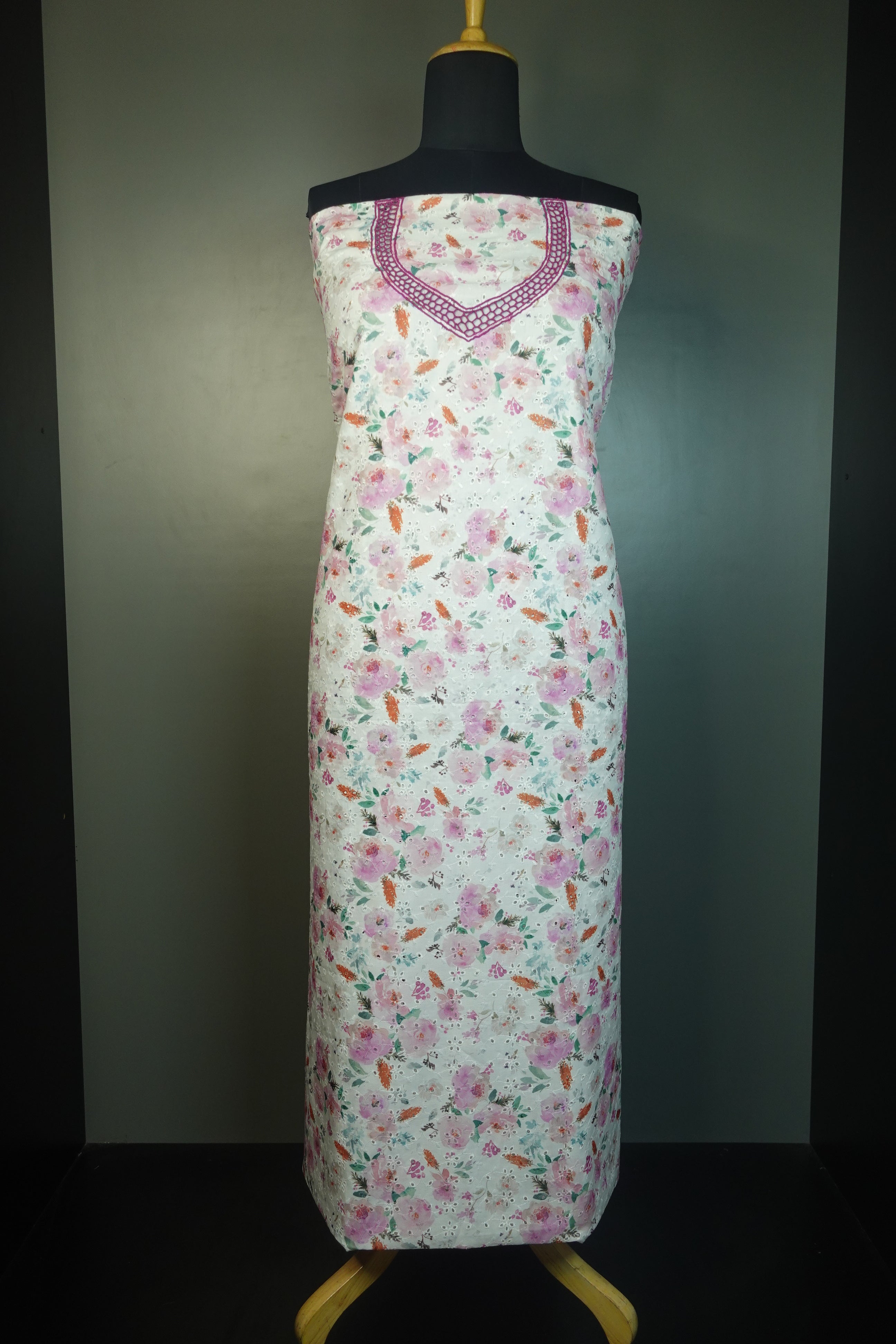 Floral Digital Printed Twine Cutwork Cotton Kurta Material | TC232