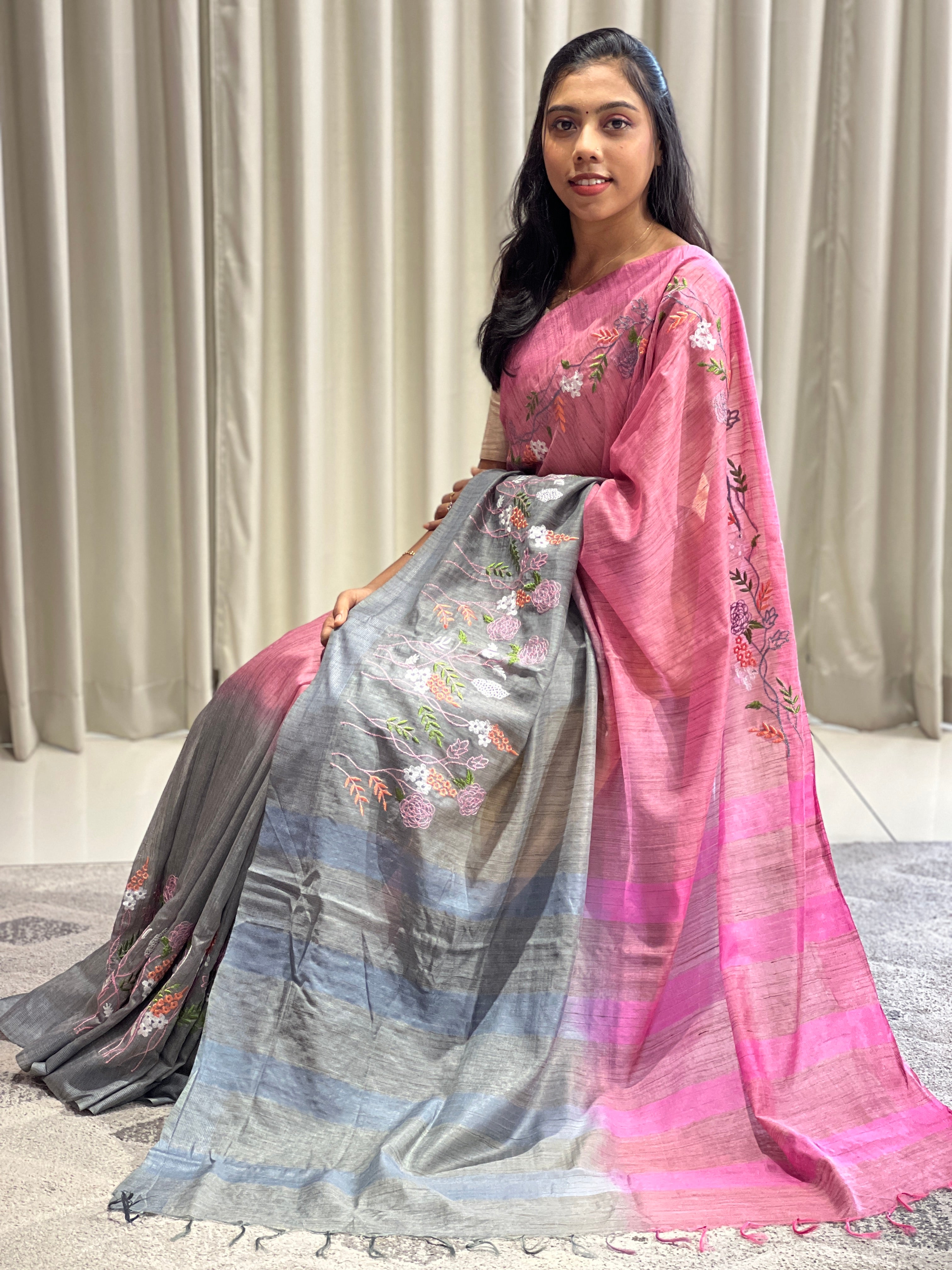 - Style: Multi - Color Floral Embroidery Detailing, Double Shaded, Stripe Patterned Pallu