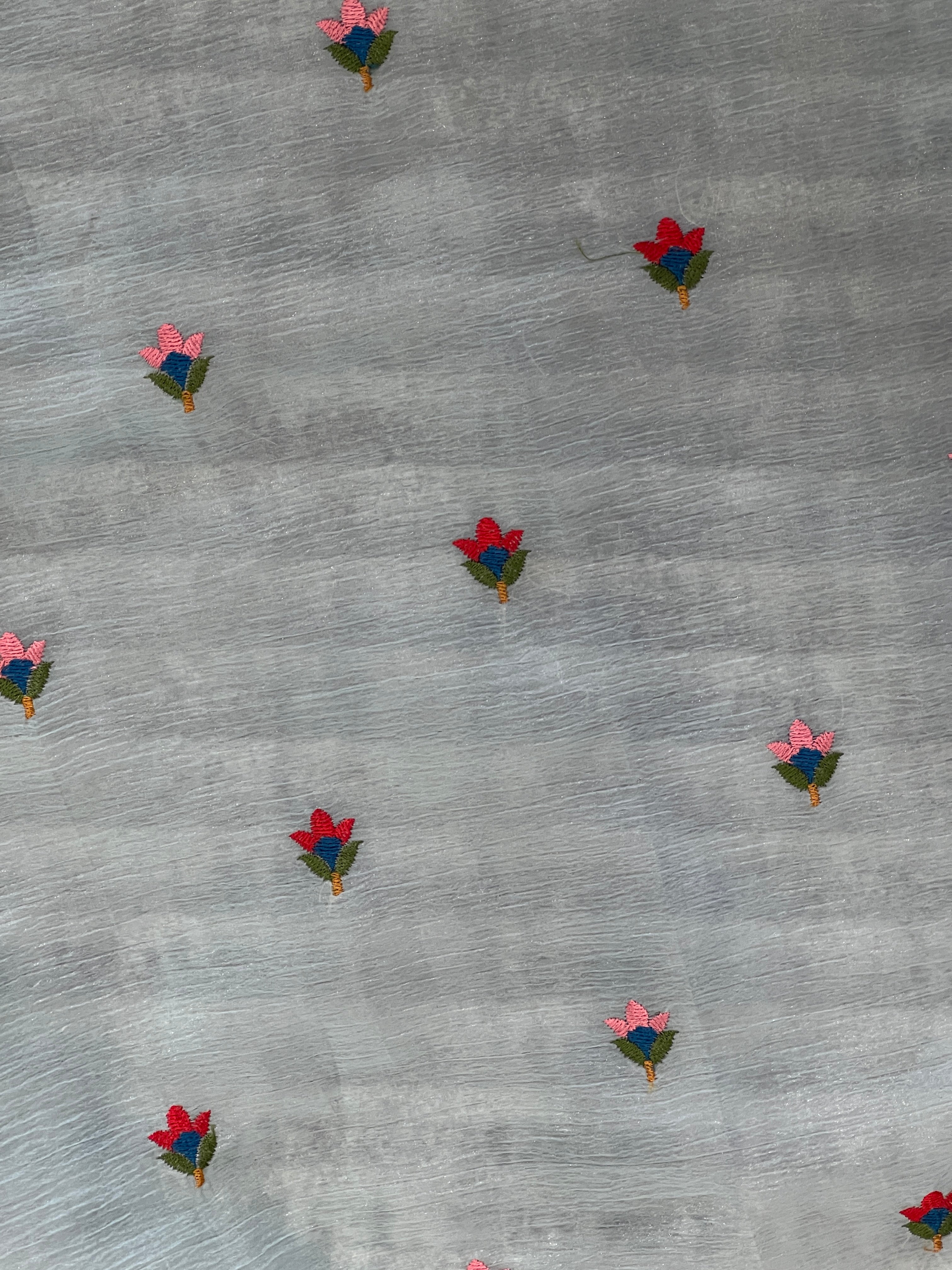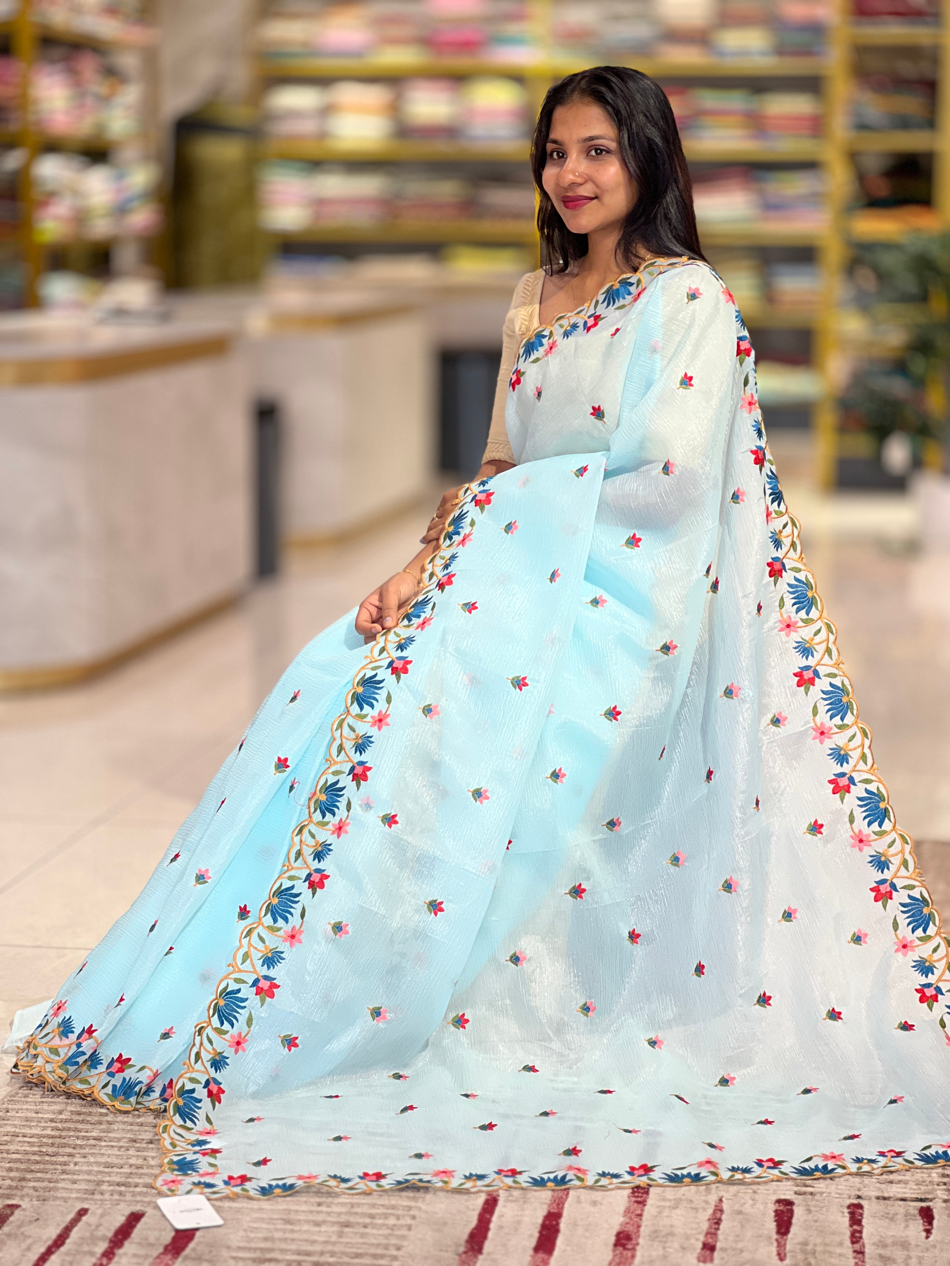 • Floral Embroidered Crushed Tissue Organza Saree | RP611