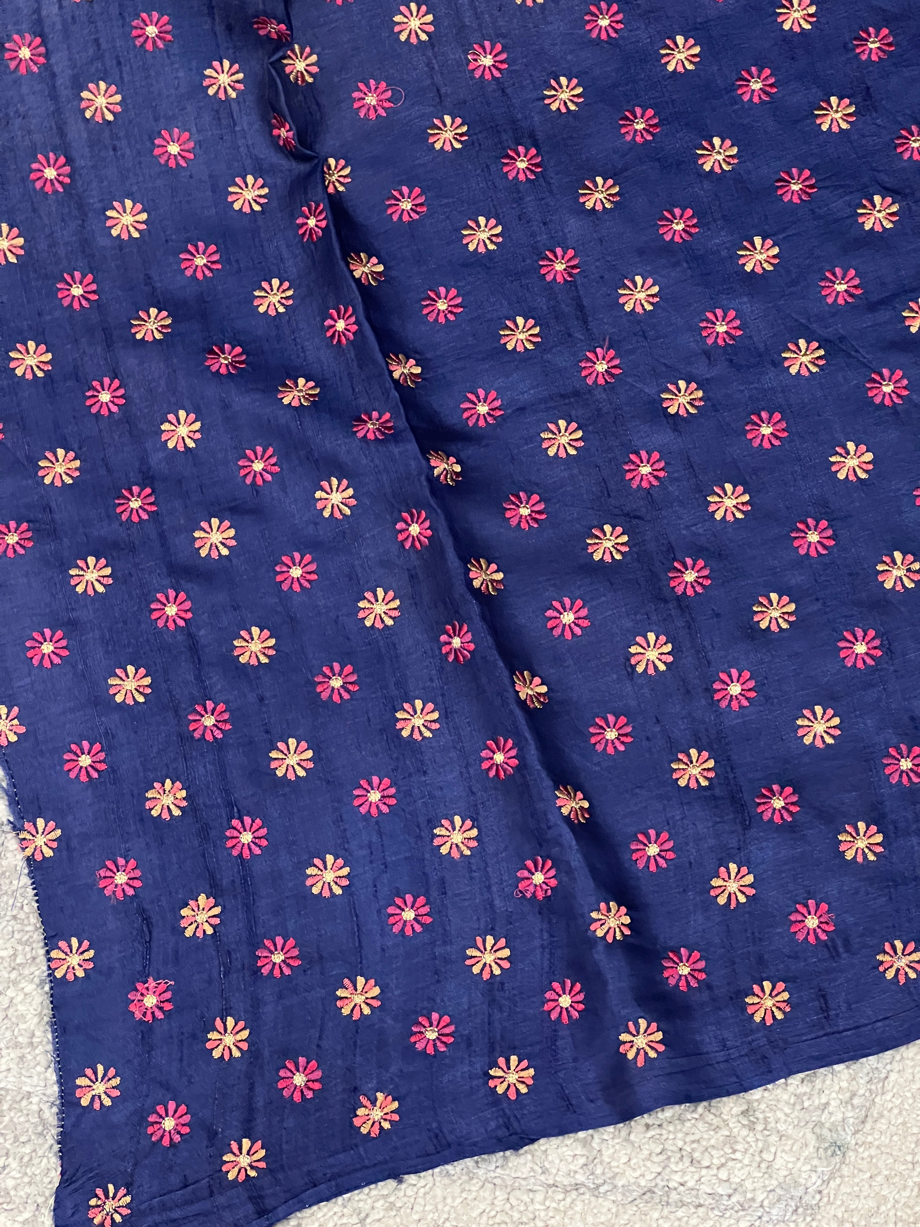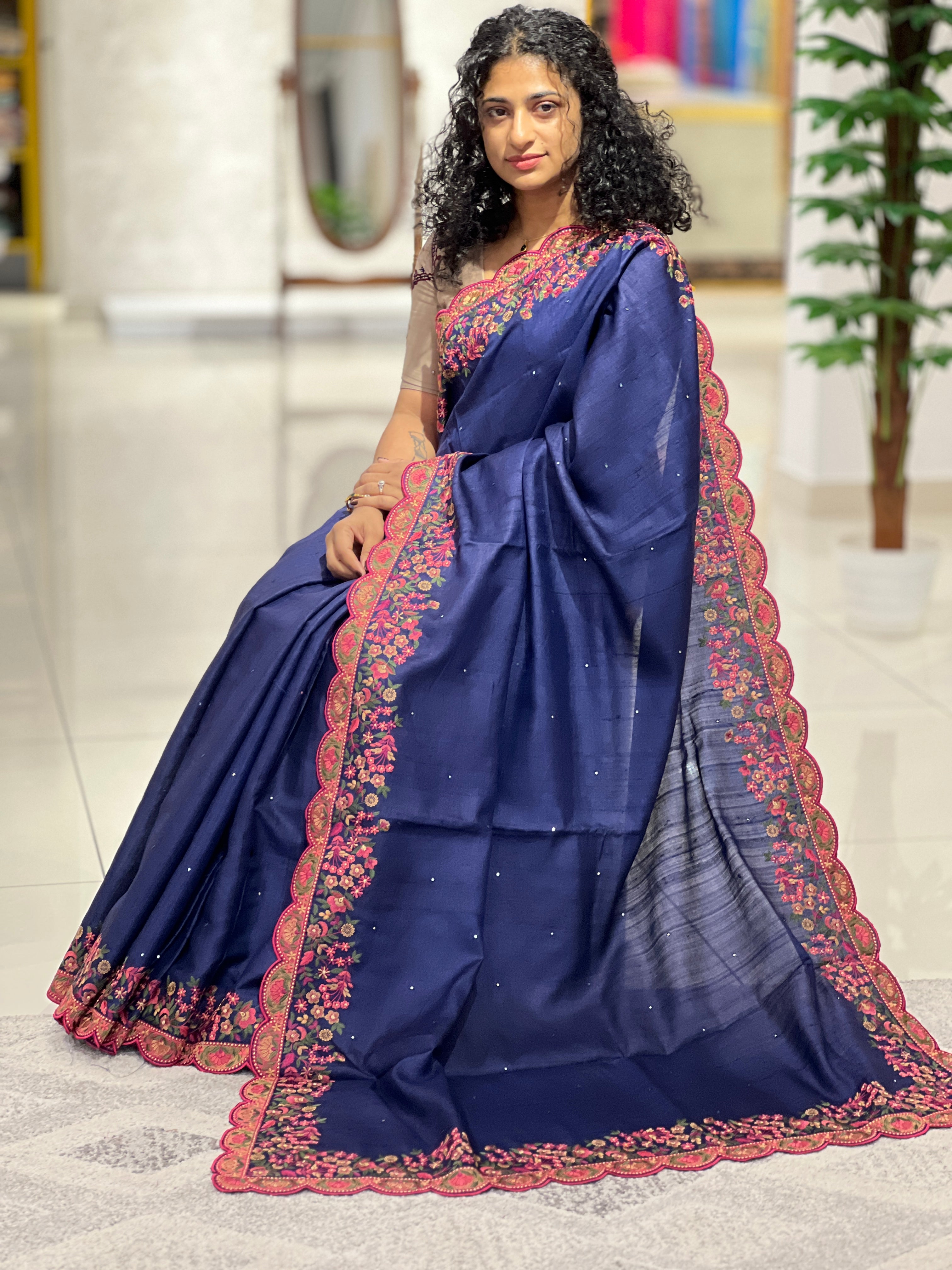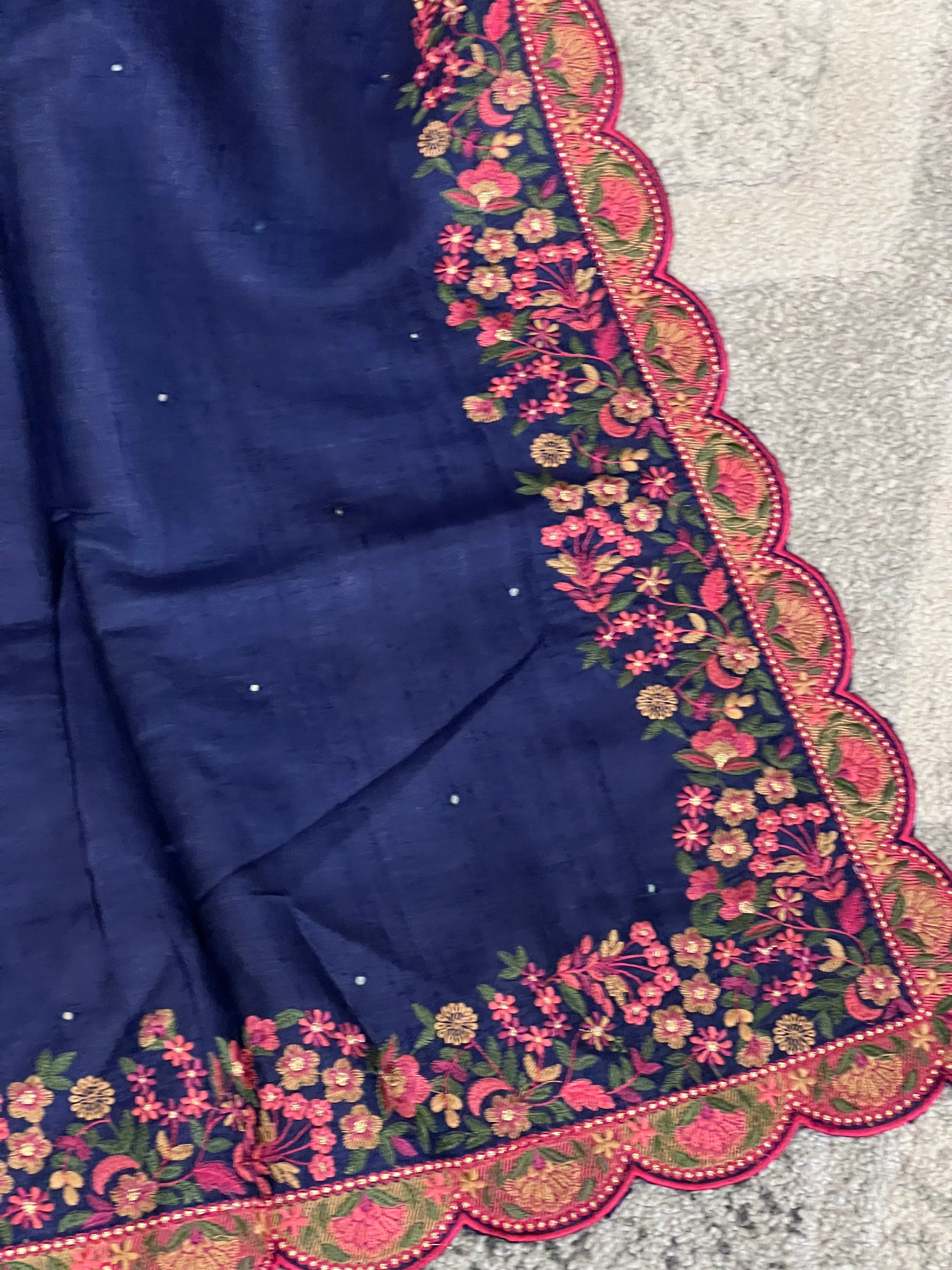 - Style: Floral Embroidery Borders, Scallop Edges, Scattered Mirror Work Detailing
