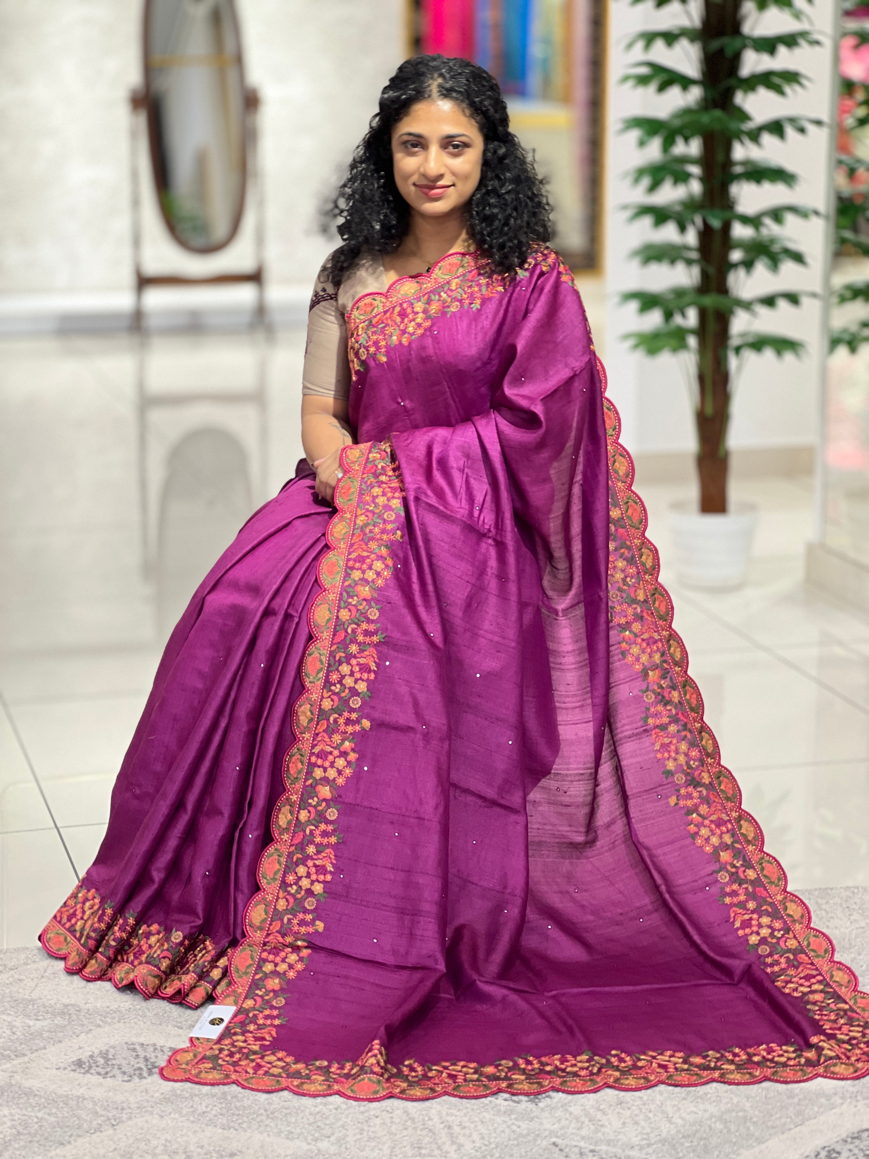 Floral Embroidered Desi Tussar Saree | RGD364 Floral Embroidered Desi Tussar Saree | RGD364 Floral Embroidered Desi Tussar Saree | RGD364