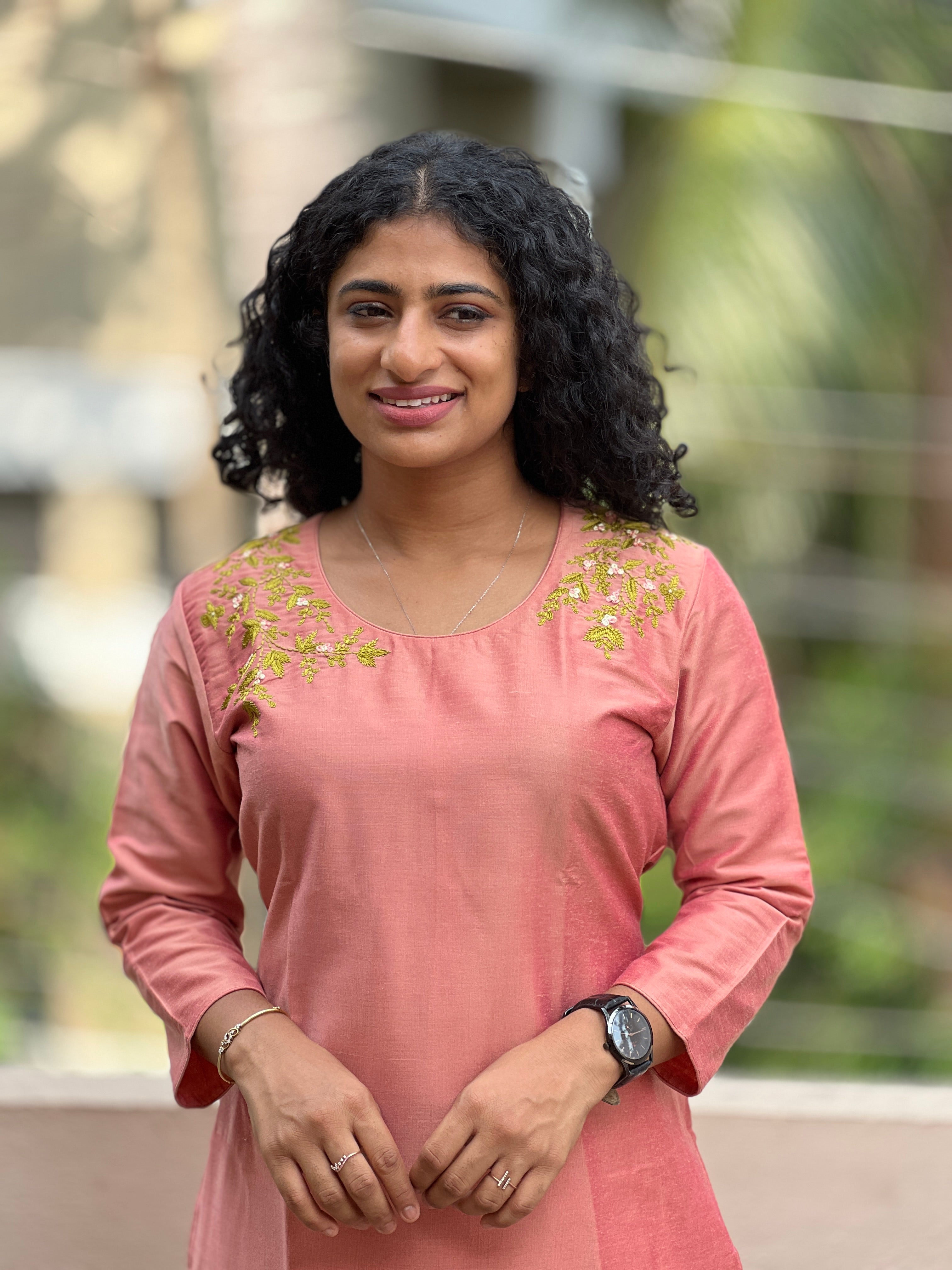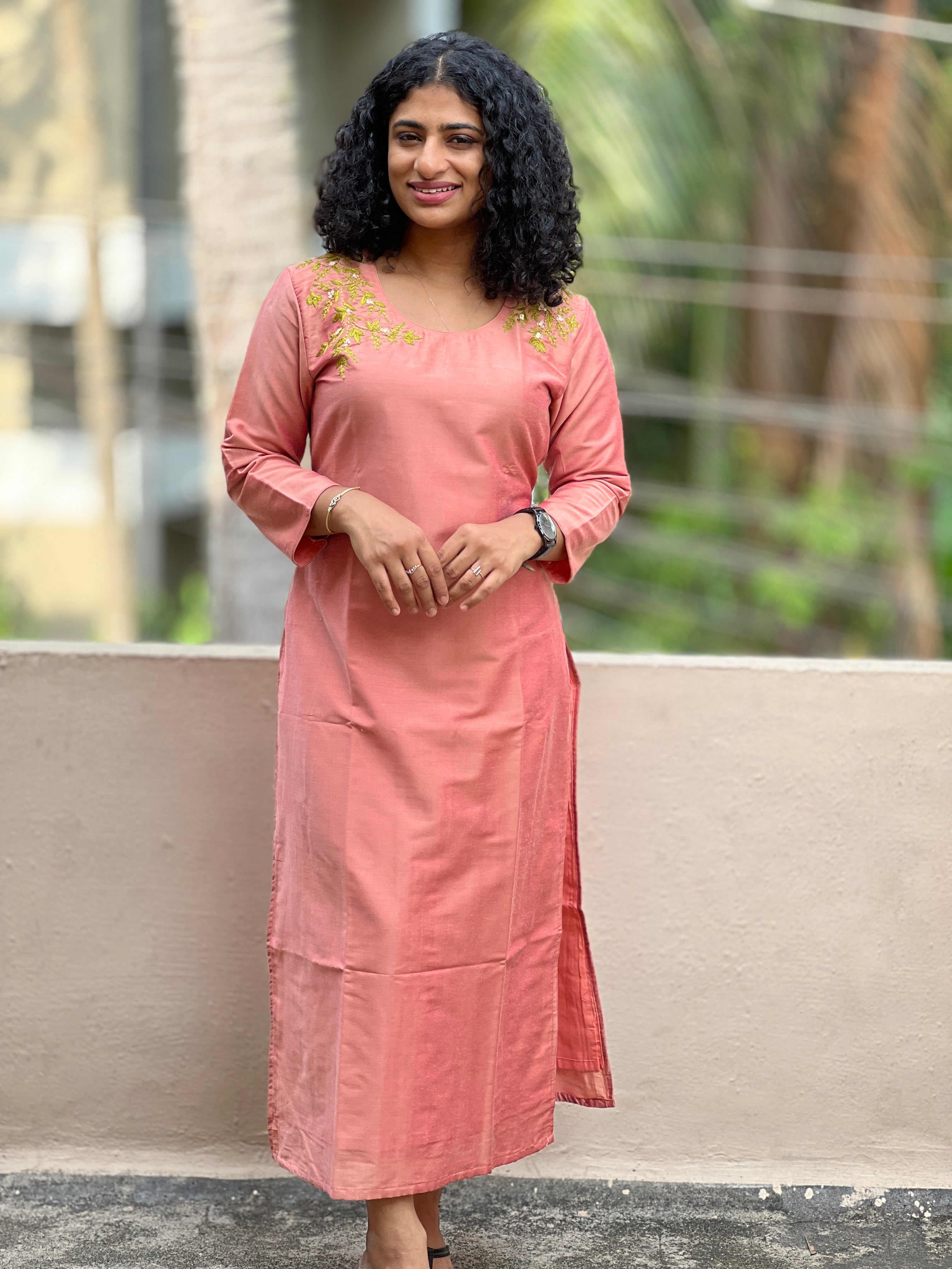 - Style- Floral Embroidered Neck Patterned