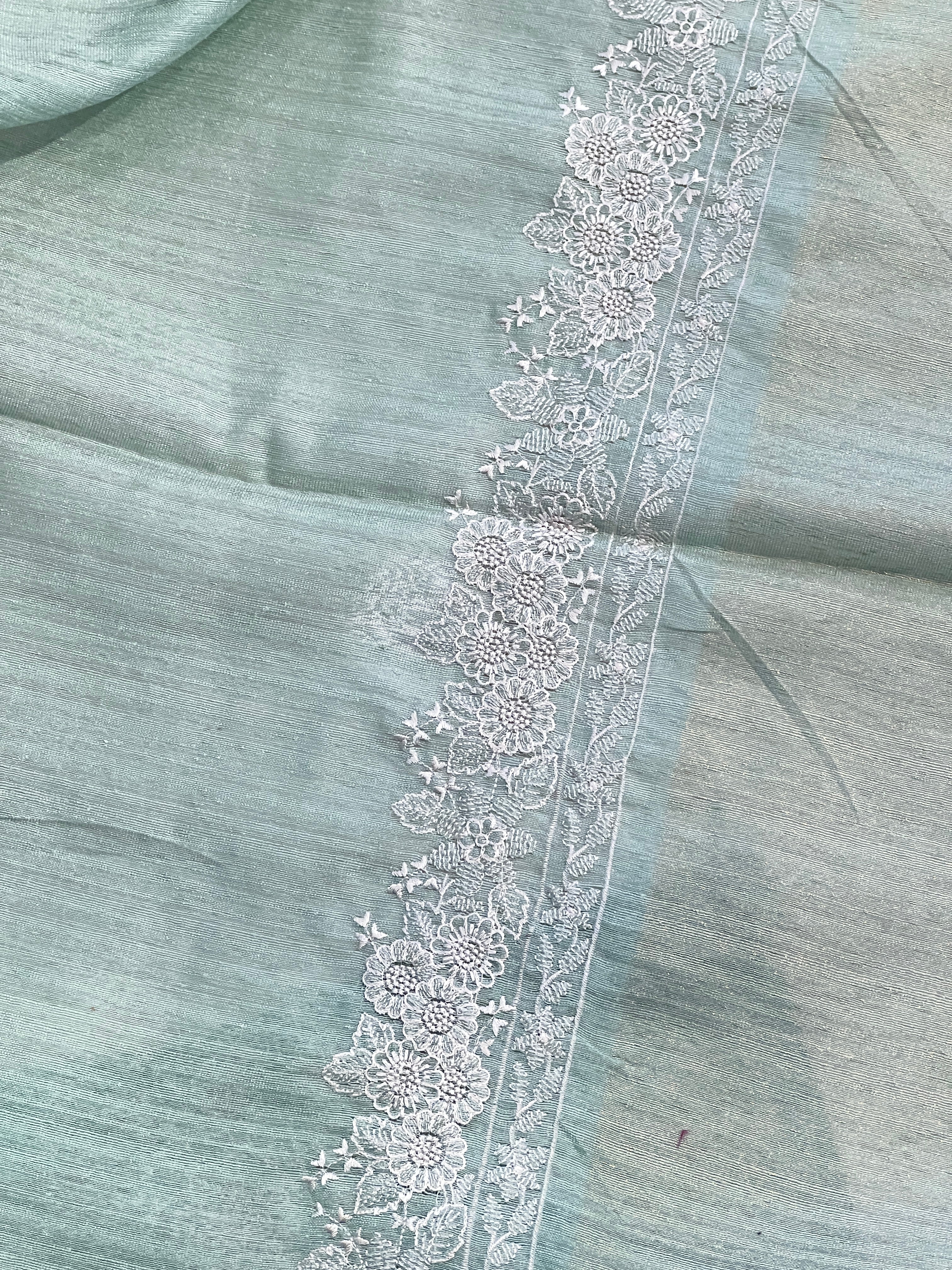 - Style: Floral Embroidery Pattern, Tissue Weaving Border Detailing