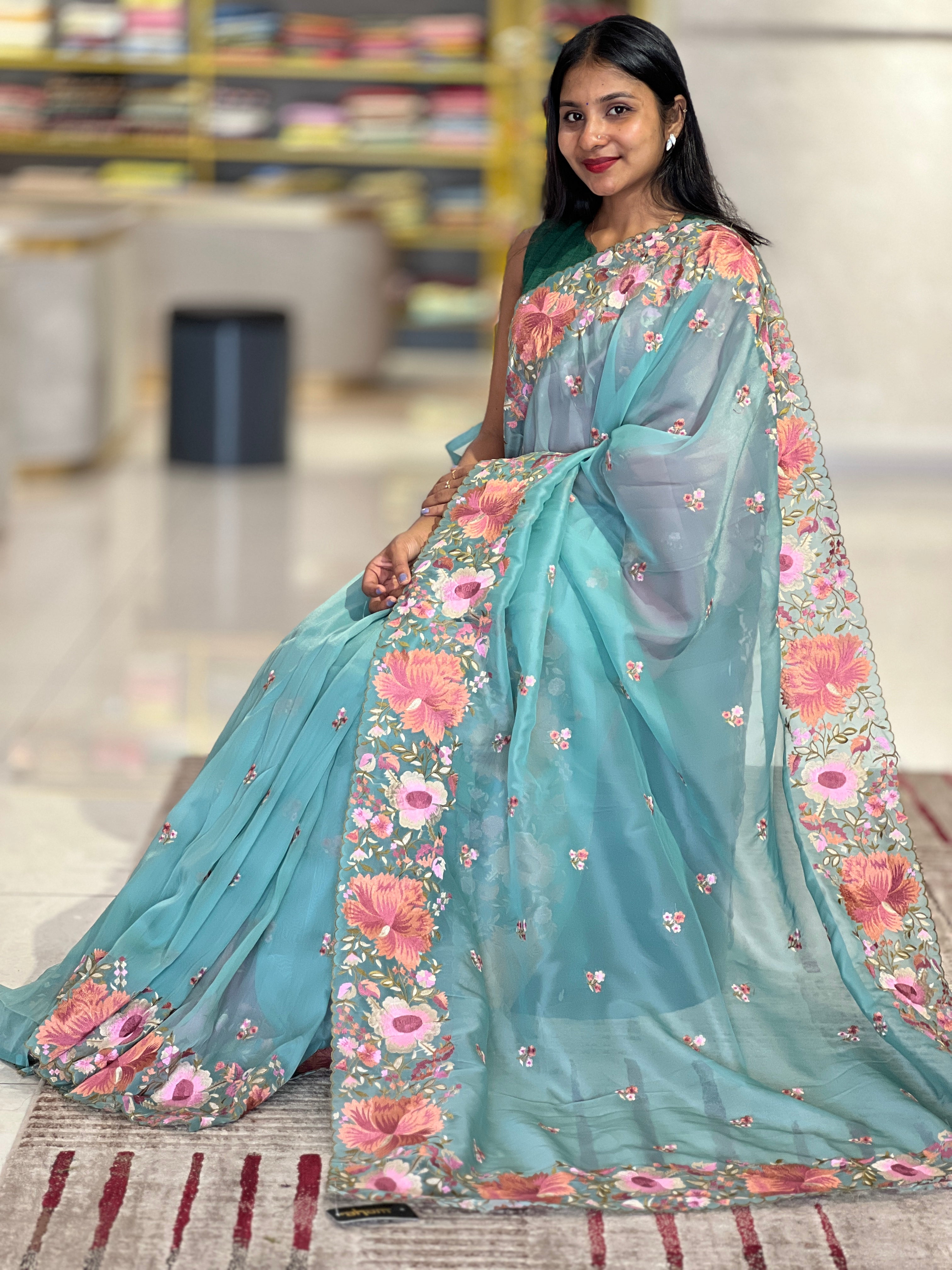 Floral Embroidered Organza Saree | RP608 Floral Embroidered Organza Saree | RP608