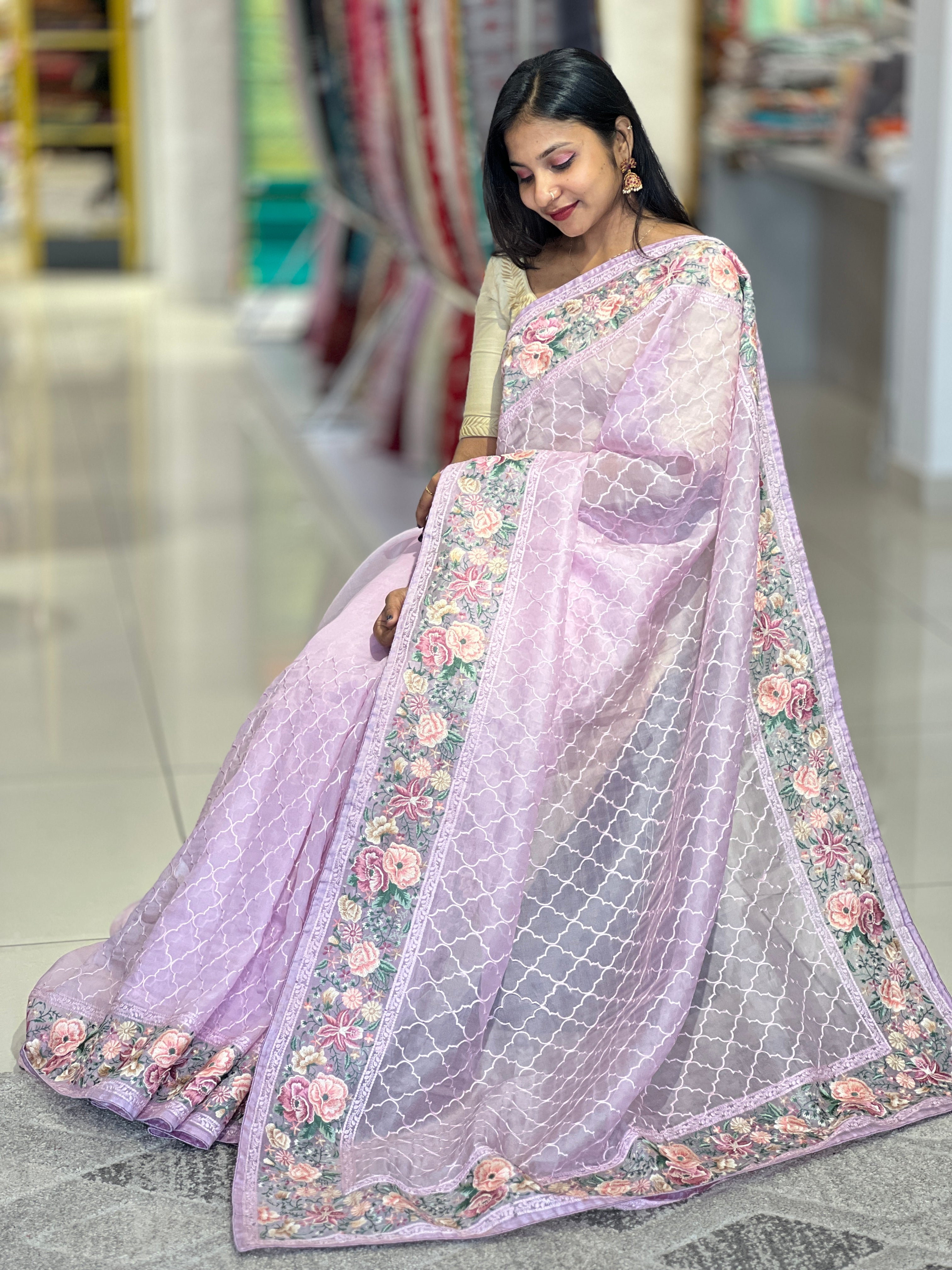 - Style: Machine Embroidery, Self Color Embroiderey Detailing, Multi-Color Floral Embroidered Borders