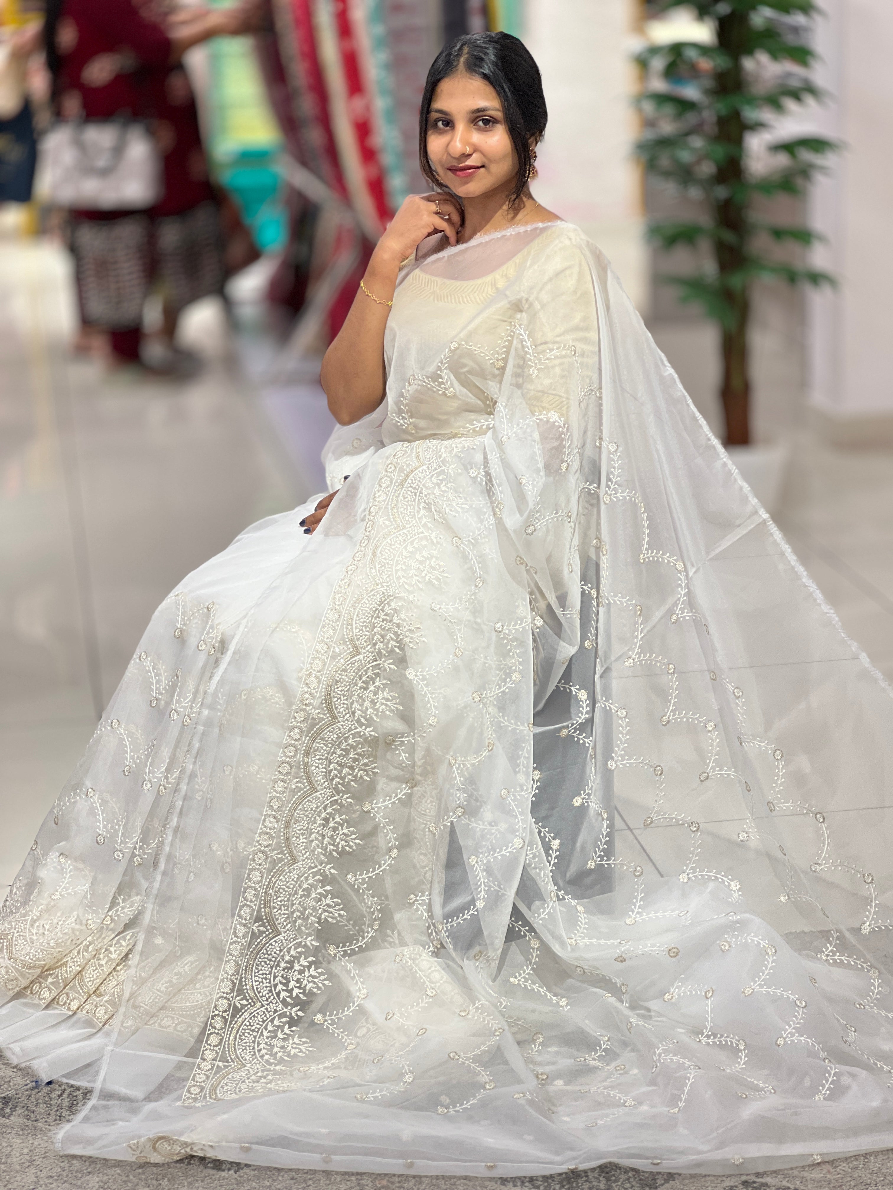 - Style: Machine Embroidery Detailing, With Golden Stone Sticky Highlight