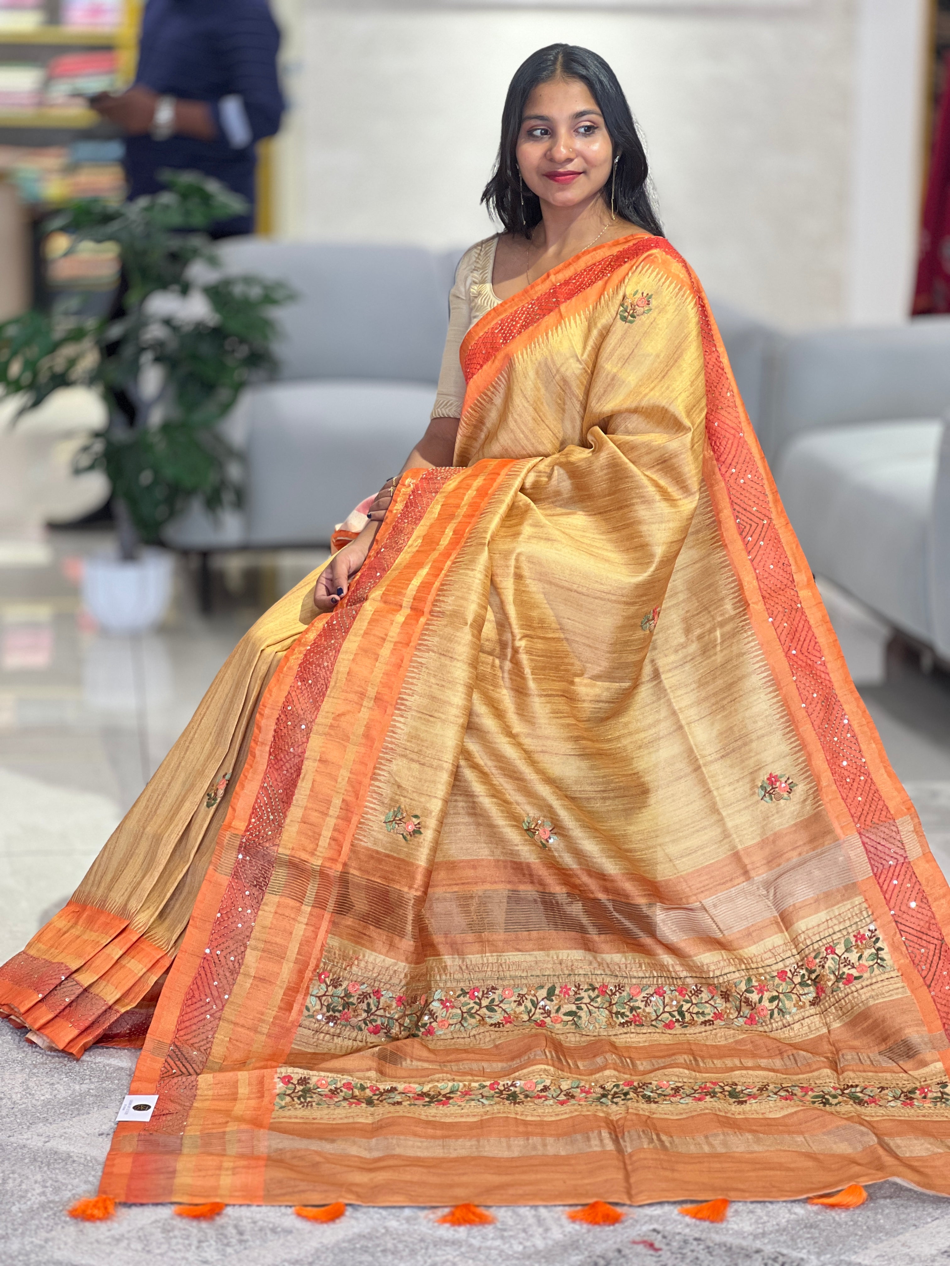 • Fabric: Semi Silk (Tussar Finish)