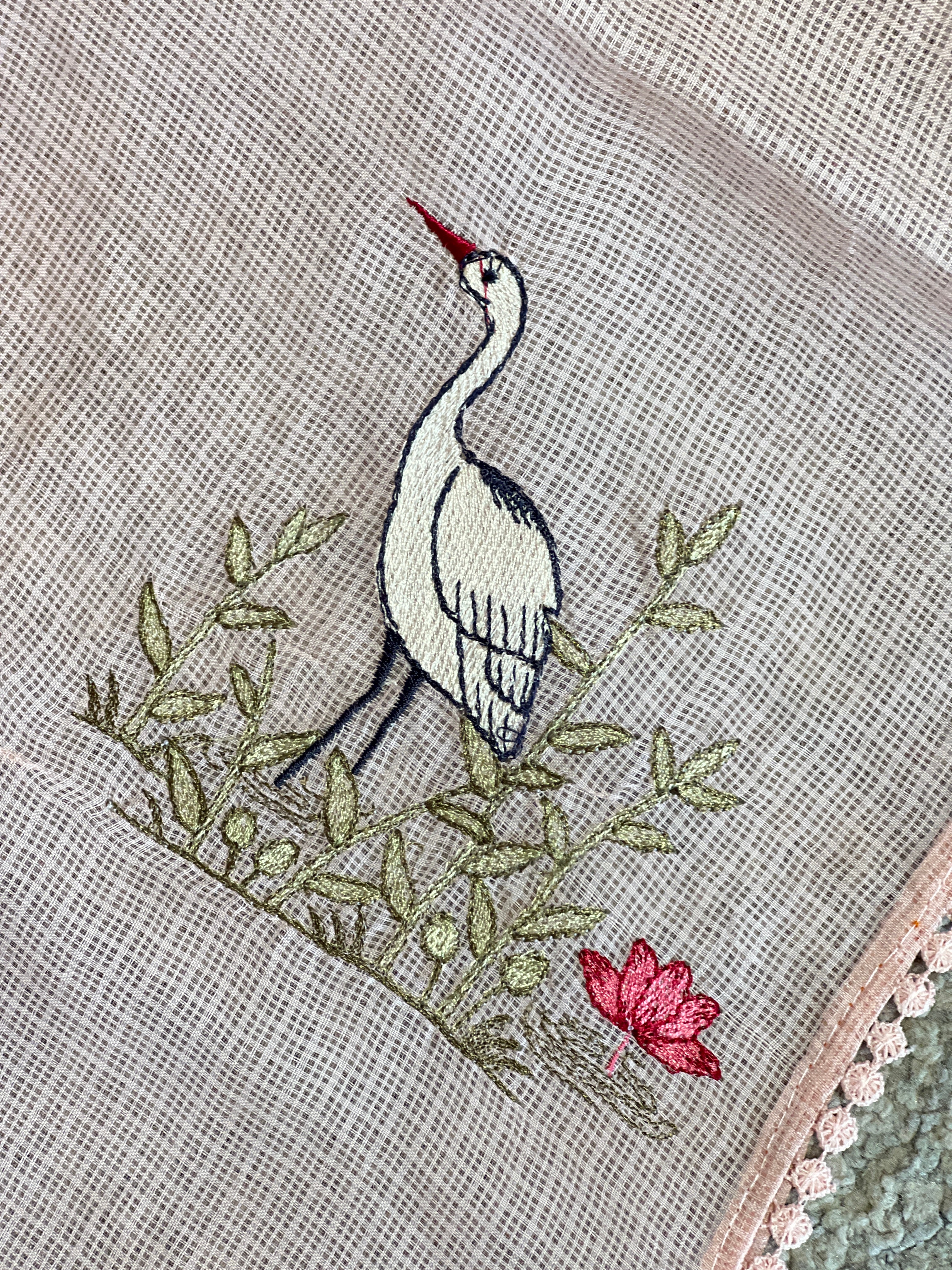 • Style: Scattered Floral & Bird Embroidery Detailing, Lace Finished Edges