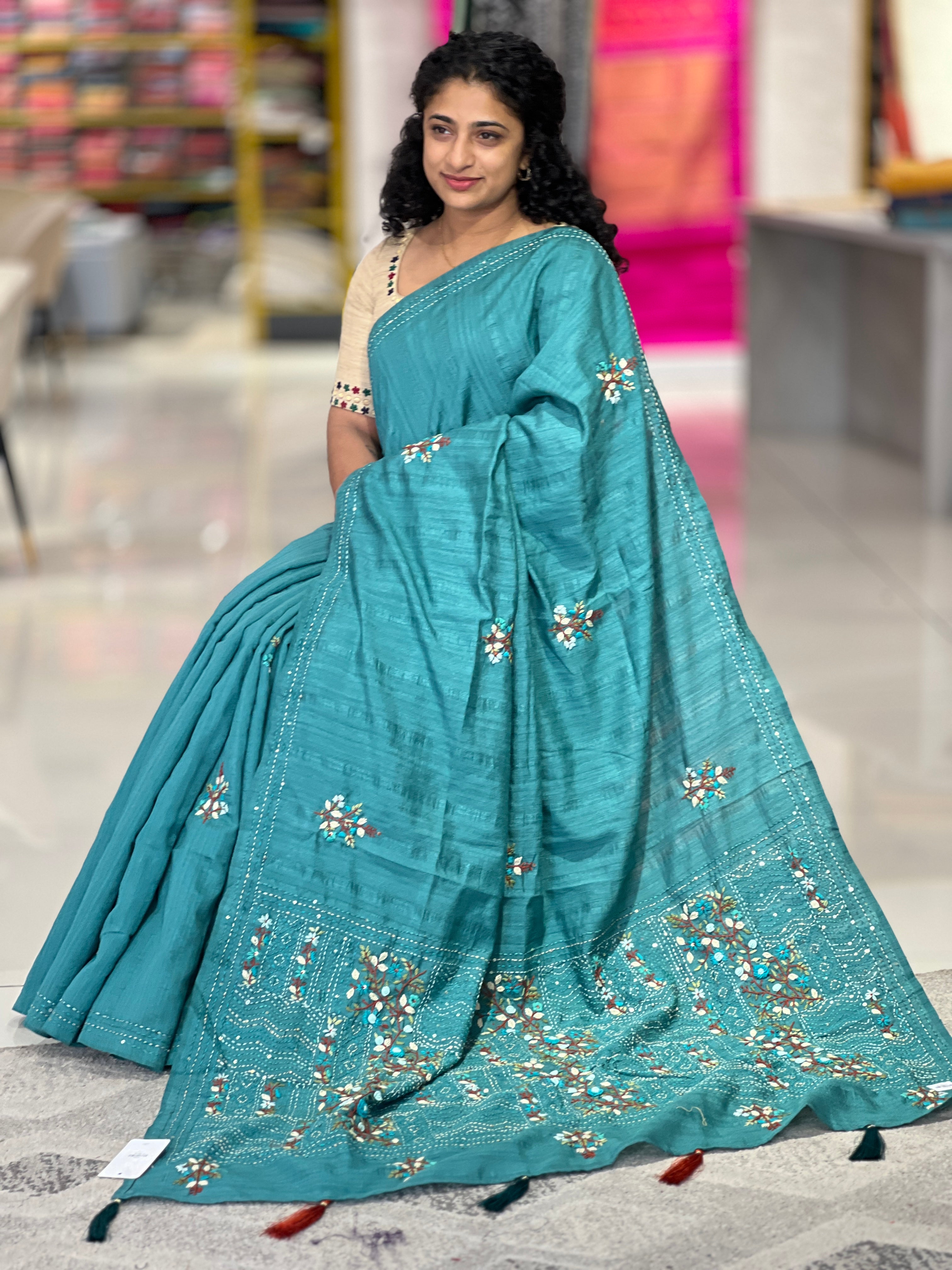 • Floral Embroidered Tussar Finish Saree | RP694
