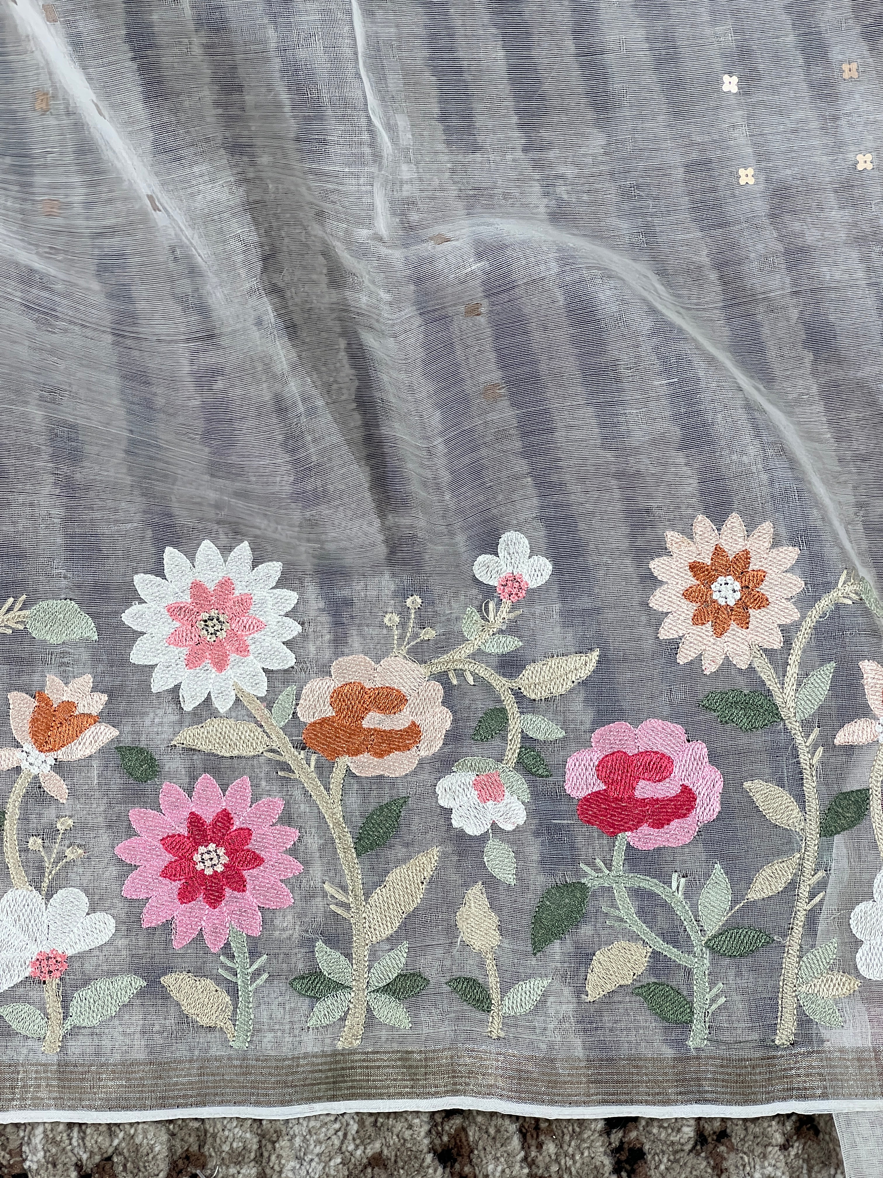 - Style: Sequence Weaving Pattern, Sliver And Golden Zari Border, Embroidery