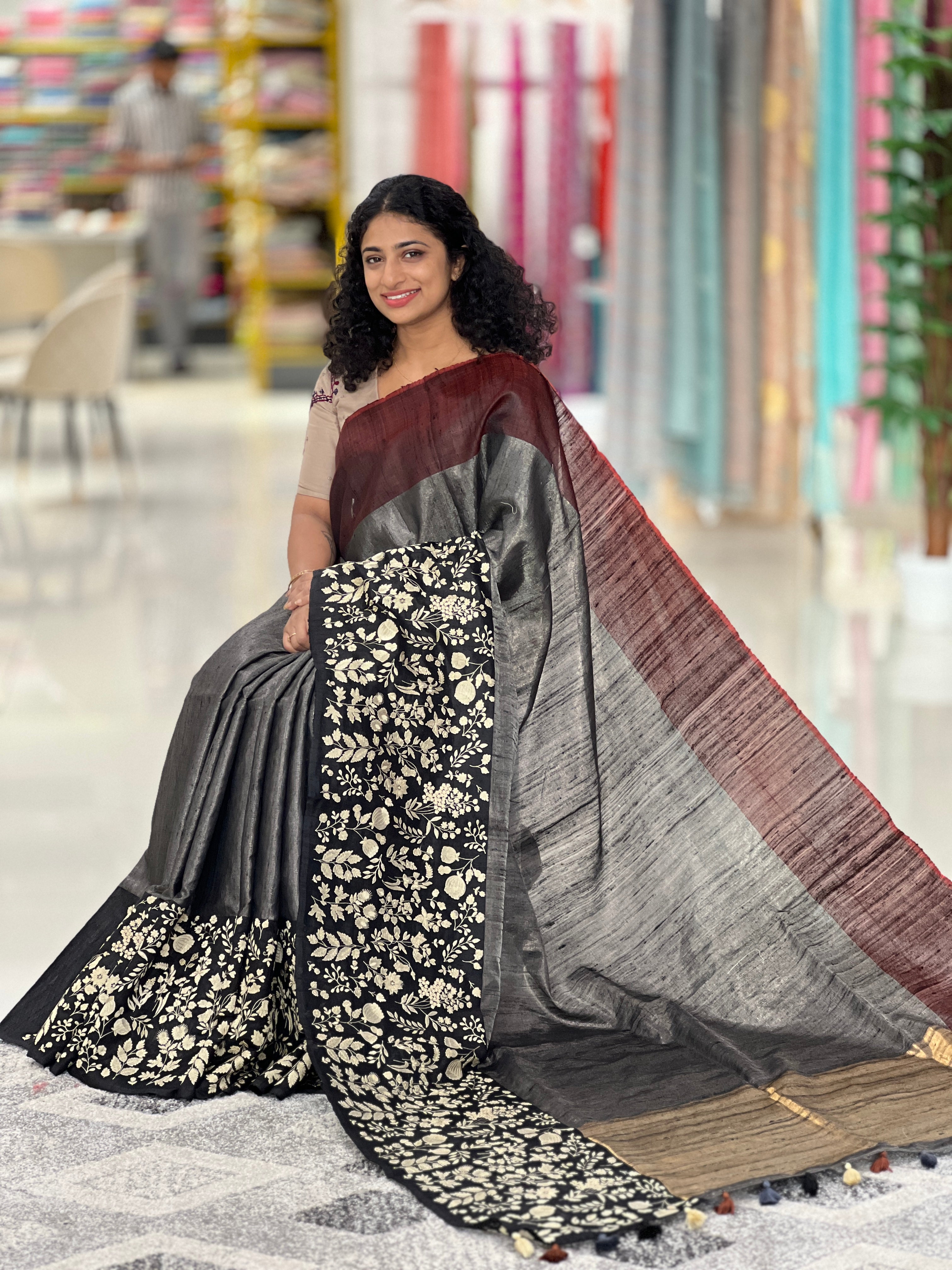 - Style: Tissue Weaving, Floral Embroidered Lower Border, Zari Weaved Pallu, Tassels Attached
