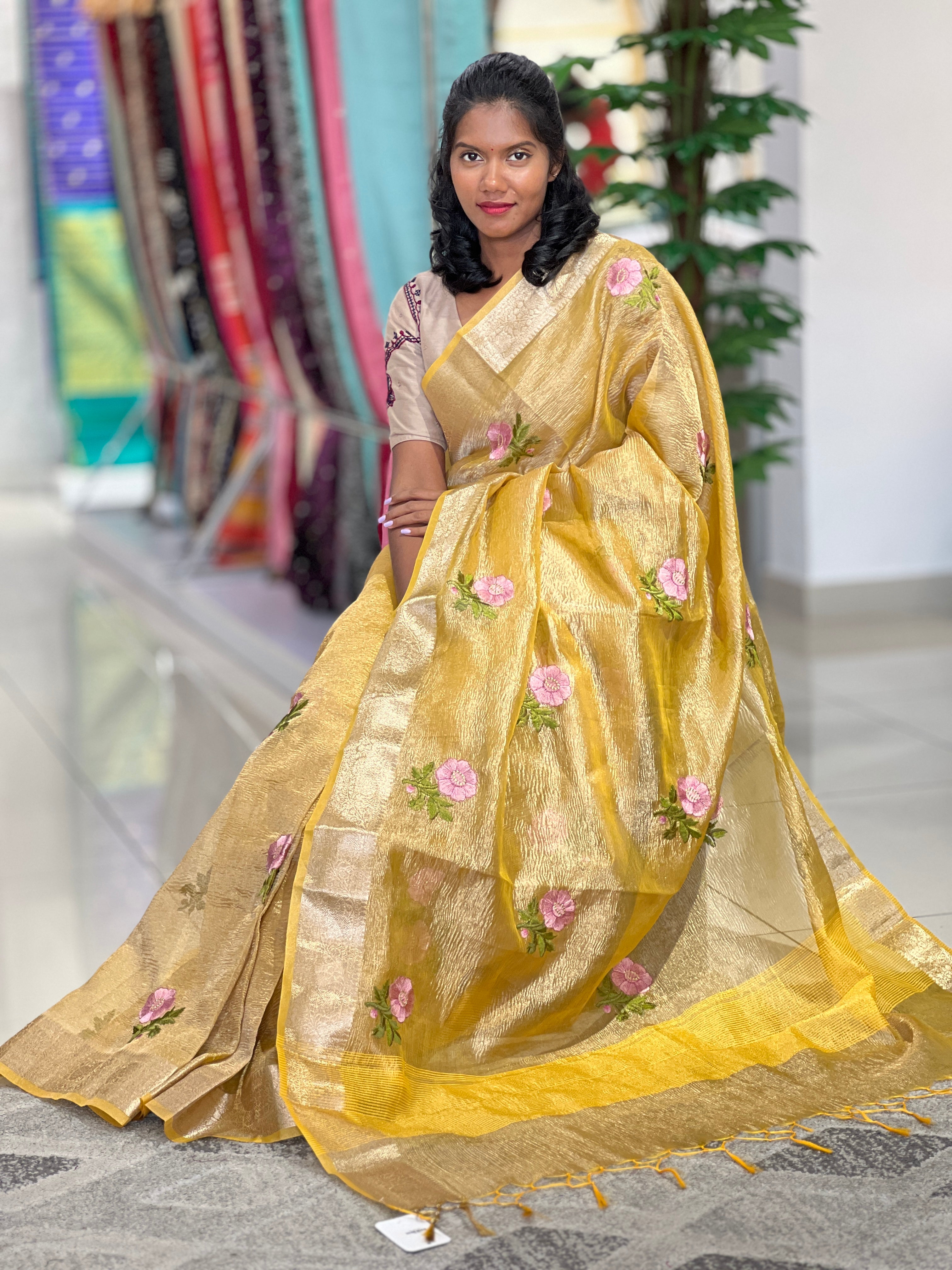 • Floral Embroidery Crush Tissue Saree | RP722