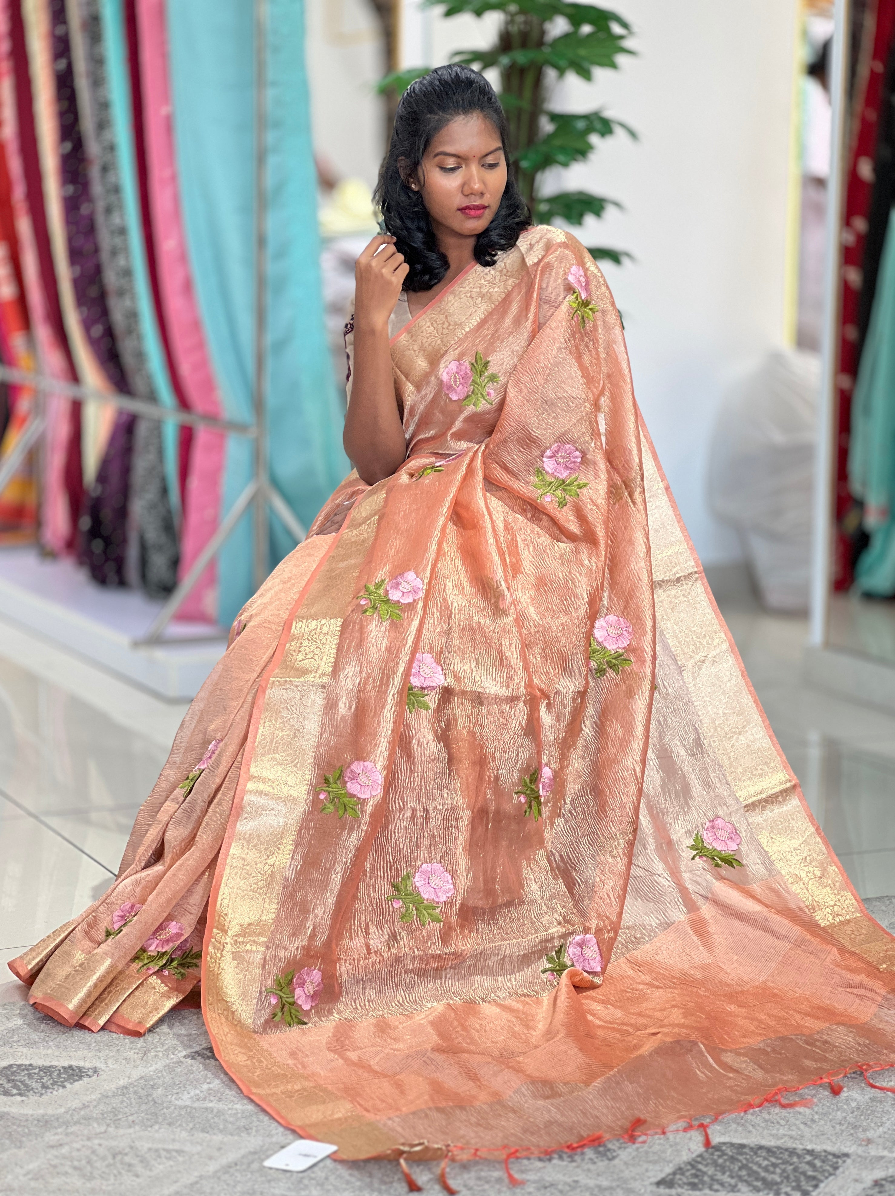 • Floral Embroidery Crush Tissue Saree | RP725