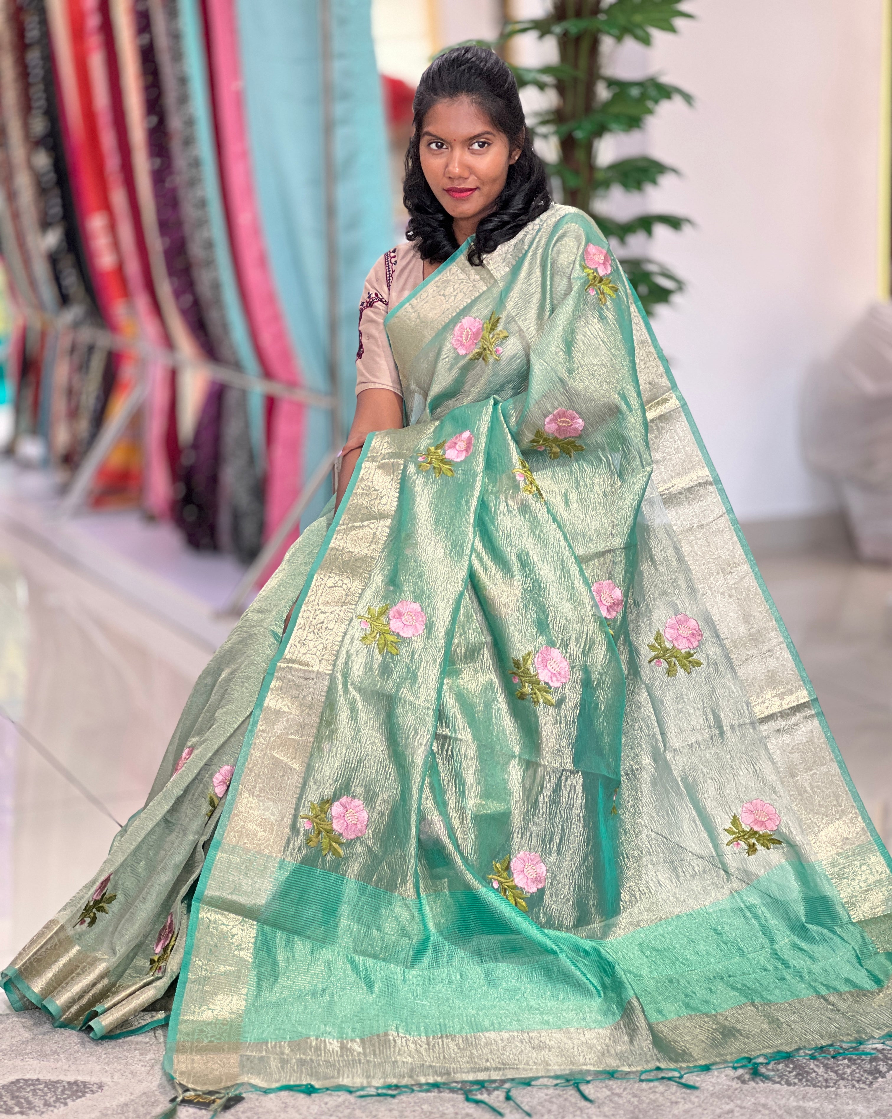 Floral Embroidery Crush Tissue Saree | RP727 Floral Embroidery Crush Tissue Saree | RP727