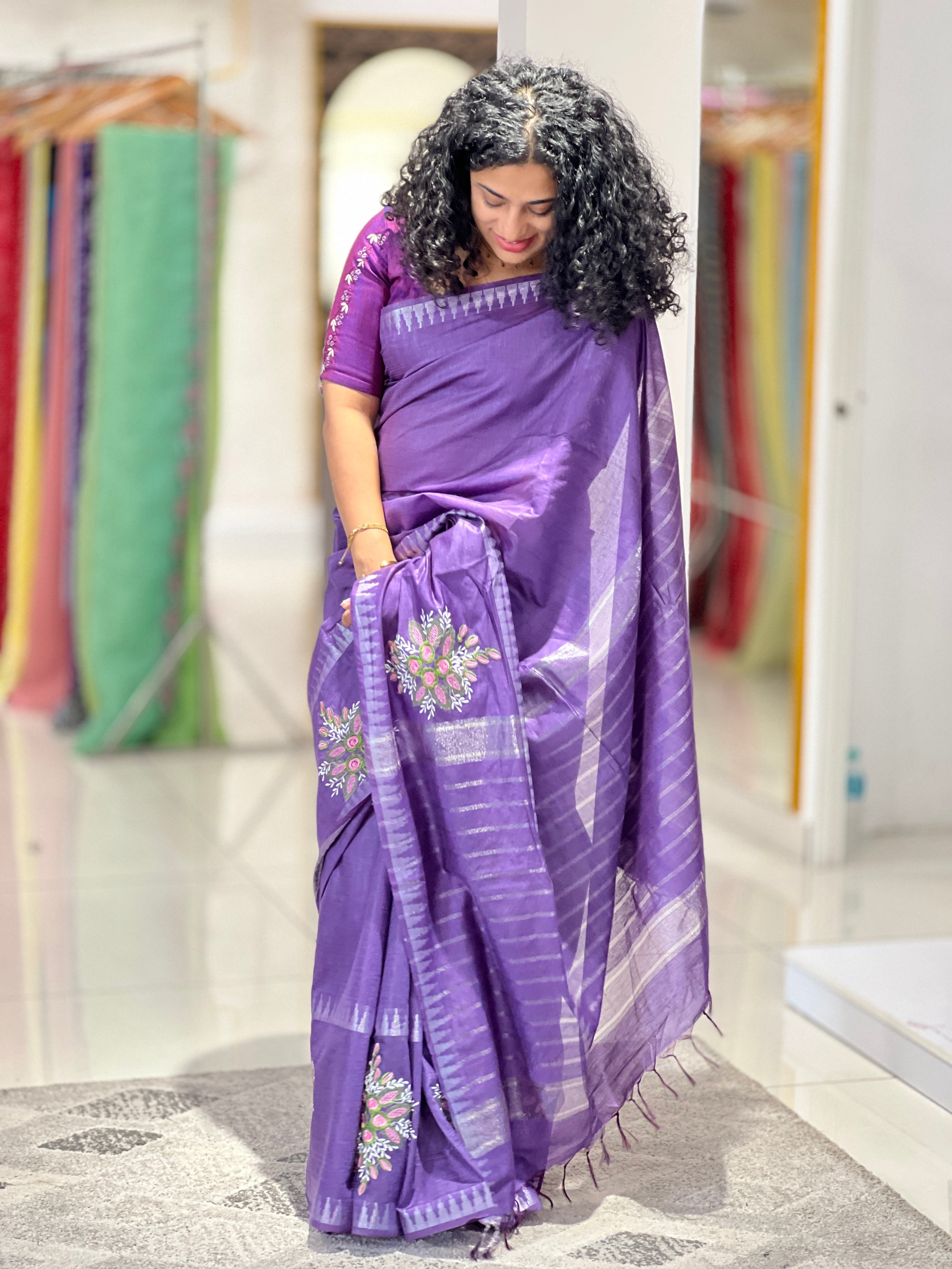Floral Embroidery Detailed Bhagalpuri Saree | NHH395